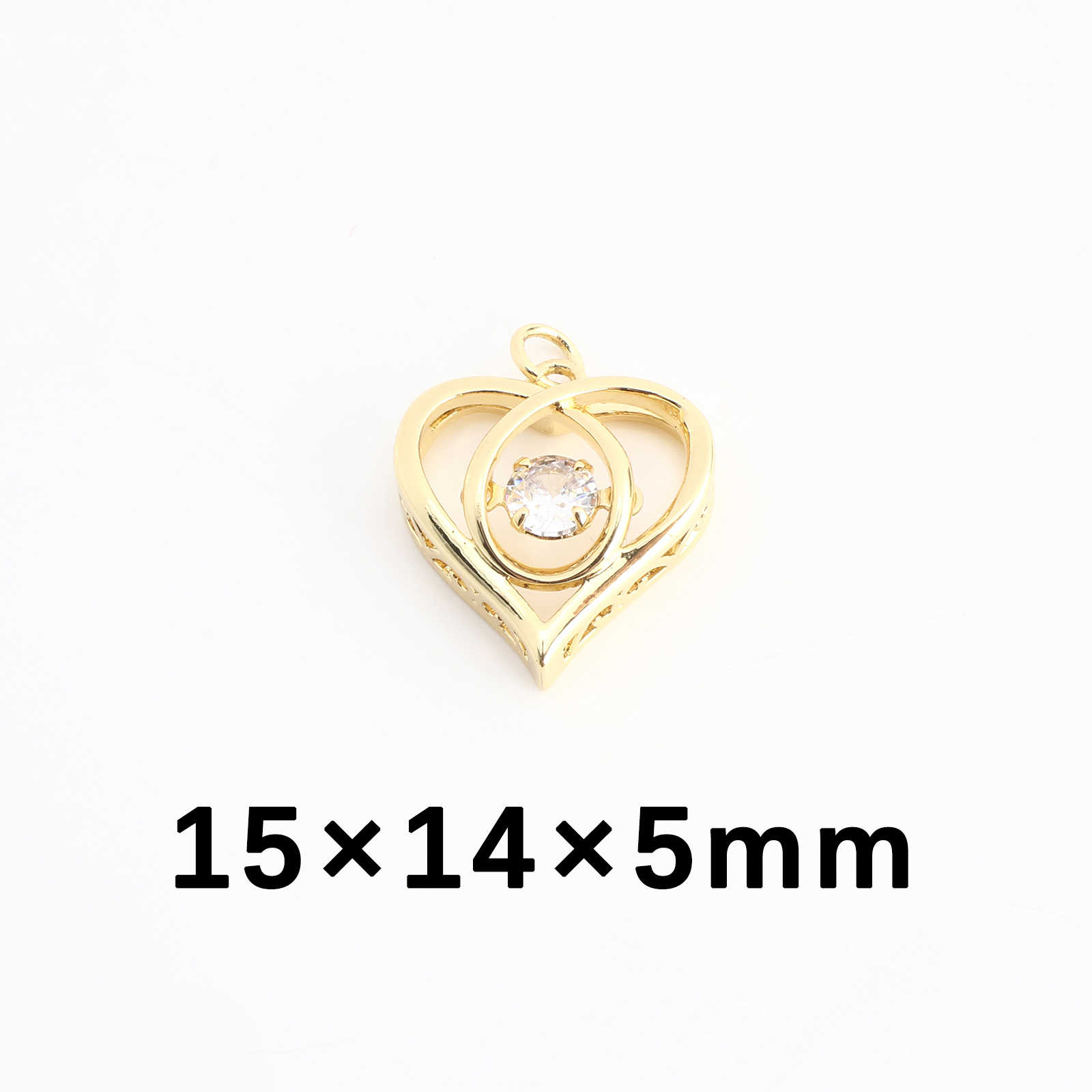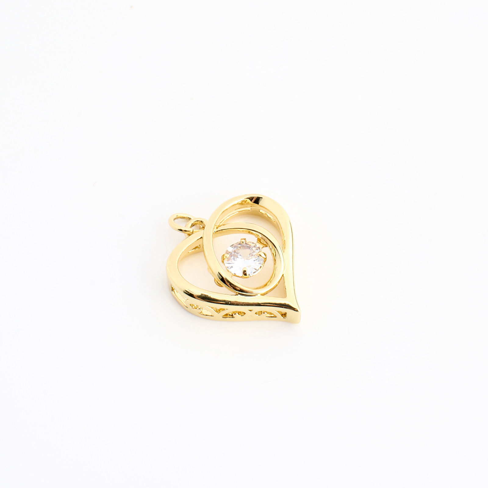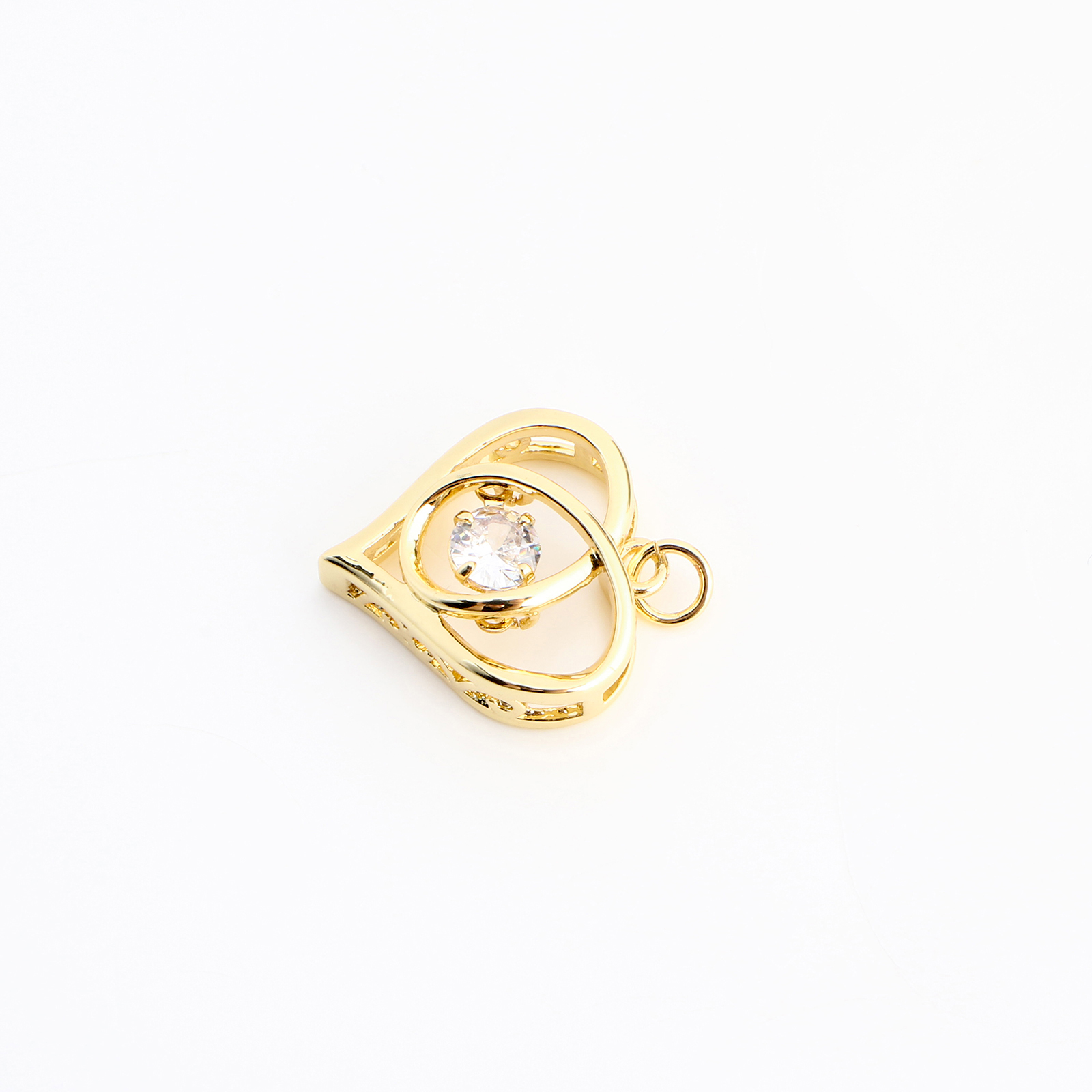 Cubique Pendentif en laiton zircon pavent, coeur, DIY & pavé de micro zircon & creux, doré, 15x14x5mm, Vendu par PC