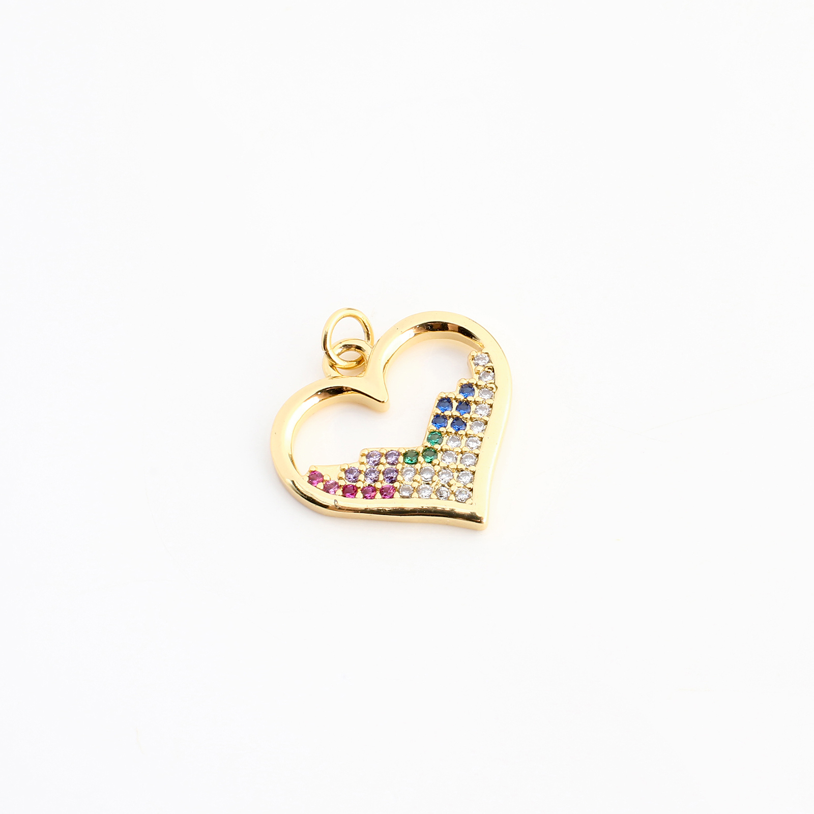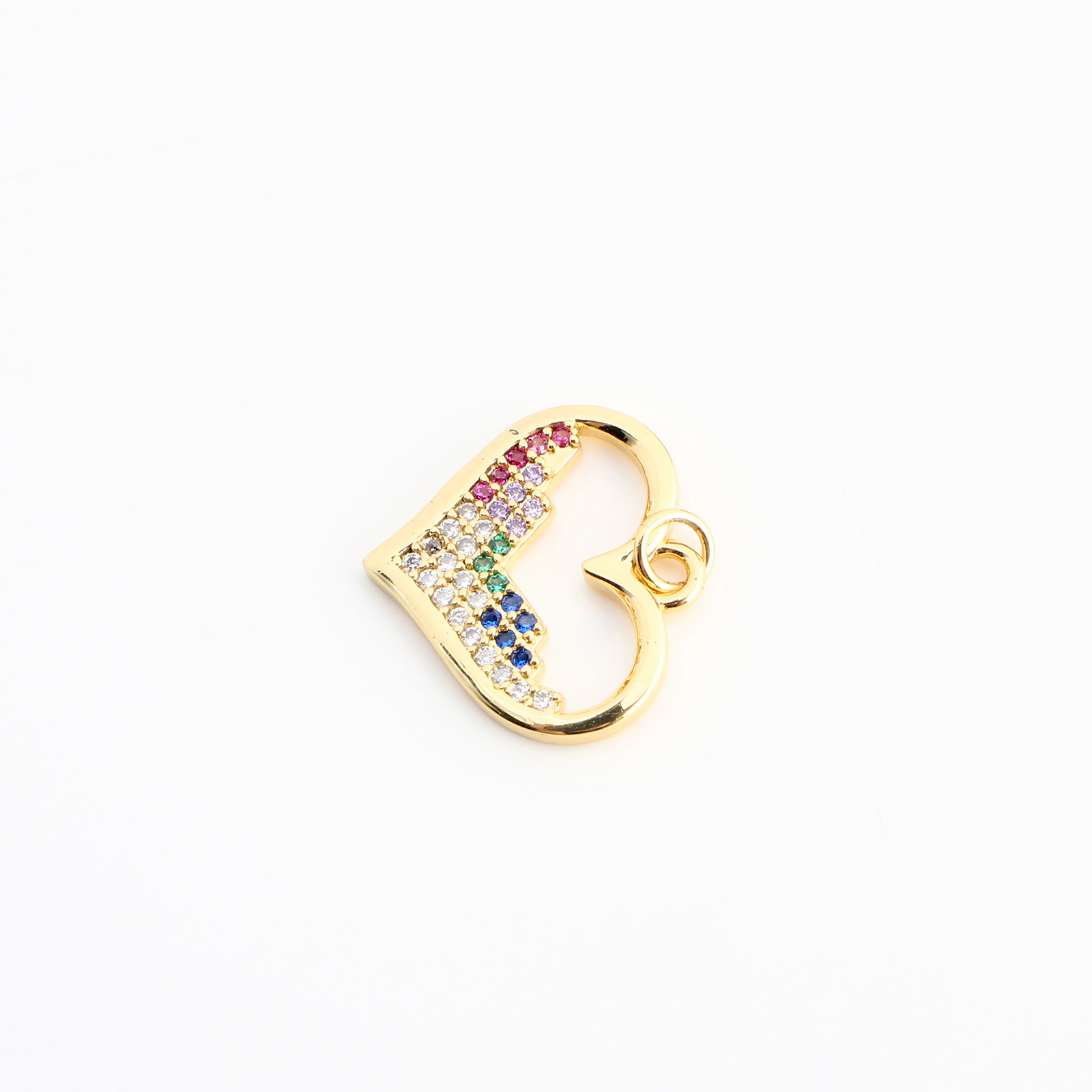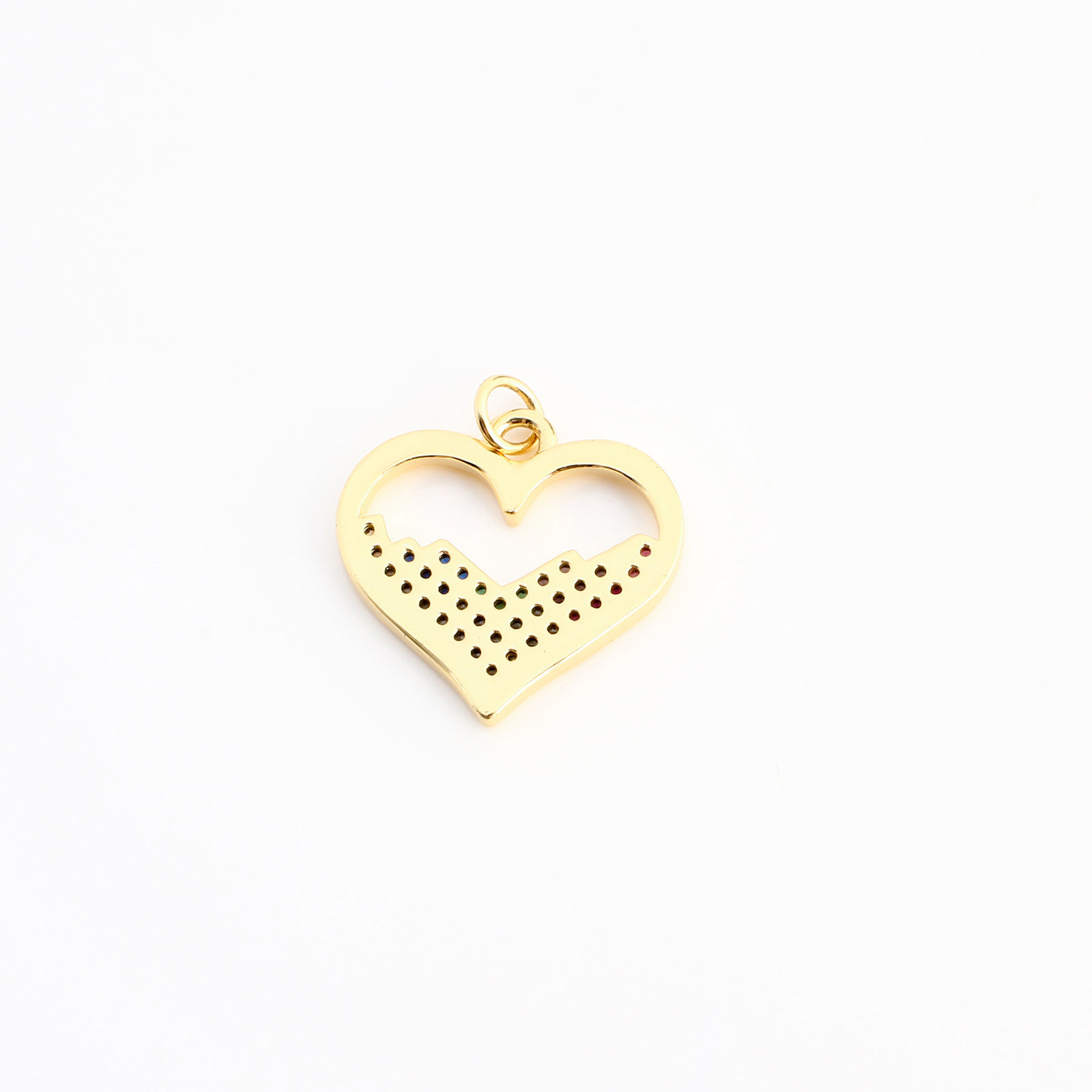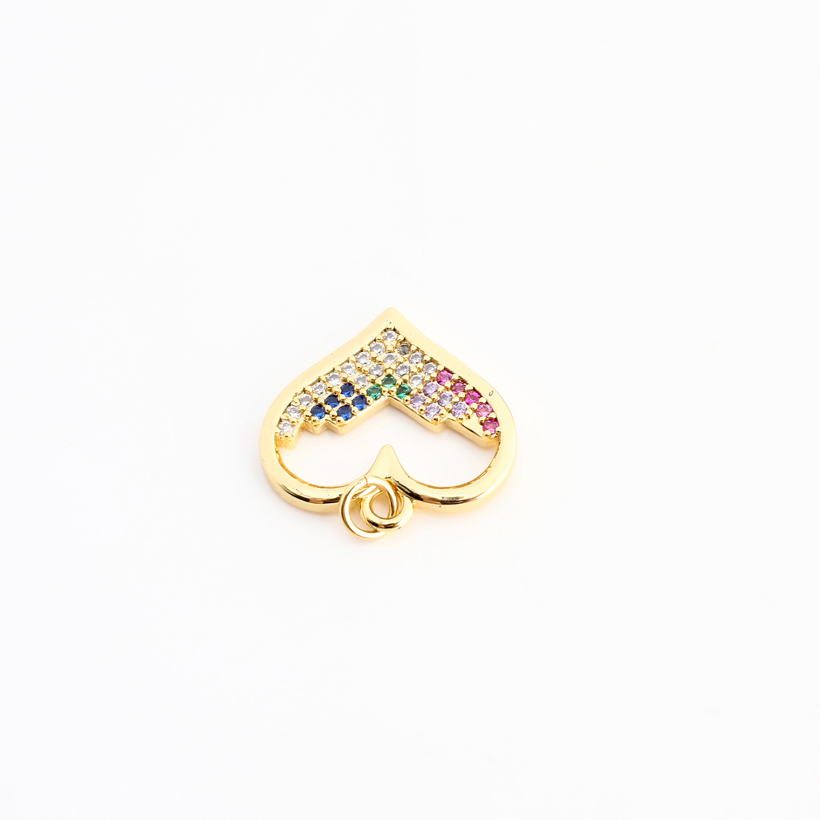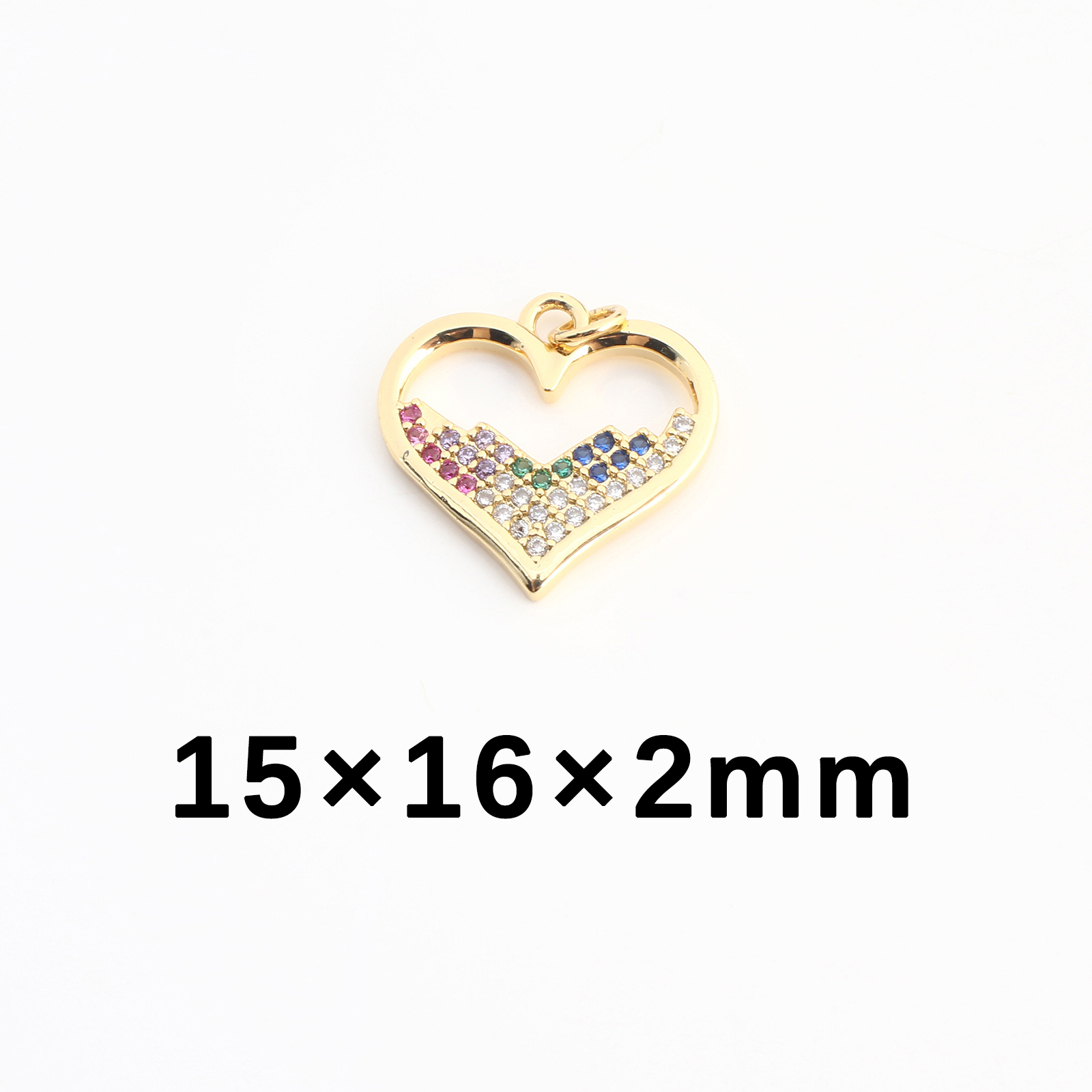 Cubique Pendentif en laiton zircon pavent, coeur, DIY & pavé de micro zircon & creux, doré, 15x16x2mm, Vendu par PC