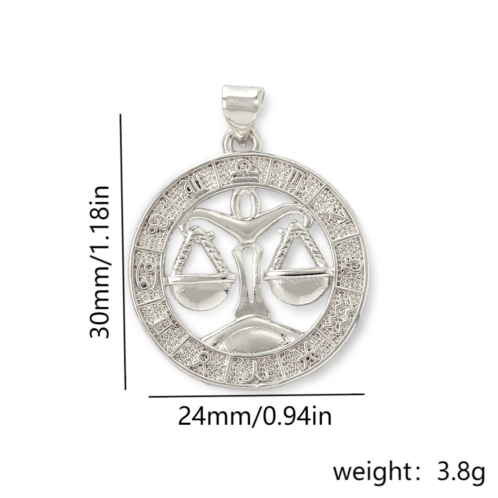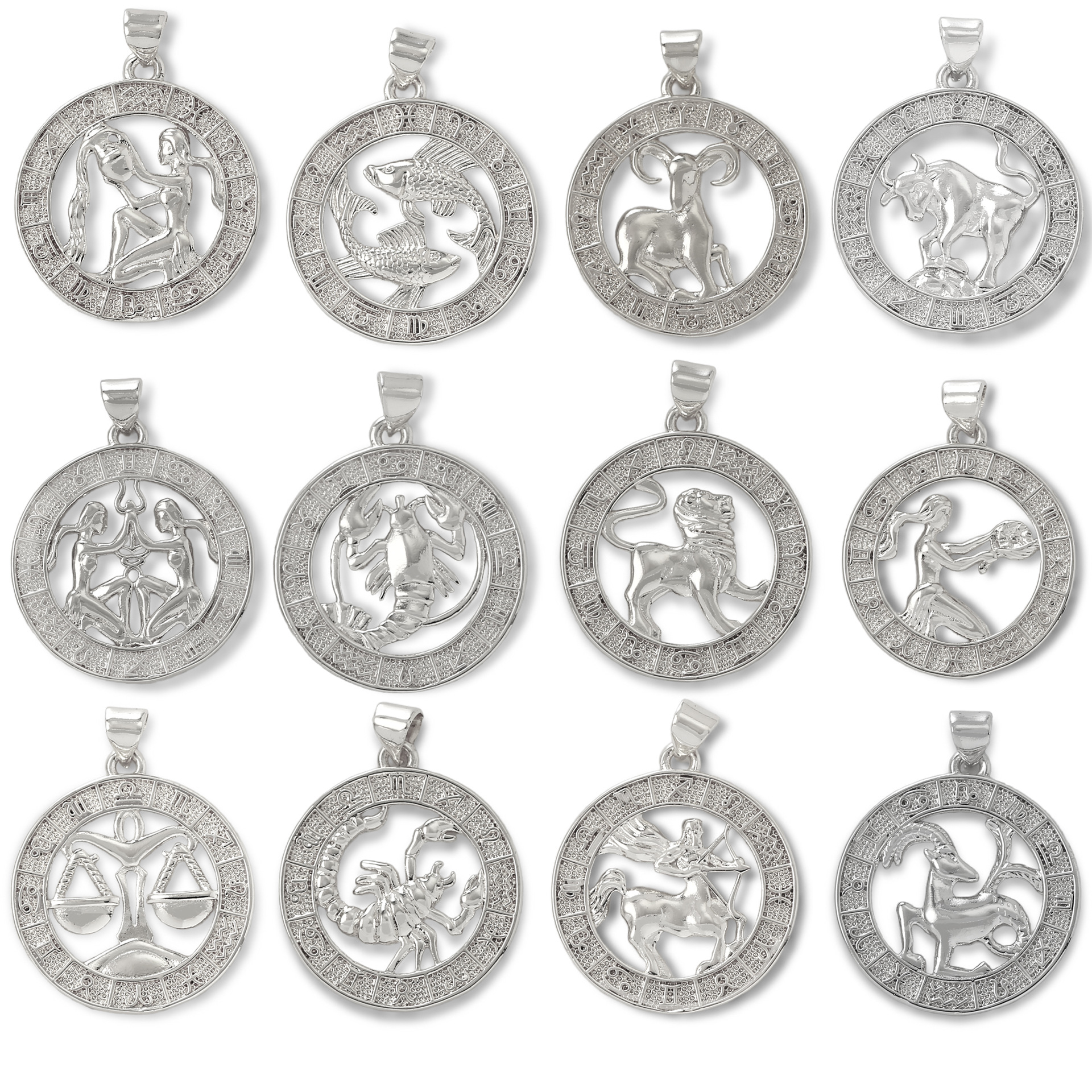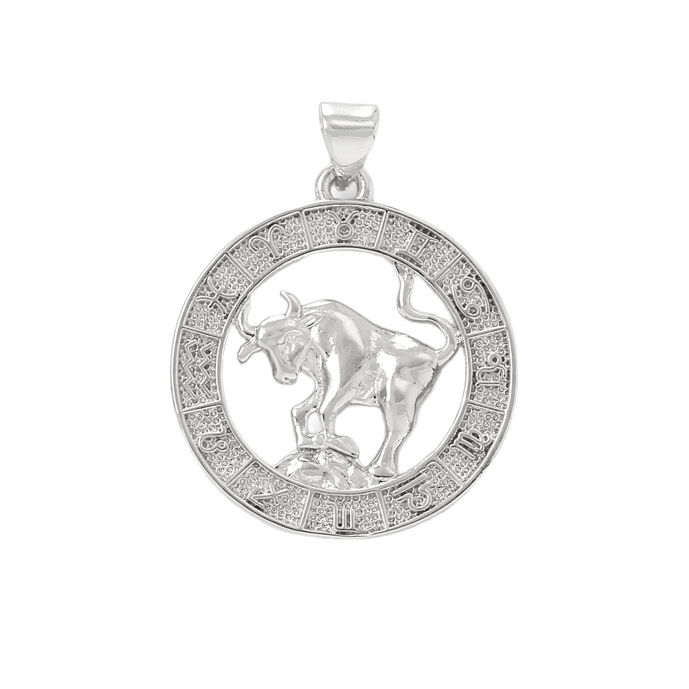 Cubique Pendentif en laiton zircon pavent, 12 Signes du Zodiaque, Placage de couleur argentée, DIY & pavé de micro zircon, argent, protéger l'environnement, sans nickel, plomb et cadmium, Vendu par PC