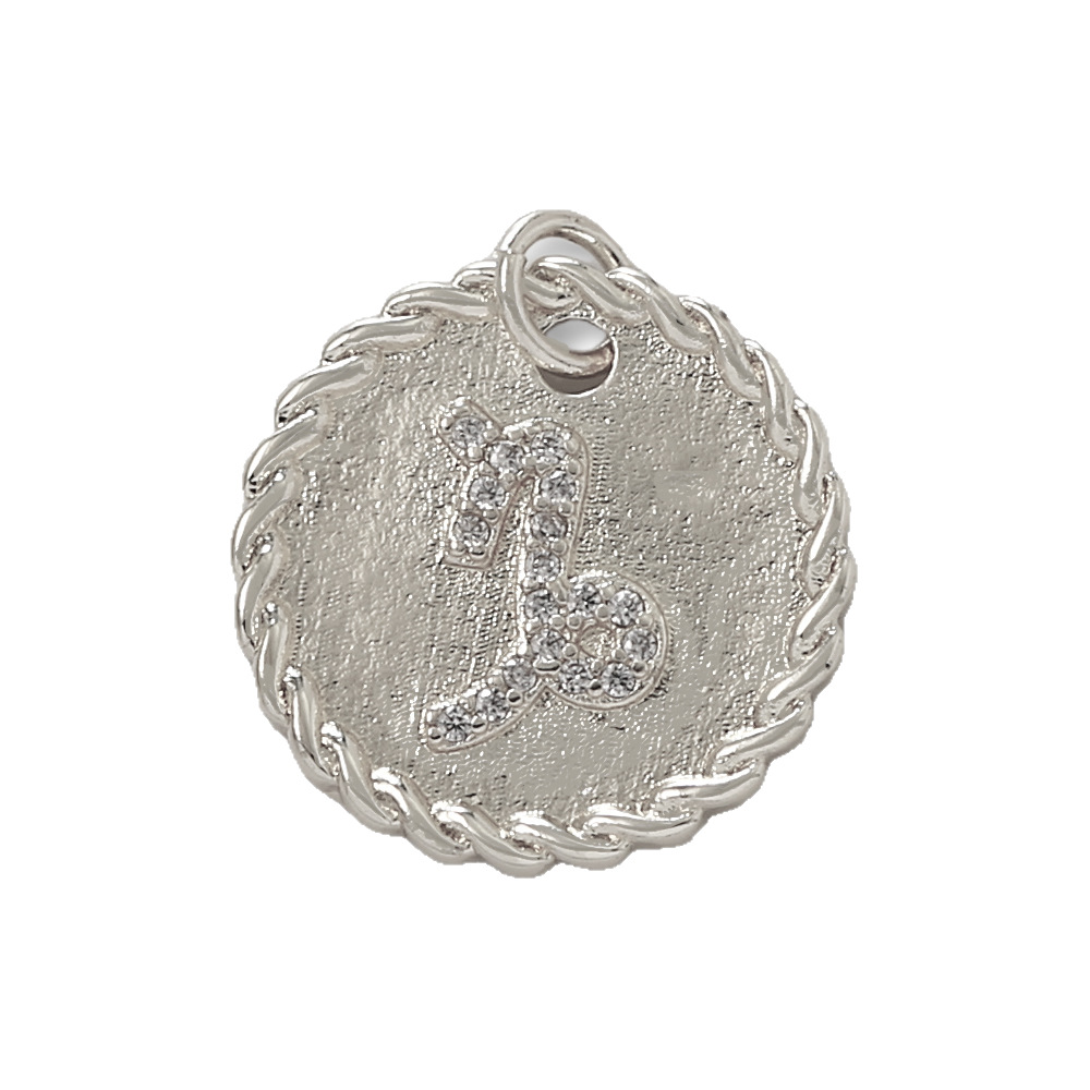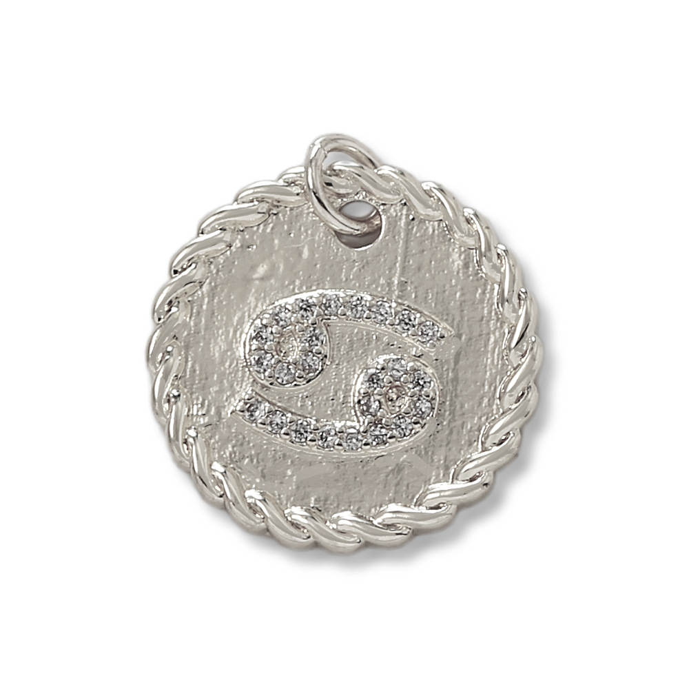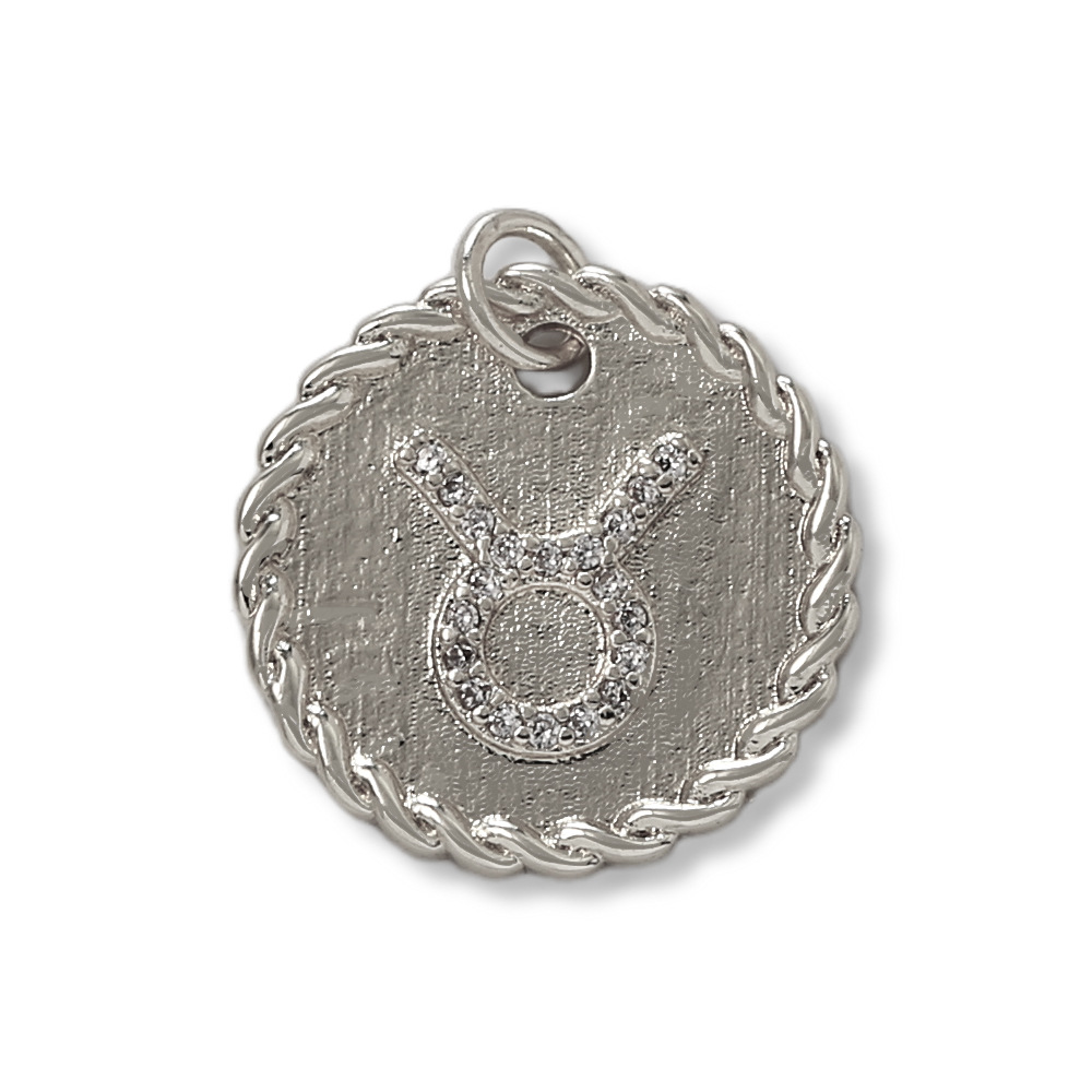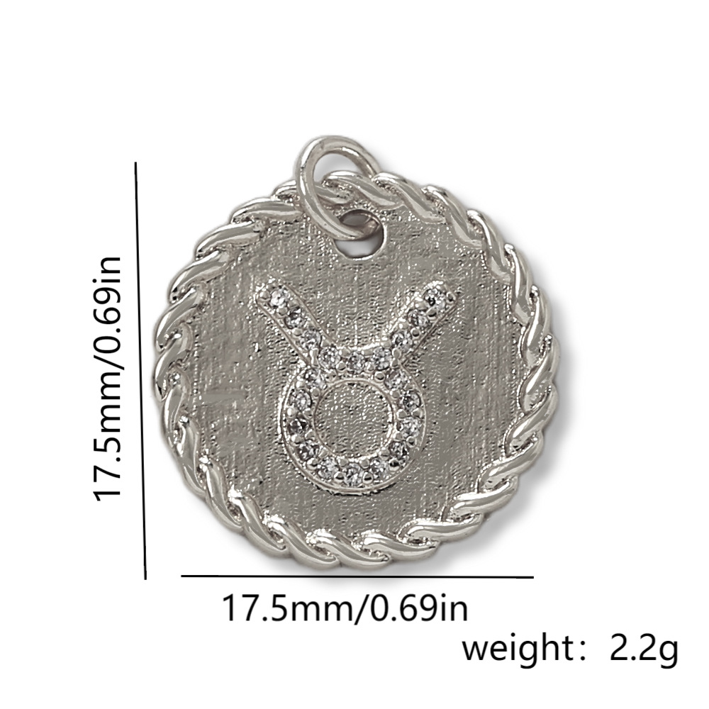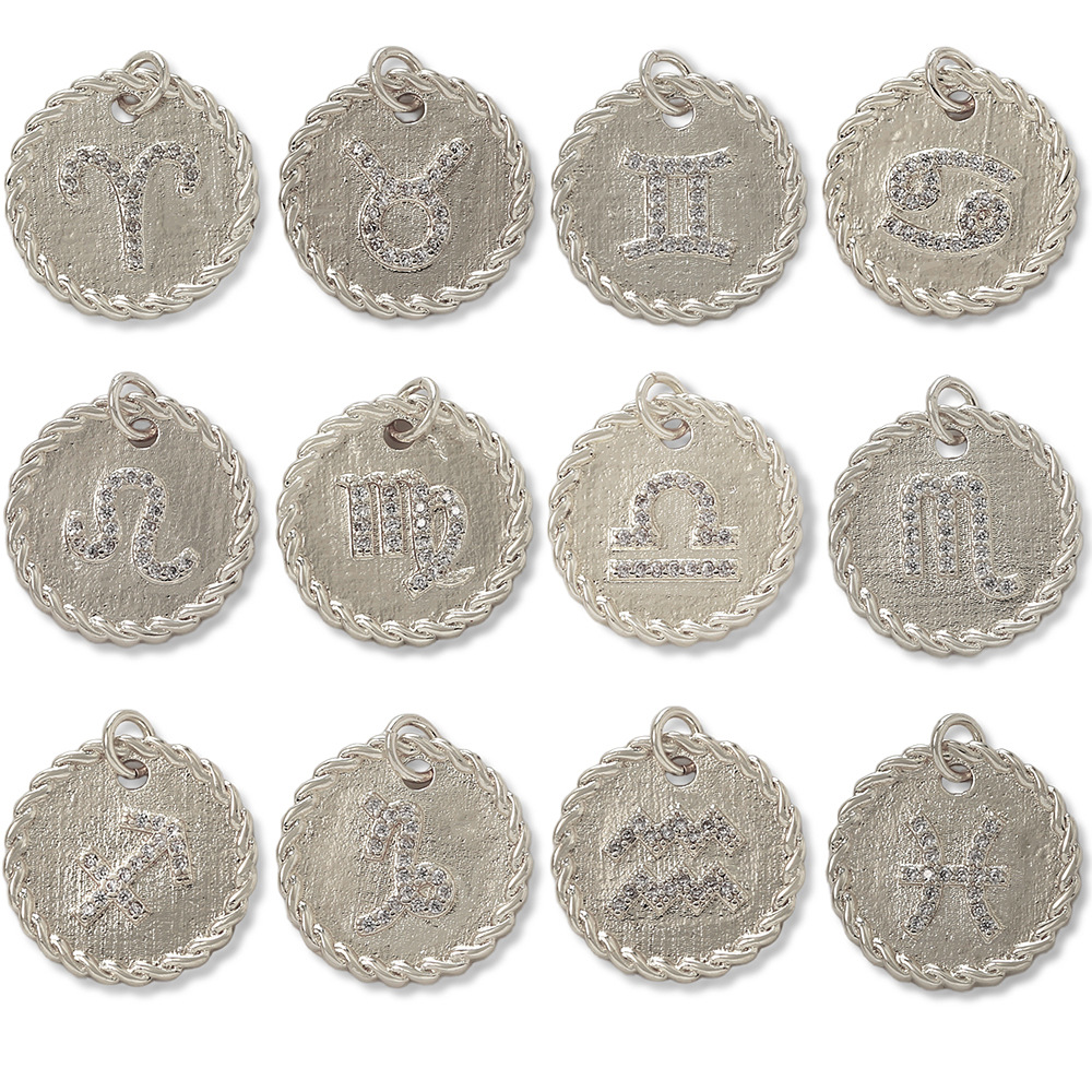 Cubique Pendentif en laiton zircon pavent, 12 Signes du Zodiaque, Placage de couleur argentée, DIY & pavé de micro zircon, argent, protéger l'environnement, sans nickel, plomb et cadmium, Vendu par PC