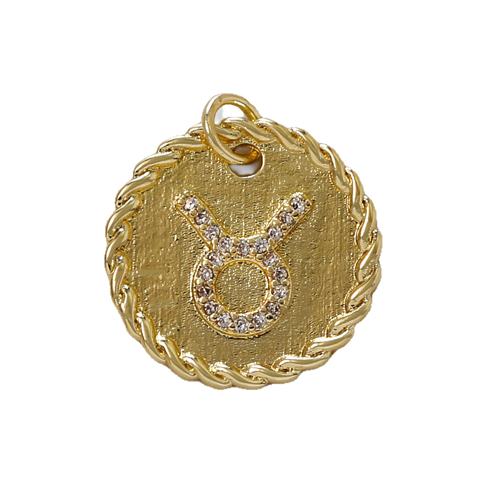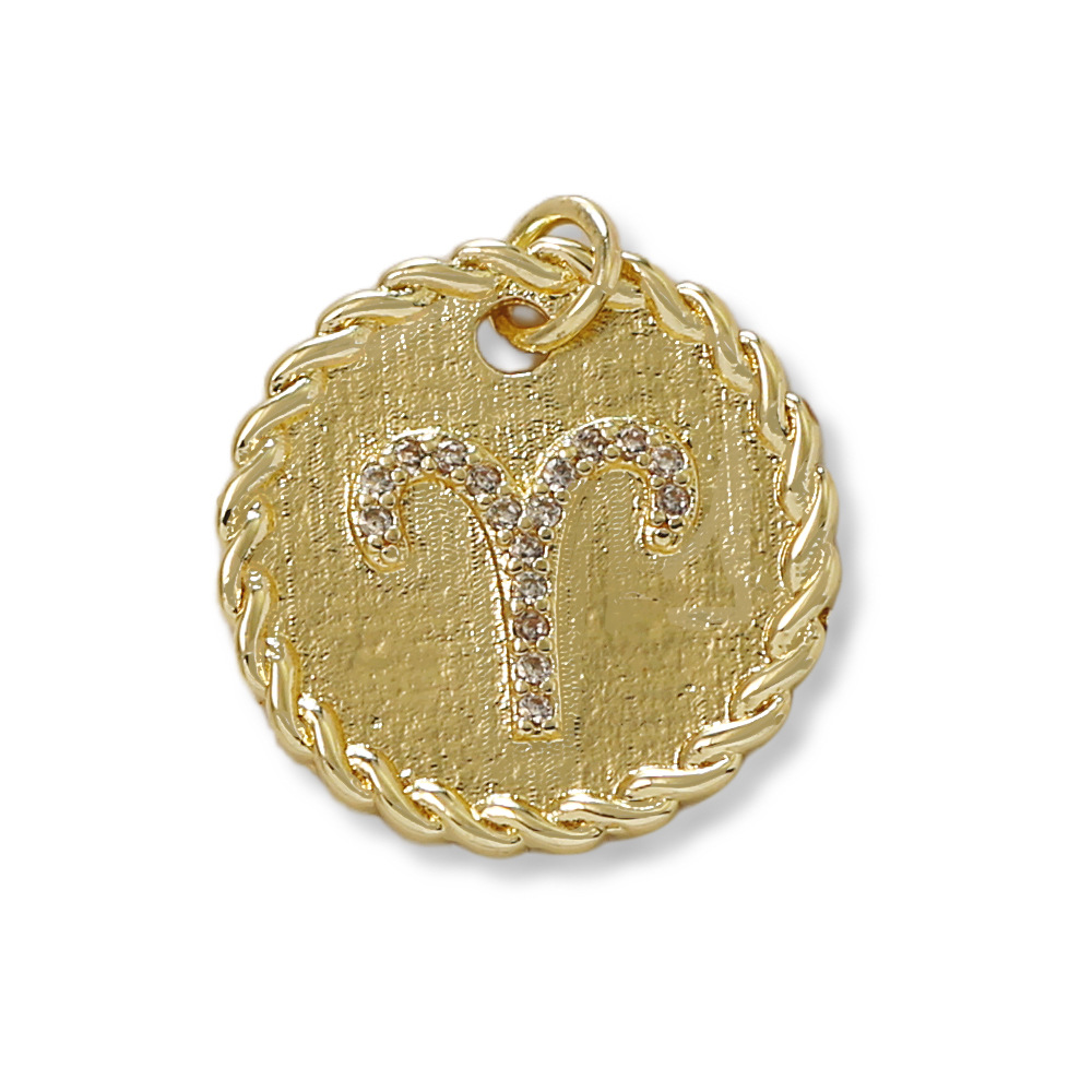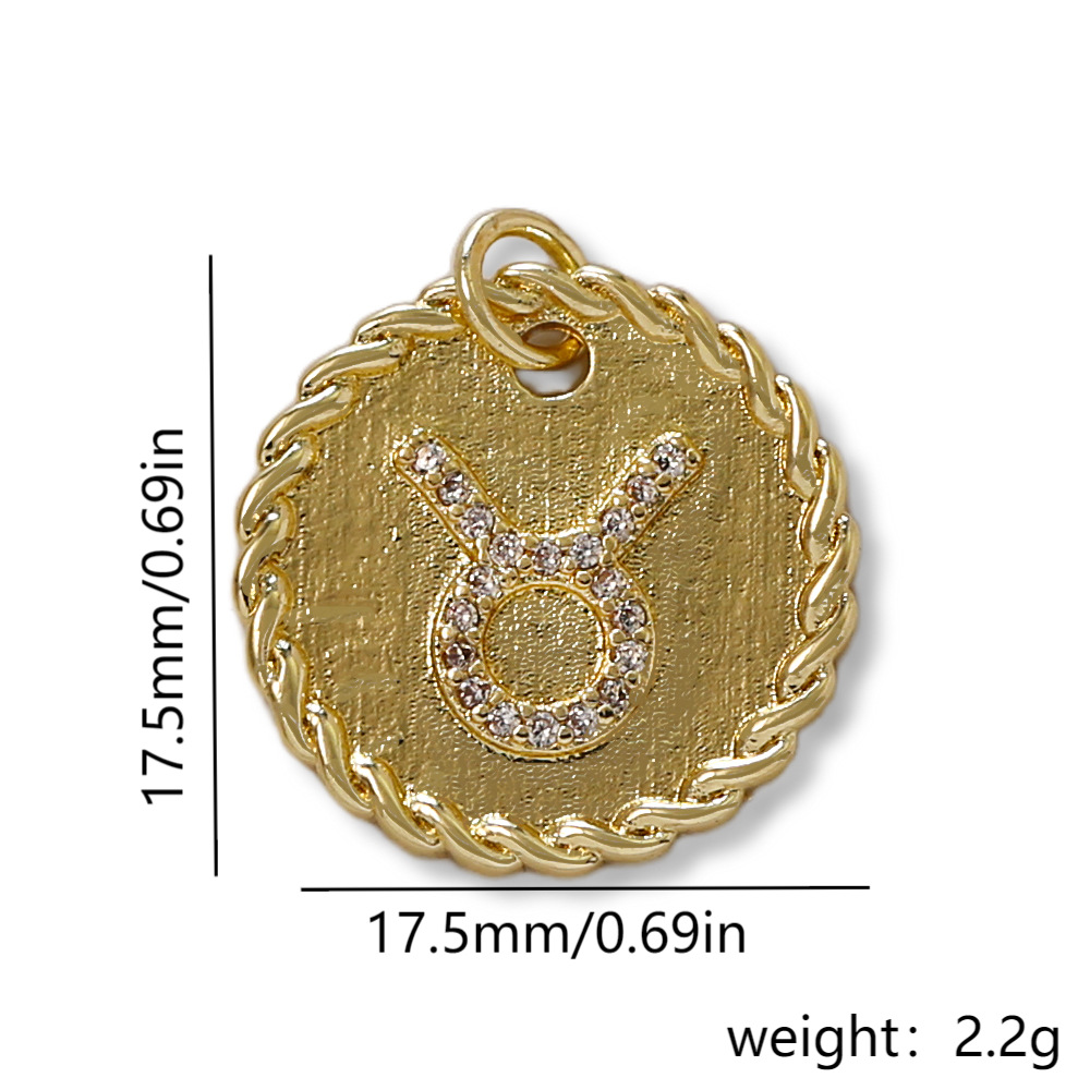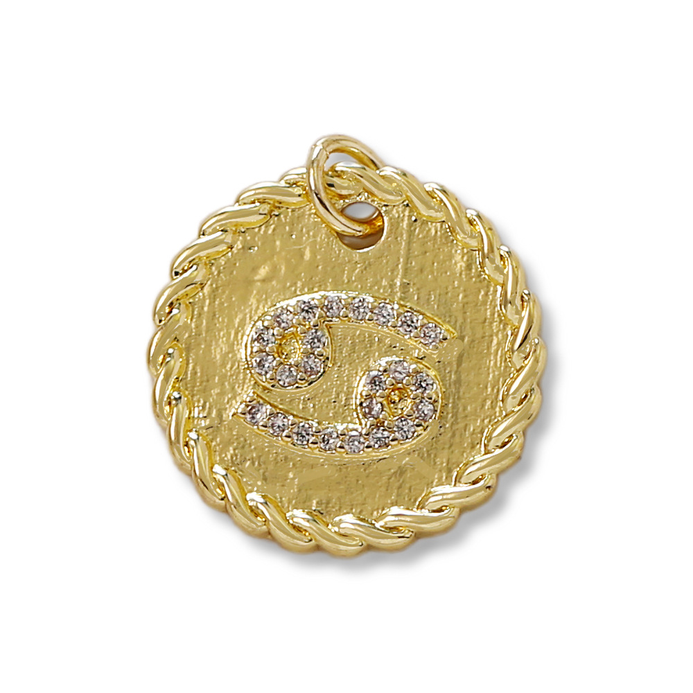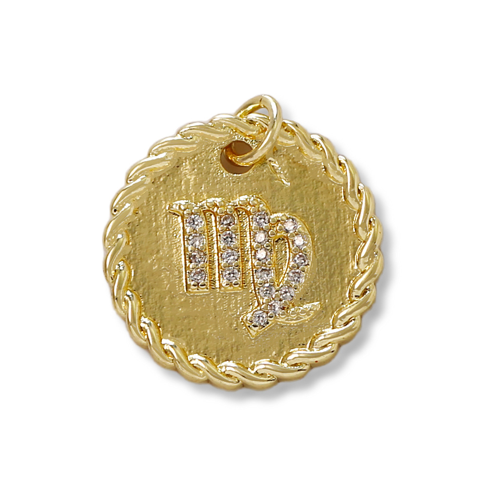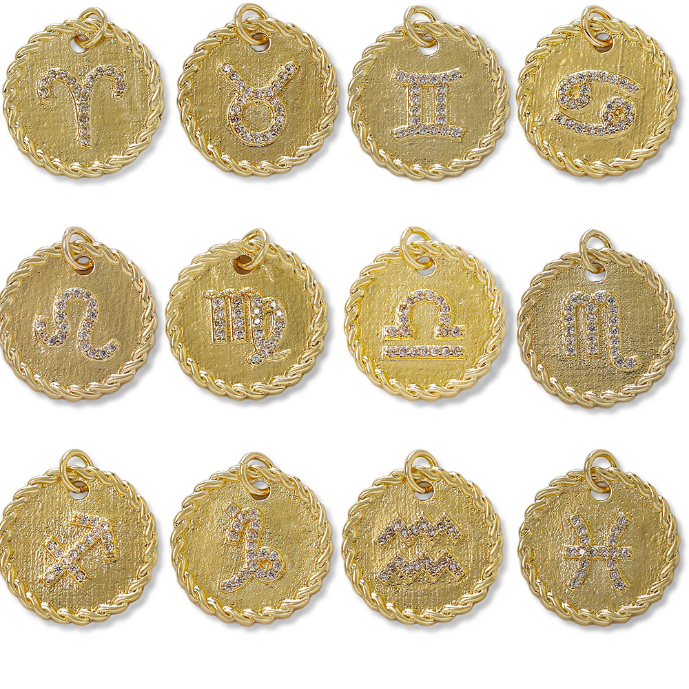Cubique Pendentif en laiton zircon pavent, 12 Signes du Zodiaque, Placage de couleur d'or, DIY & pavé de micro zircon, doré, protéger l'environnement, sans nickel, plomb et cadmium, Vendu par PC