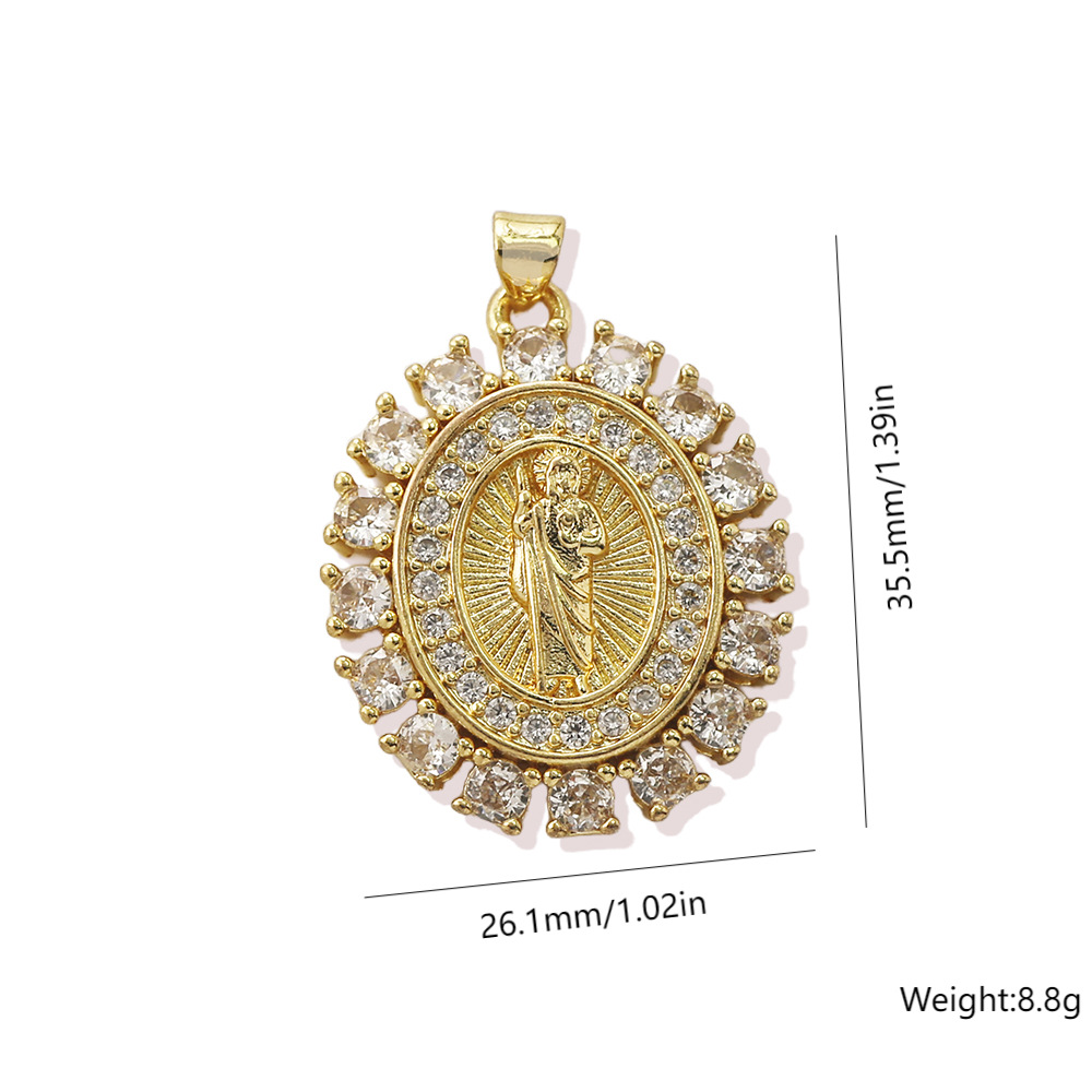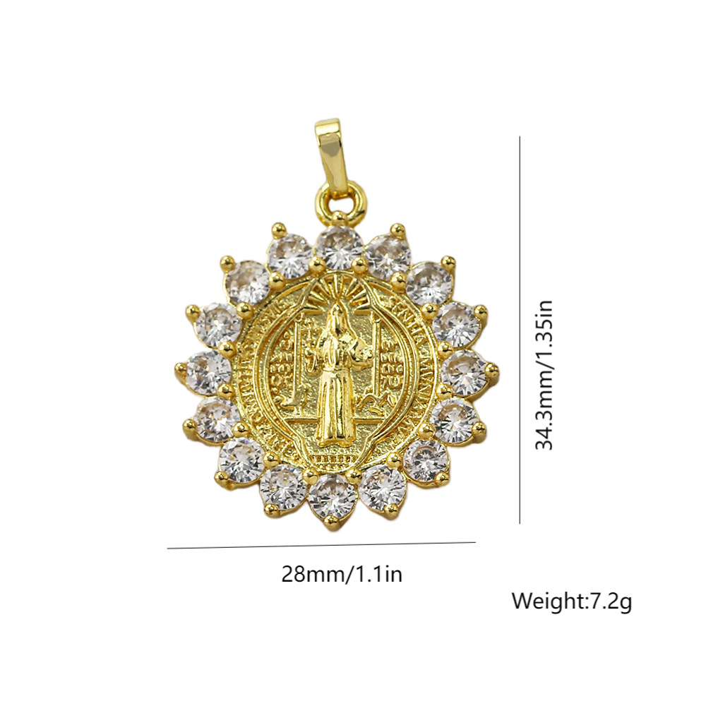 Cubique Pendentif en laiton zircon pavent, Rond, Placage, DIY & pavé de micro zircon, doré, protéger l'environnement, sans nickel, plomb et cadmium, Vendu par PC