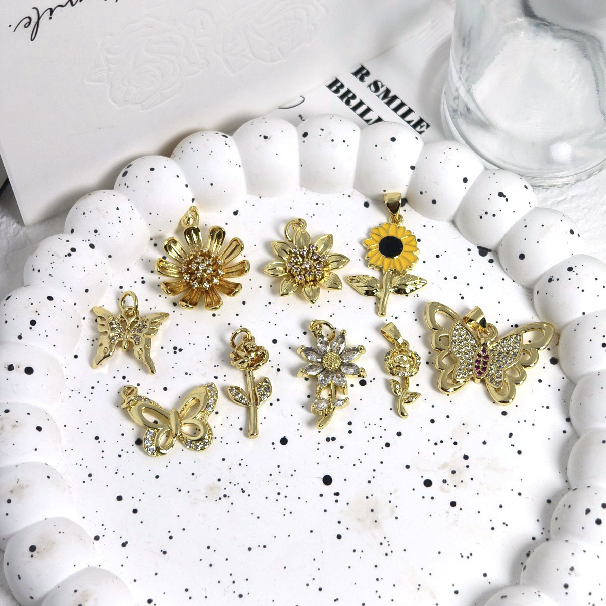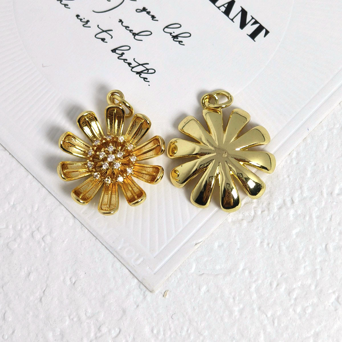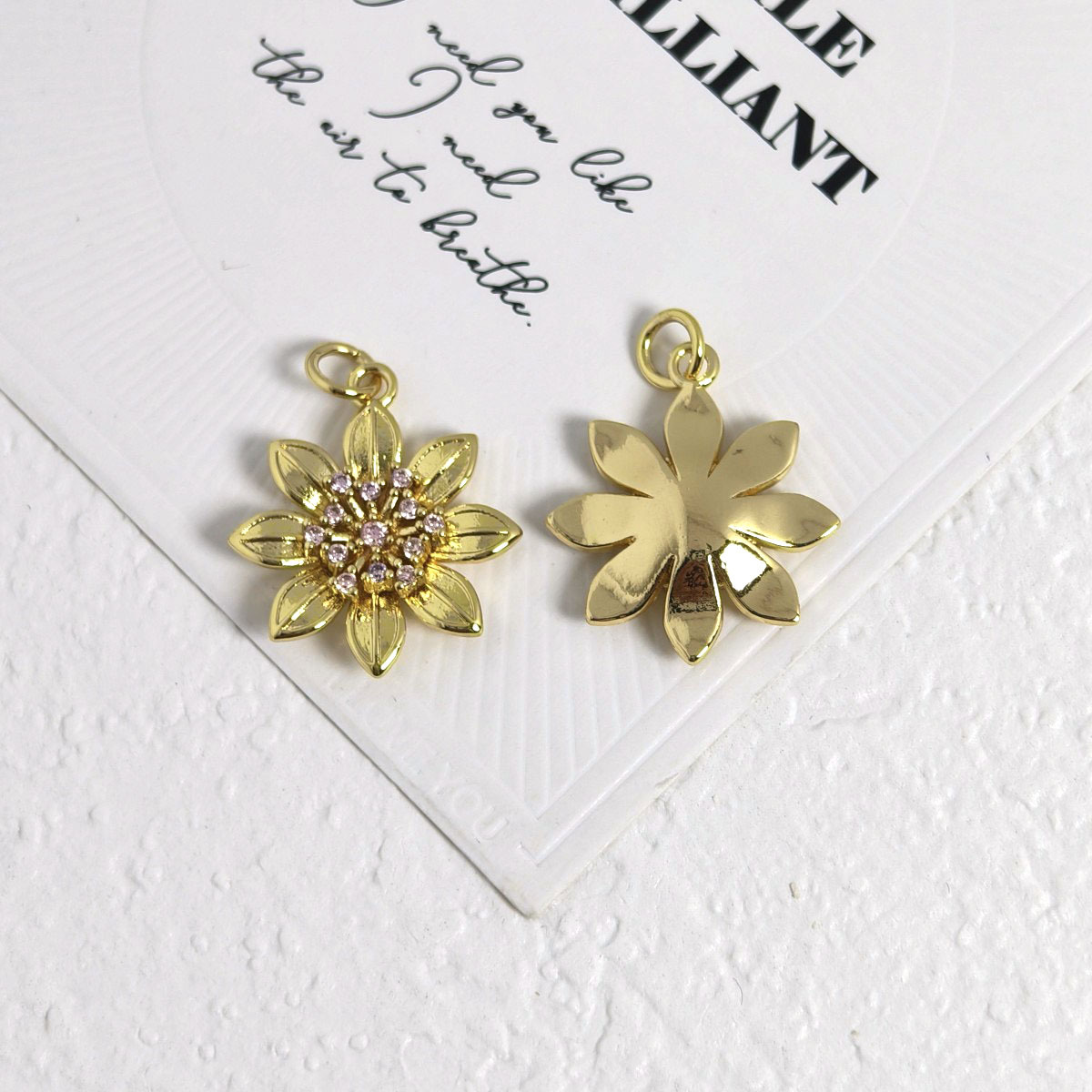 Cubique Pendentif en laiton zircon pavent, fleur, Plaqué or 18K, styles différents pour le choix & pavé de micro zircon & pour femme, Vendu par PC