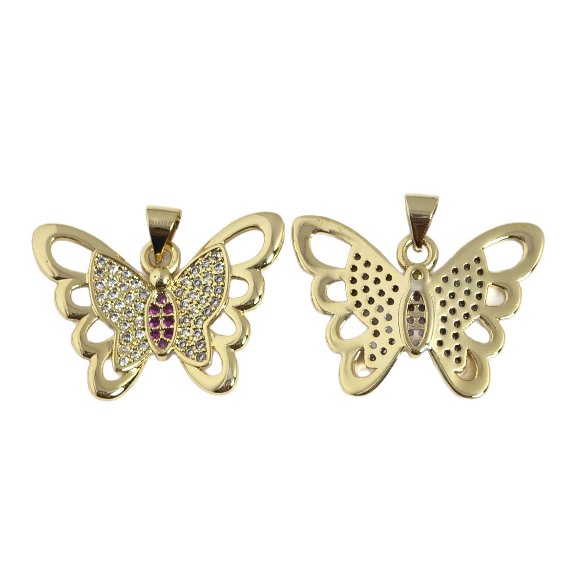 Cubique Pendentif en laiton zircon pavent, cerise, Placage, DIY & pavé de micro zircon, doré, protéger l'environnement, sans nickel, plomb et cadmium, 13.47x3.86x19.18mm, 20PC/sac, Vendu par sac