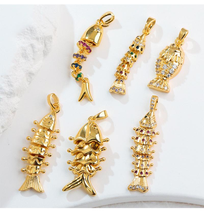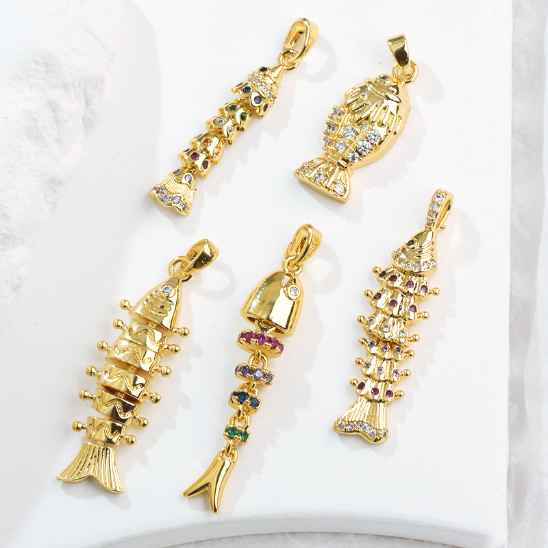 Cubique Pendentif en laiton zircon pavent, poisson, Placage, DIY & pavé de micro zircon, plus de couleurs à choisir, protéger l'environnement, sans nickel, plomb et cadmium, Vendu par PC