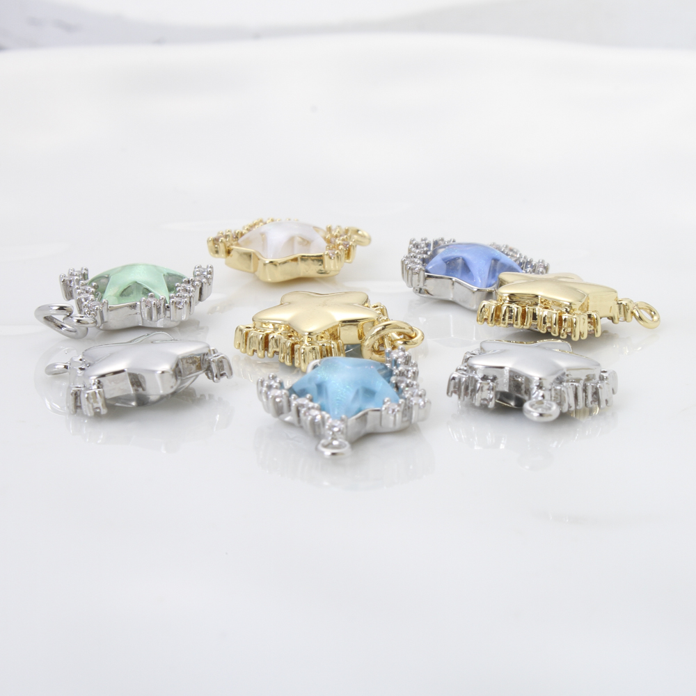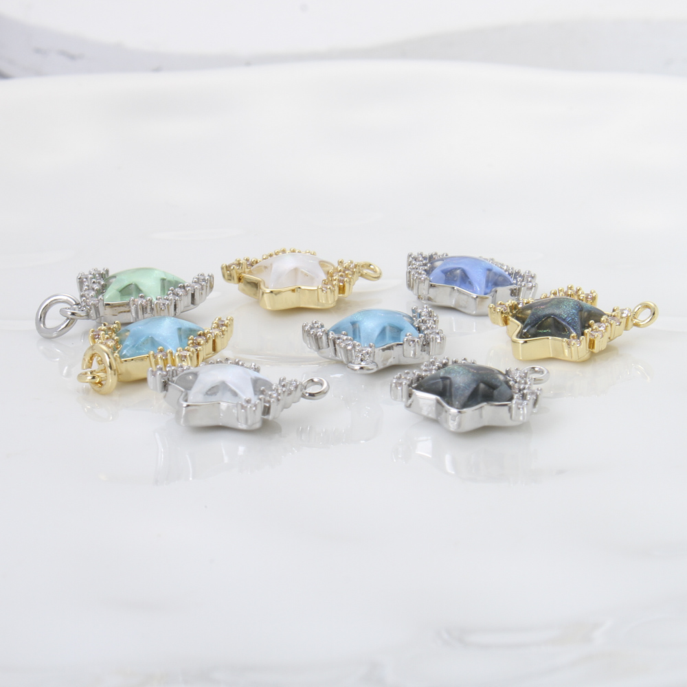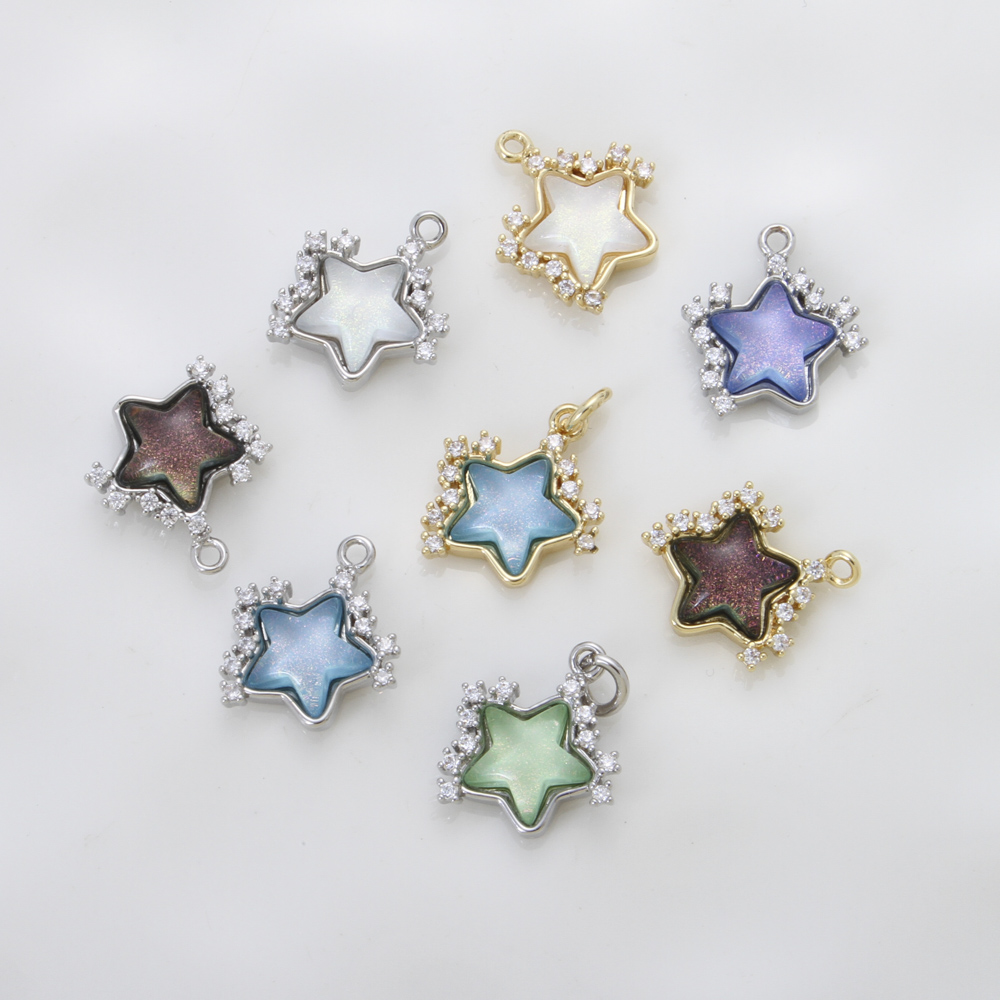 Cubique Pendentif en laiton zircon pavent, avec résine, étoile, Placage, DIY & pavé de micro zircon, plus de couleurs à choisir, 12.50x11.80x3.90mm, Vendu par PC