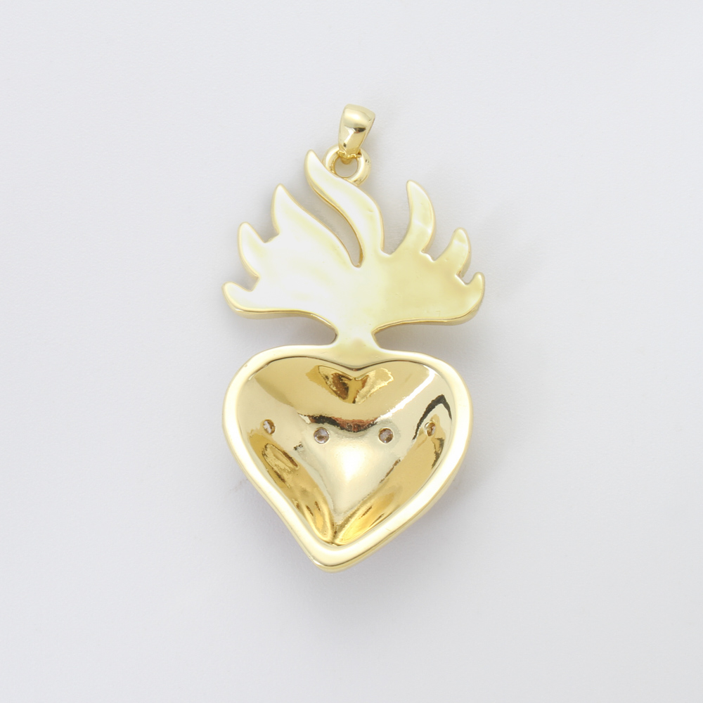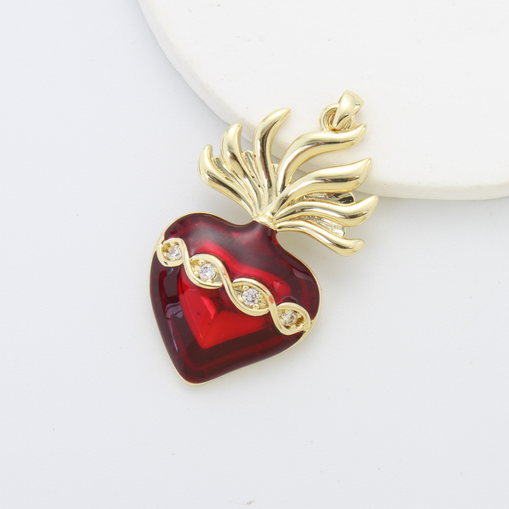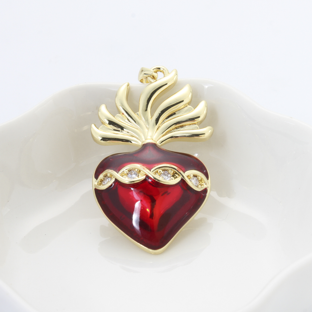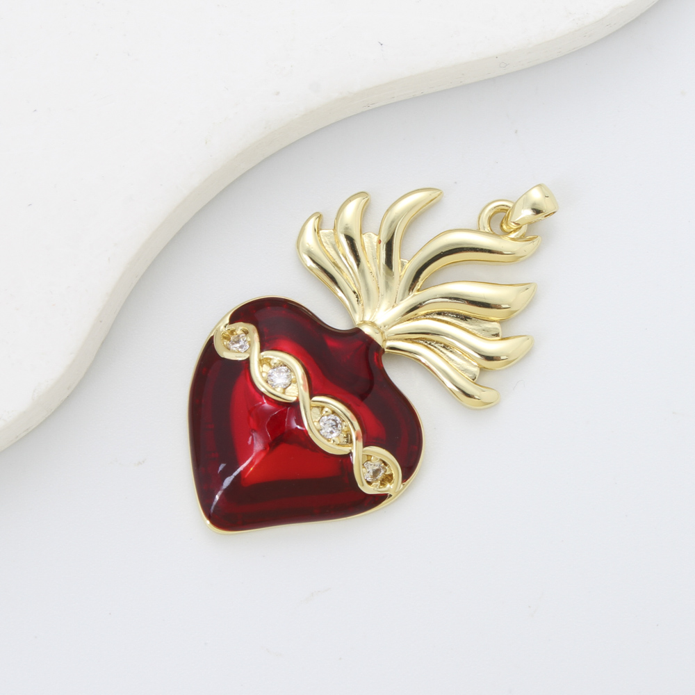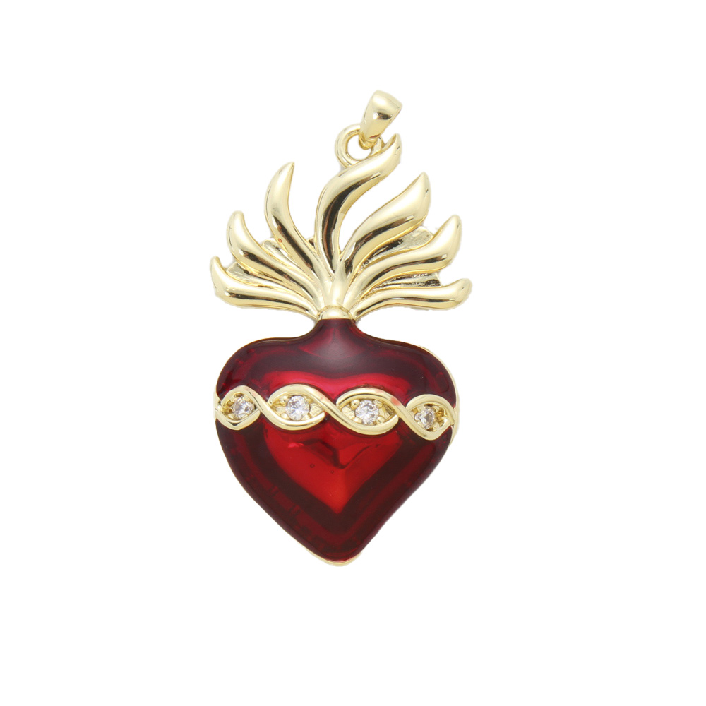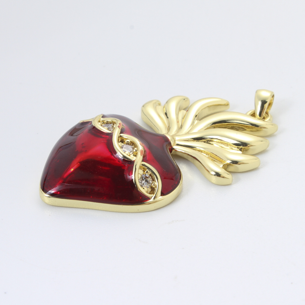Cubique Pendentif en laiton zircon pavent, coeur, Placage, DIY & pavé de micro zircon & émail, rouge, 39.50x23.50x6.50mm, Vendu par PC