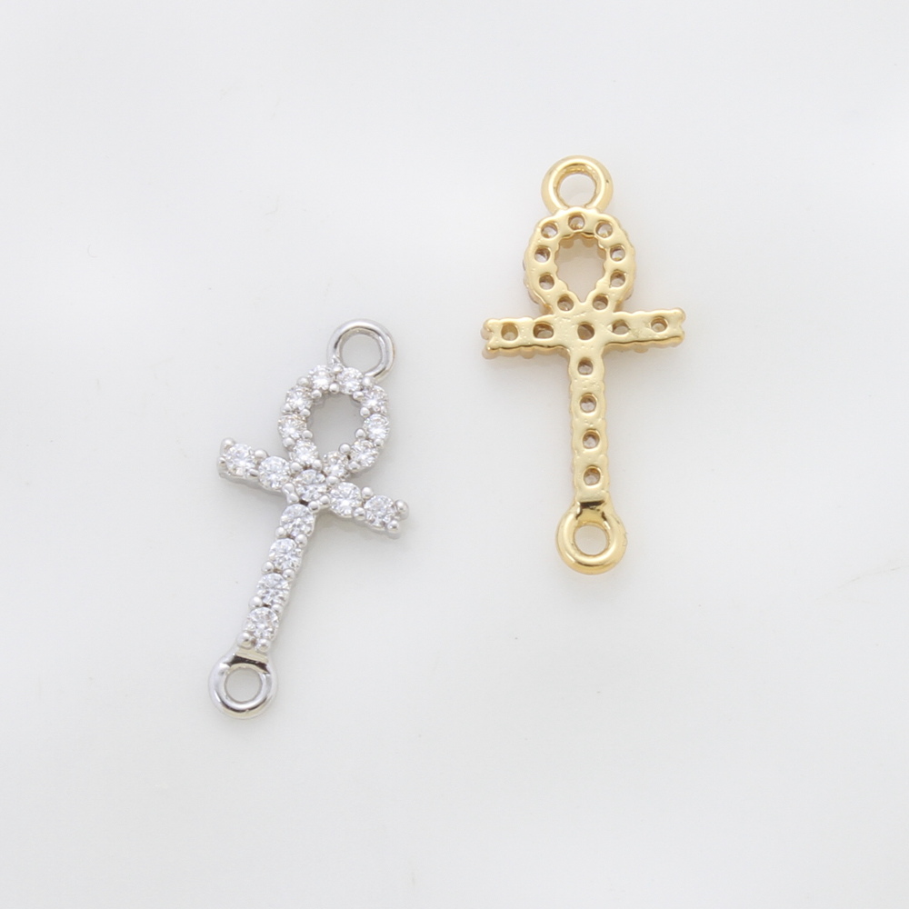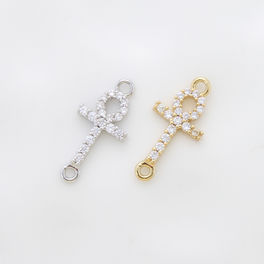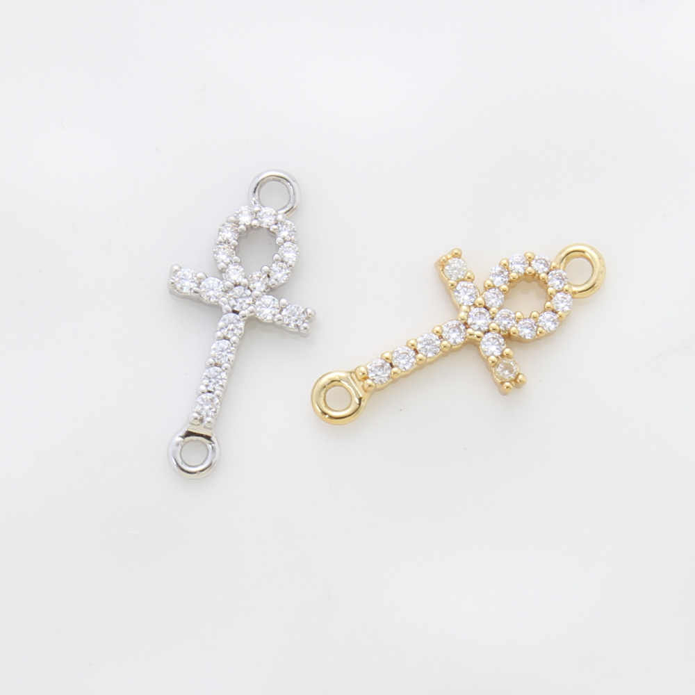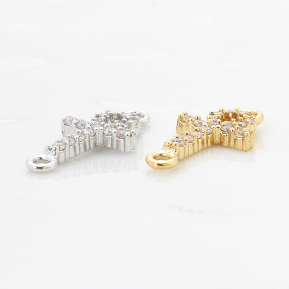 Cubique Pendentif en laiton zircon pavent, cerise, Placage, DIY & pavé de micro zircon, doré, protéger l'environnement, sans nickel, plomb et cadmium, 13.47x3.86x19.18mm, 20PC/sac, Vendu par sac