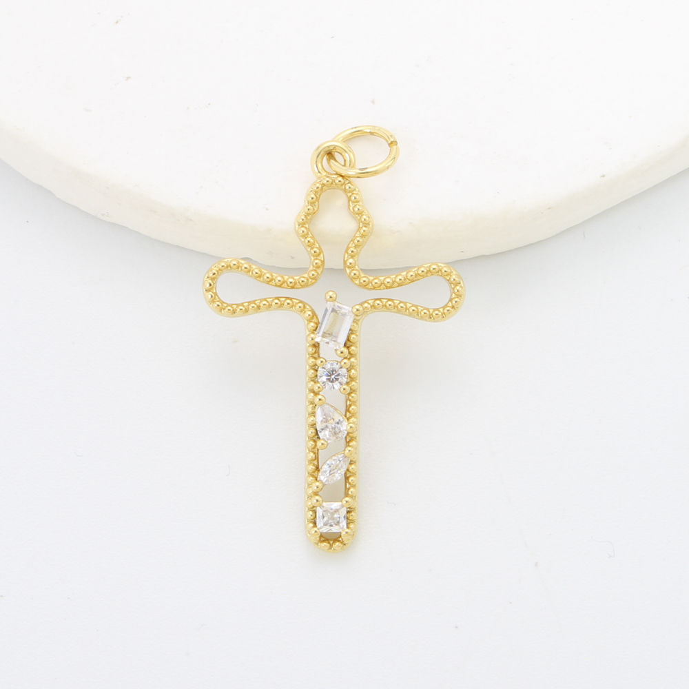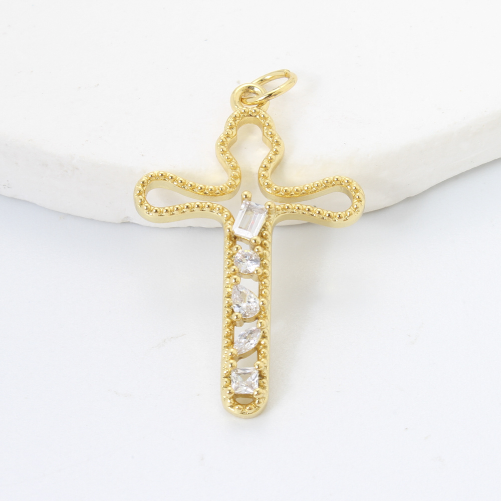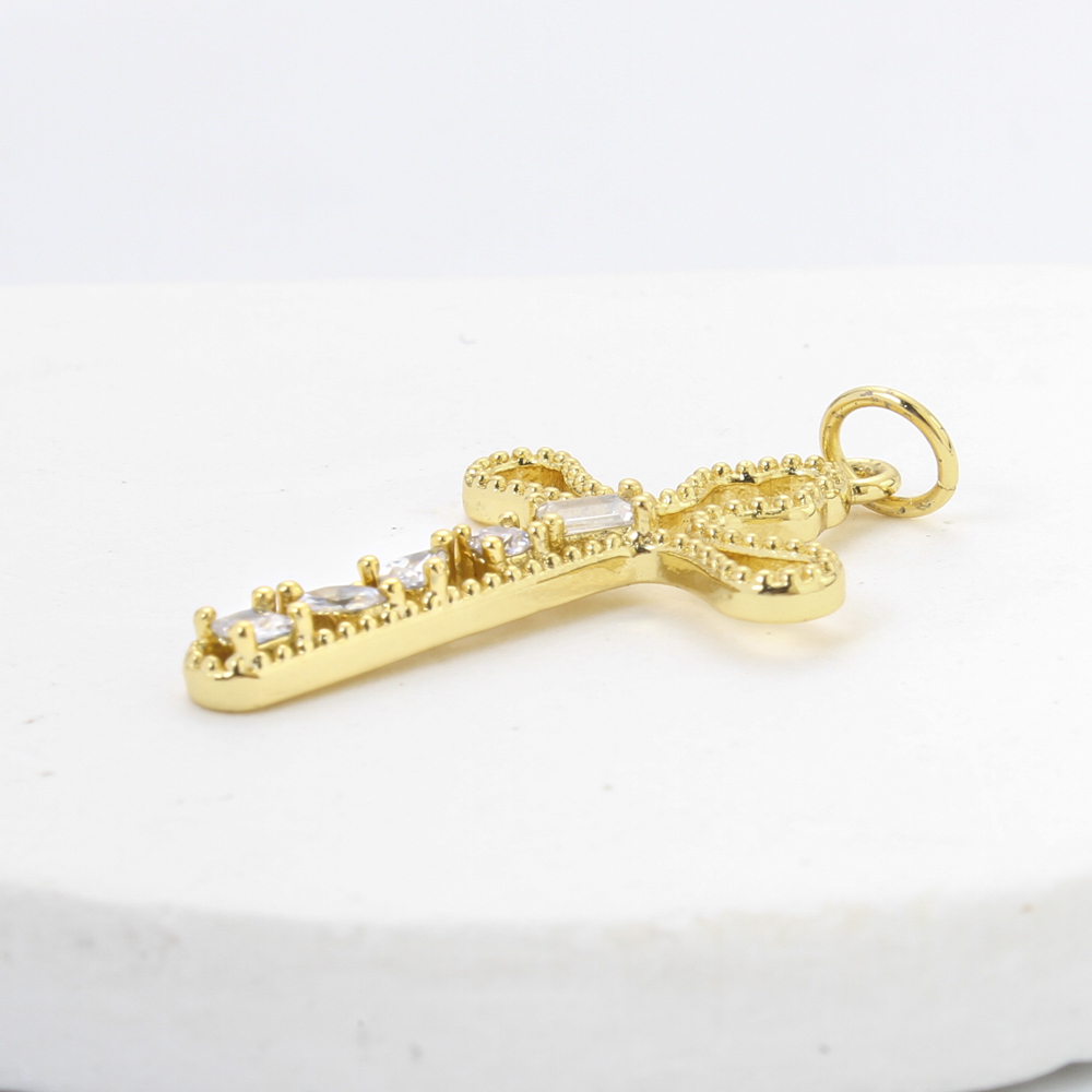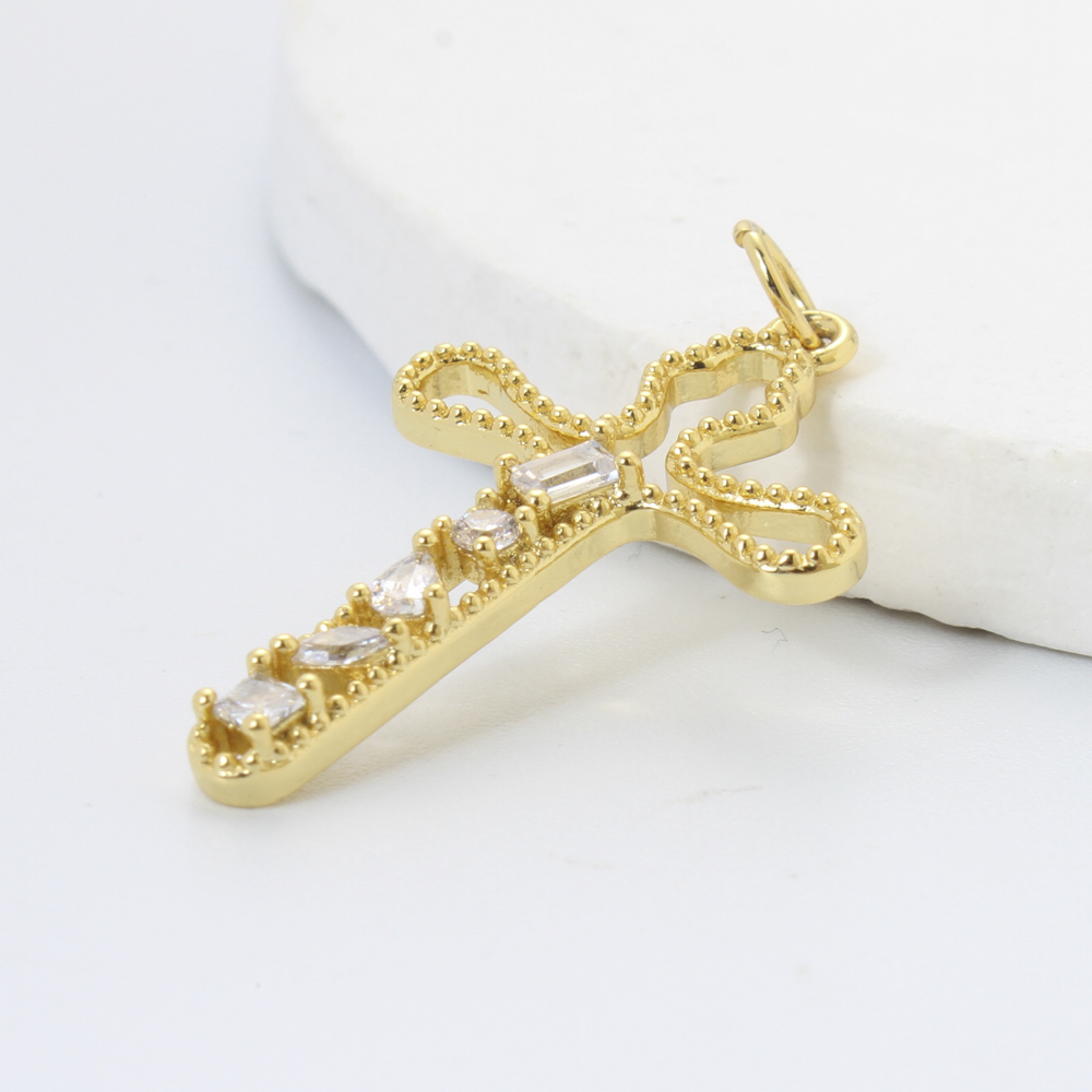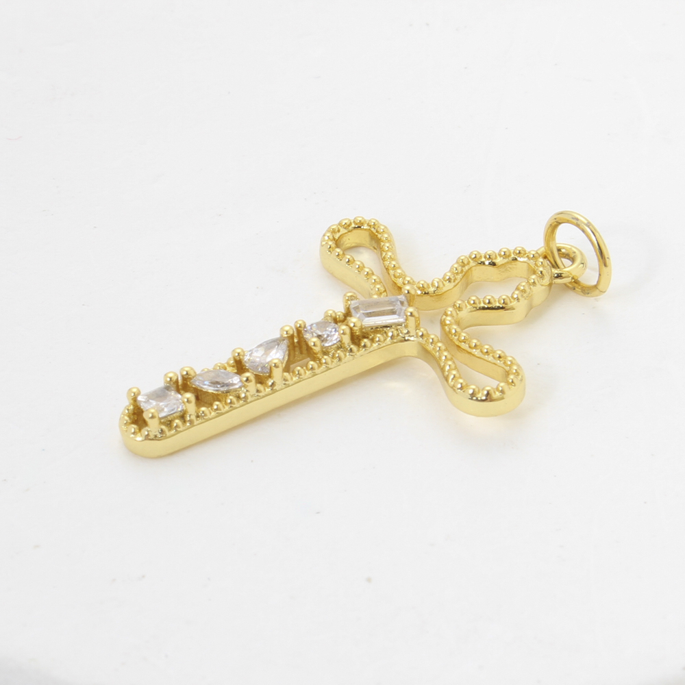 Cubique Pendentif en laiton zircon pavent, croix, Placage, DIY & pavé de micro zircon, Or, protéger l'environnement, sans nickel, plomb et cadmium, 27.70x17.40x2.20mm, Vendu par PC