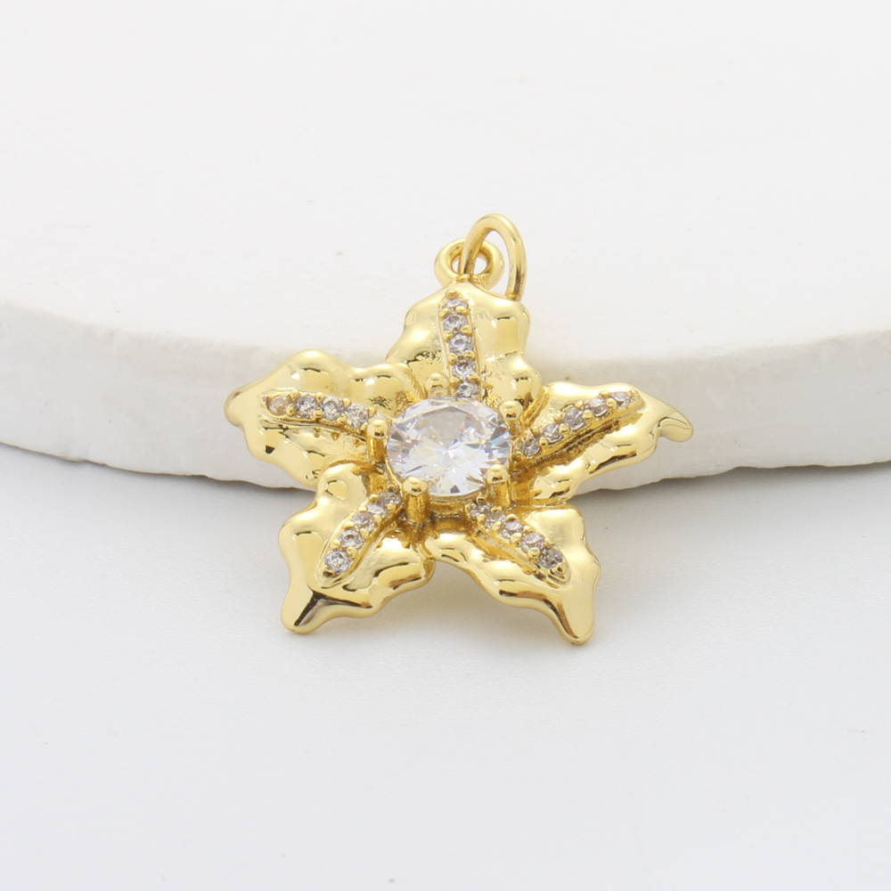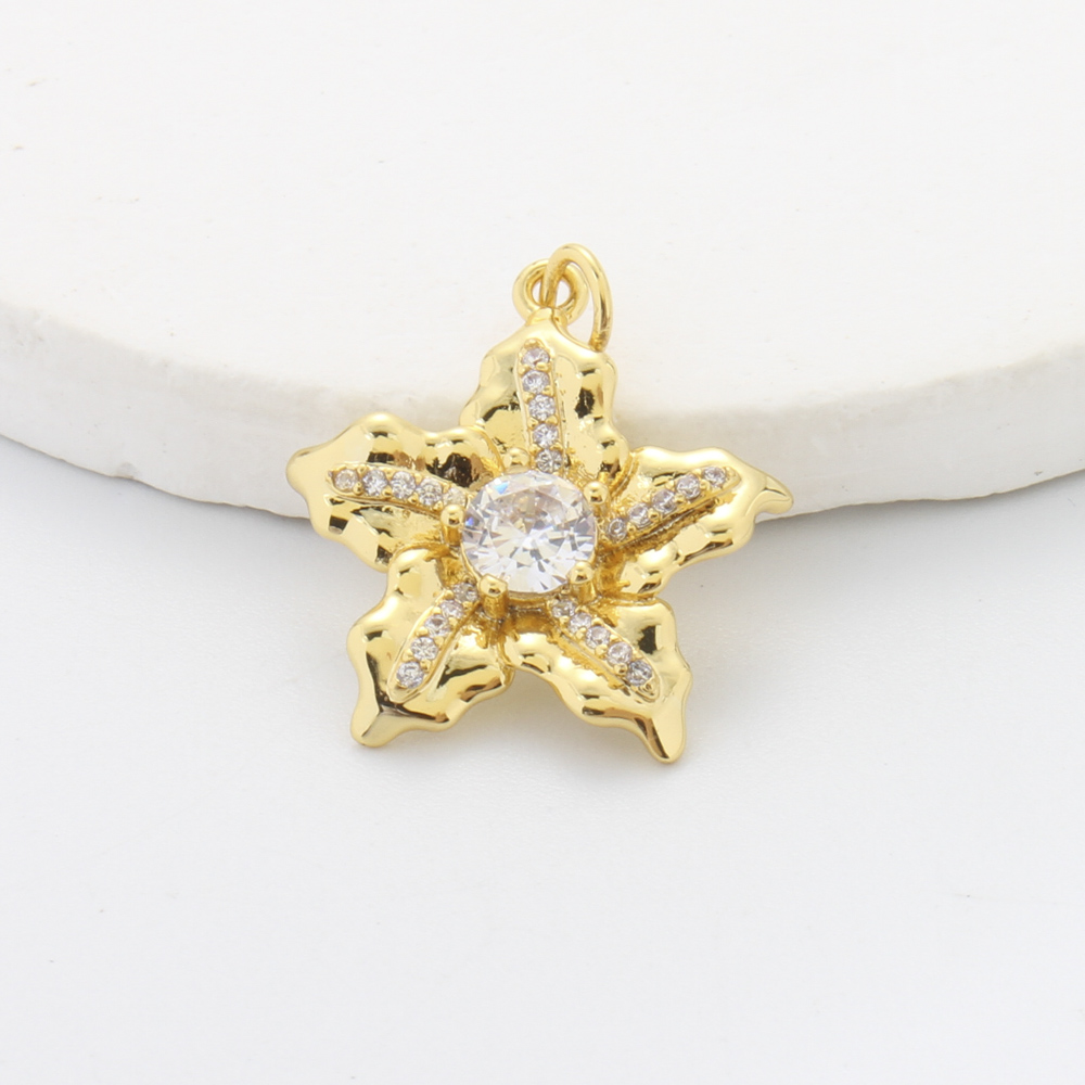 Cubique Pendentif en laiton zircon pavent, fleur, Plaqué or 18K, styles différents pour le choix & pavé de micro zircon & pour femme, Vendu par PC