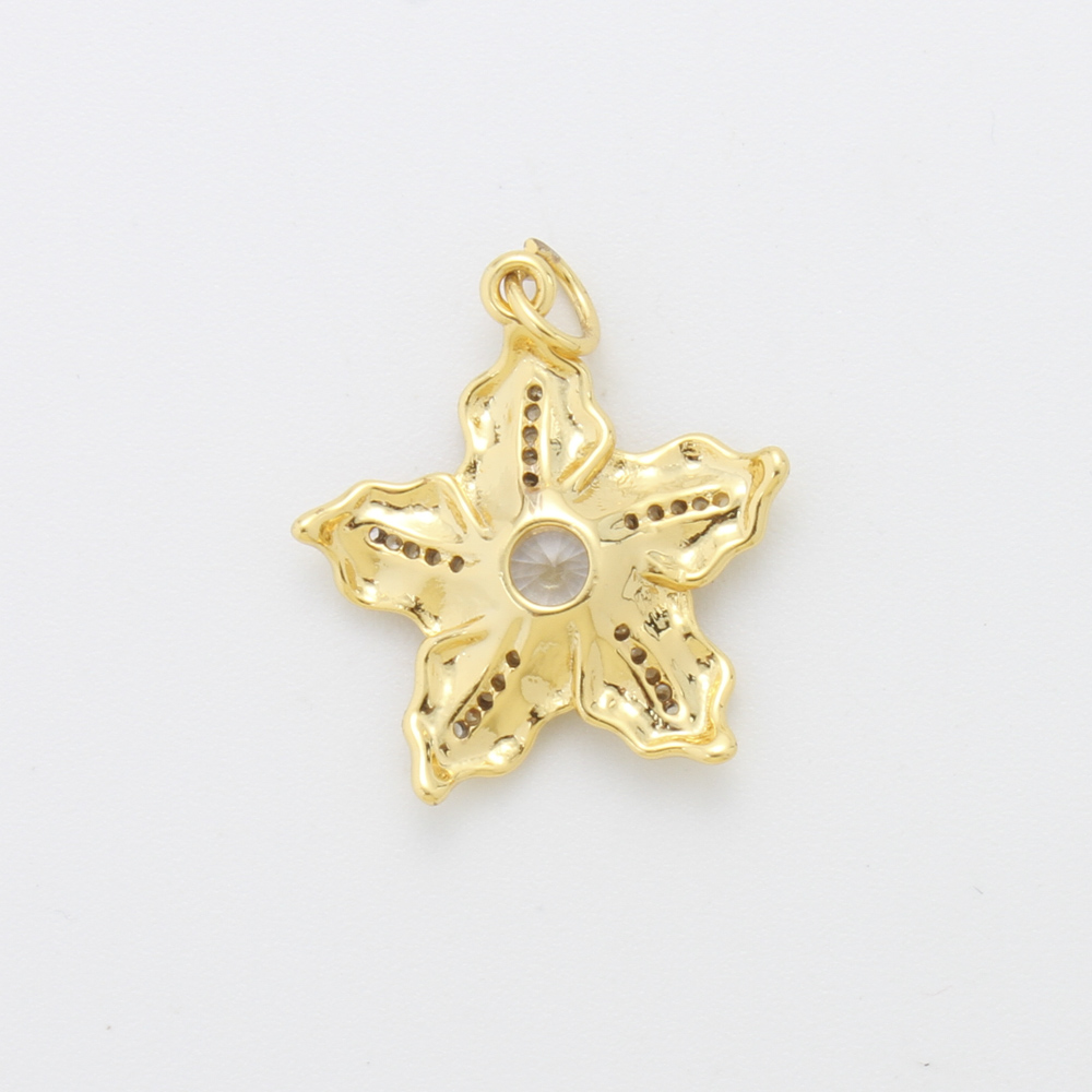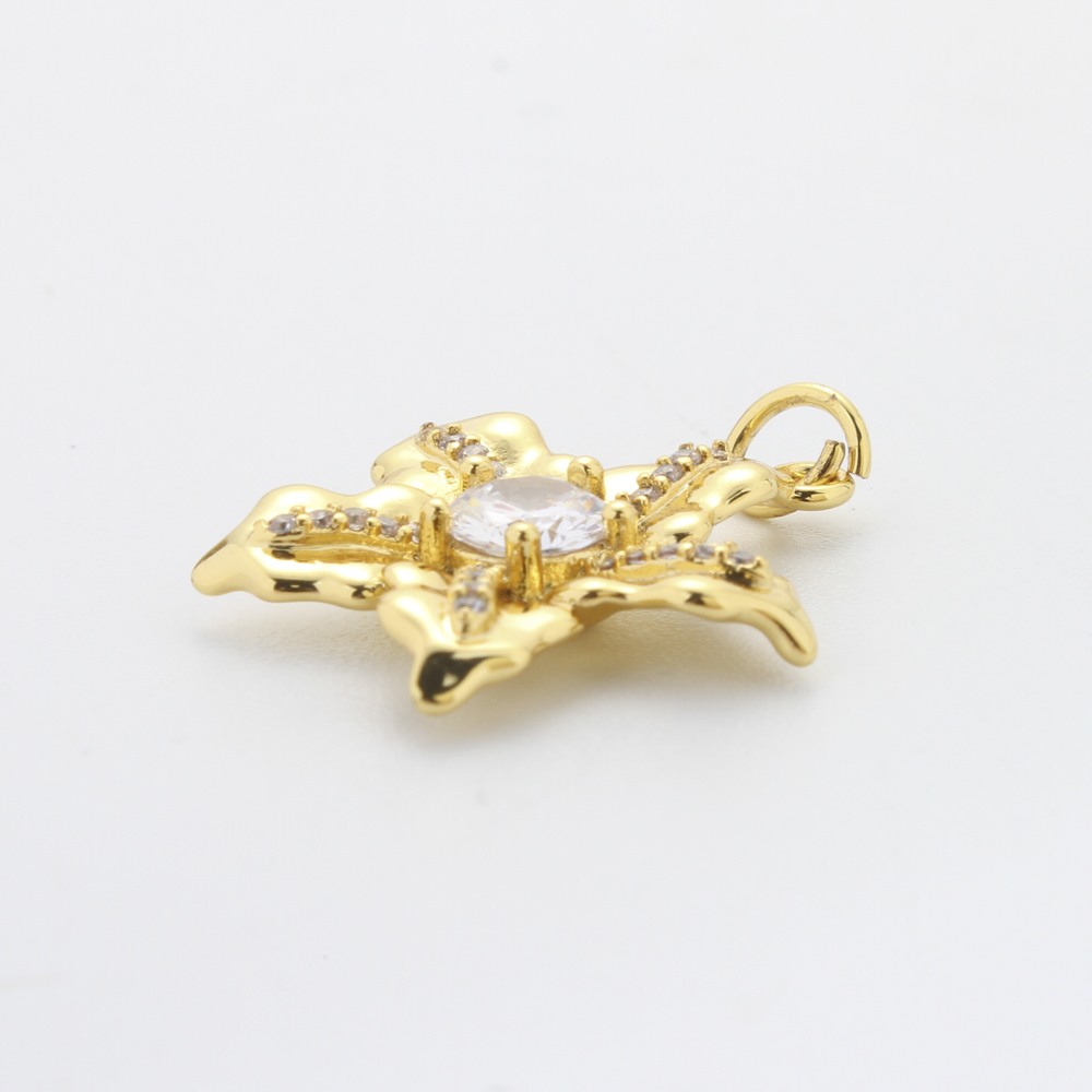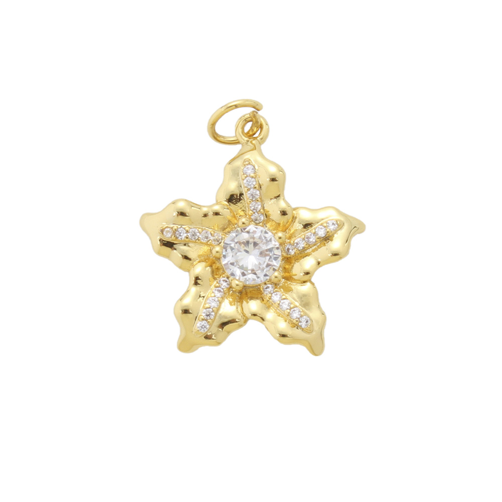 Cubique Pendentif en laiton zircon pavent, fleur, Placage, DIY & pavé de micro zircon, Or, protéger l'environnement, sans nickel, plomb et cadmium, 20x18.60x3.40mm, Vendu par PC