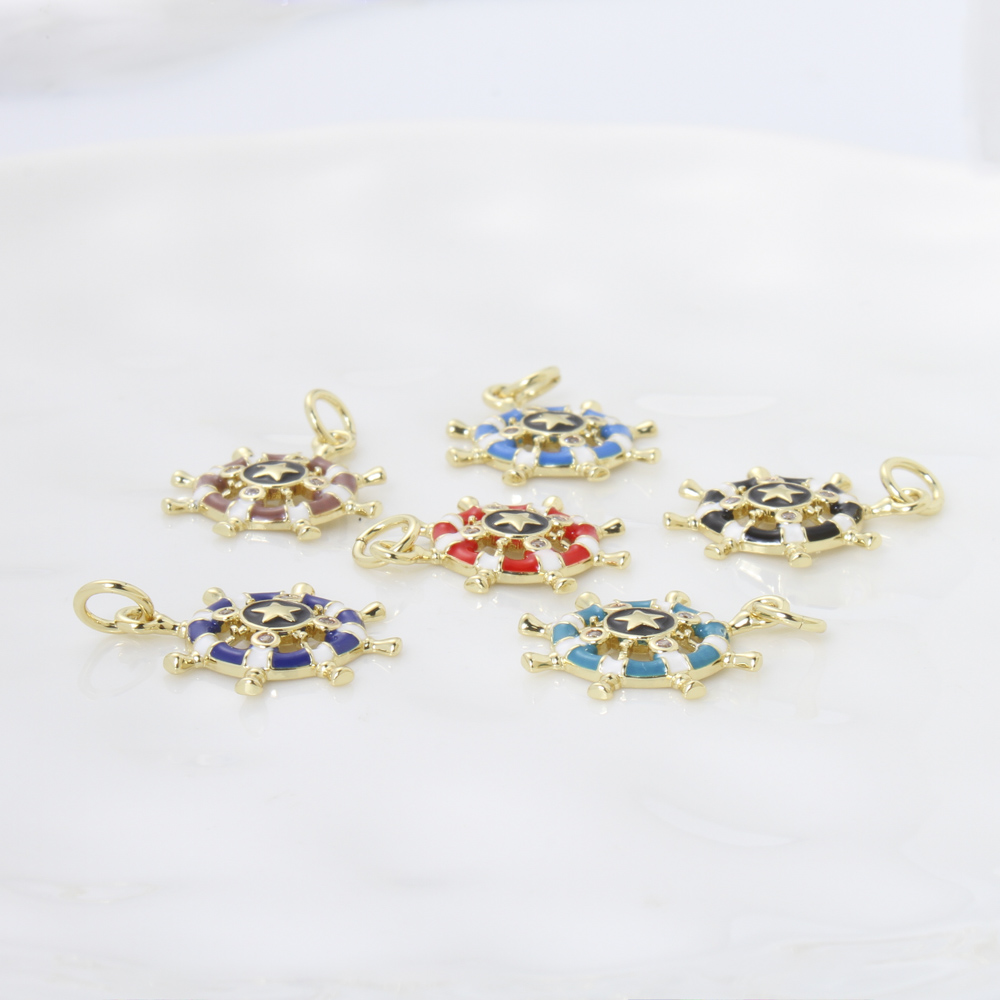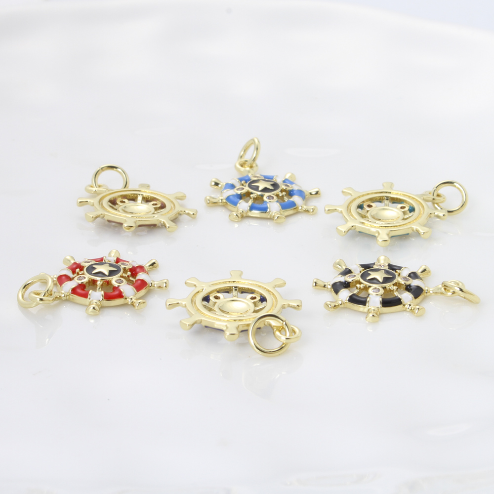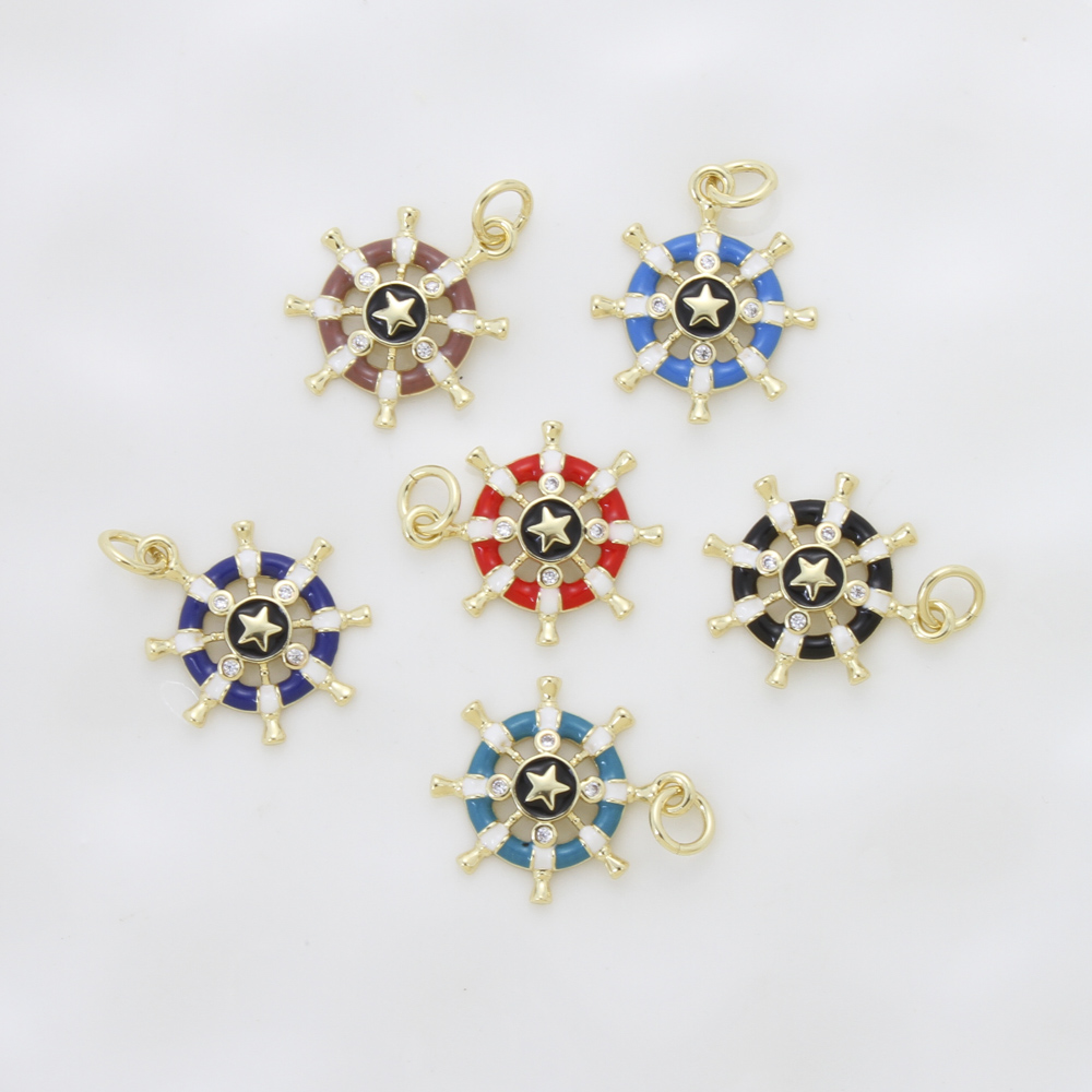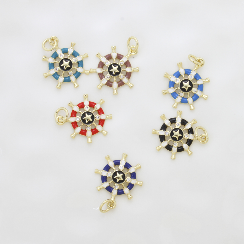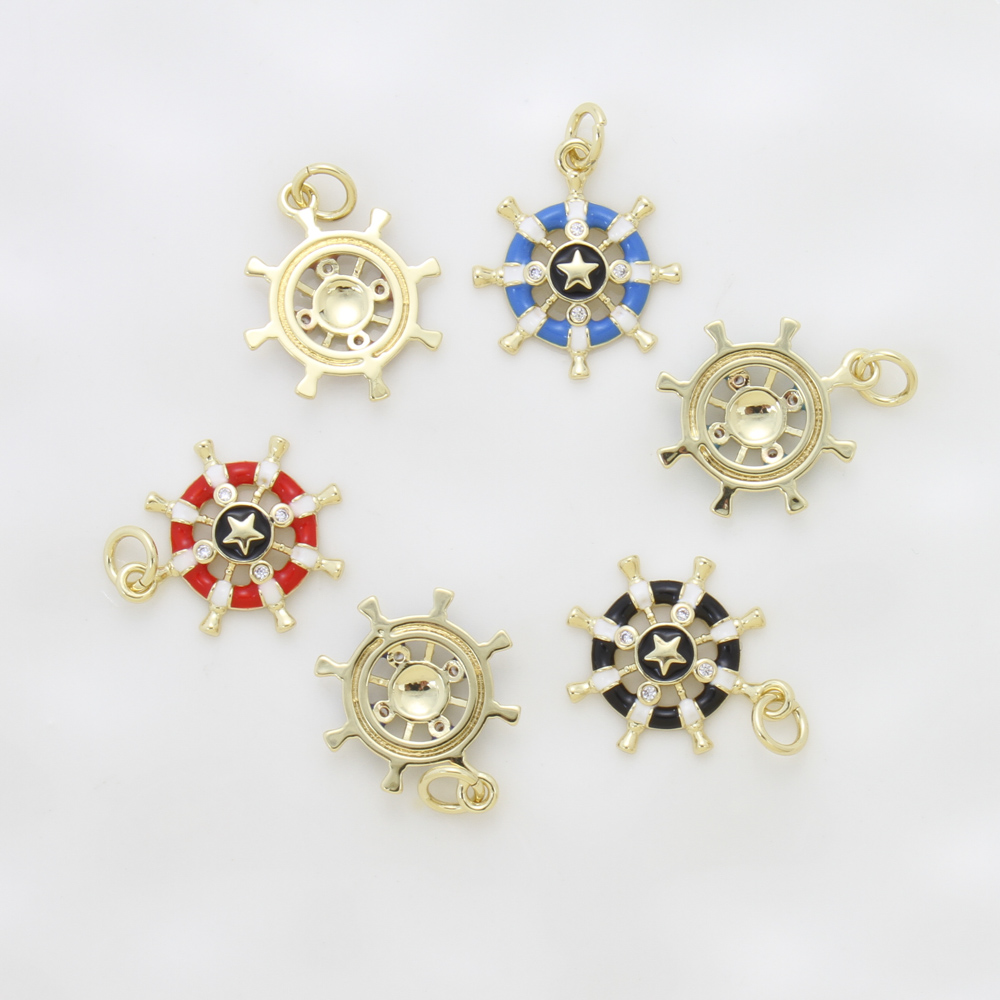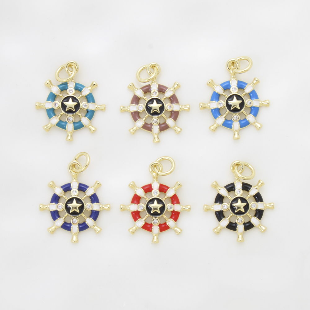 Cubique Pendentif en laiton zircon pavent, roue de bateau, Placage, DIY & pavé de micro zircon & émail, plus de couleurs à choisir, protéger l'environnement, sans nickel, plomb et cadmium, 18x15.70x2.30mm, Vendu par PC