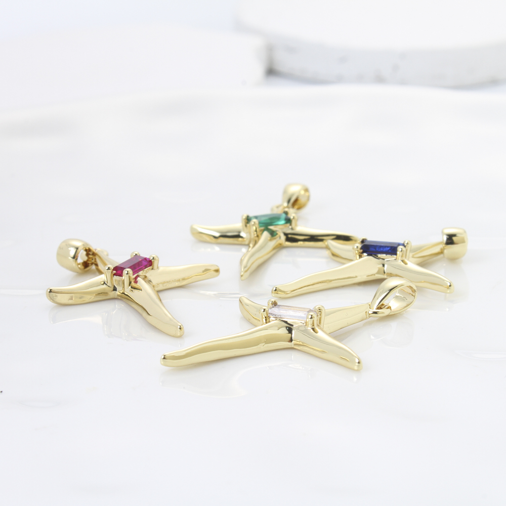 Cubique Pendentif en laiton zircon pavent, cerise, Placage, DIY & pavé de micro zircon, doré, protéger l'environnement, sans nickel, plomb et cadmium, 13.47x3.86x19.18mm, 20PC/sac, Vendu par sac