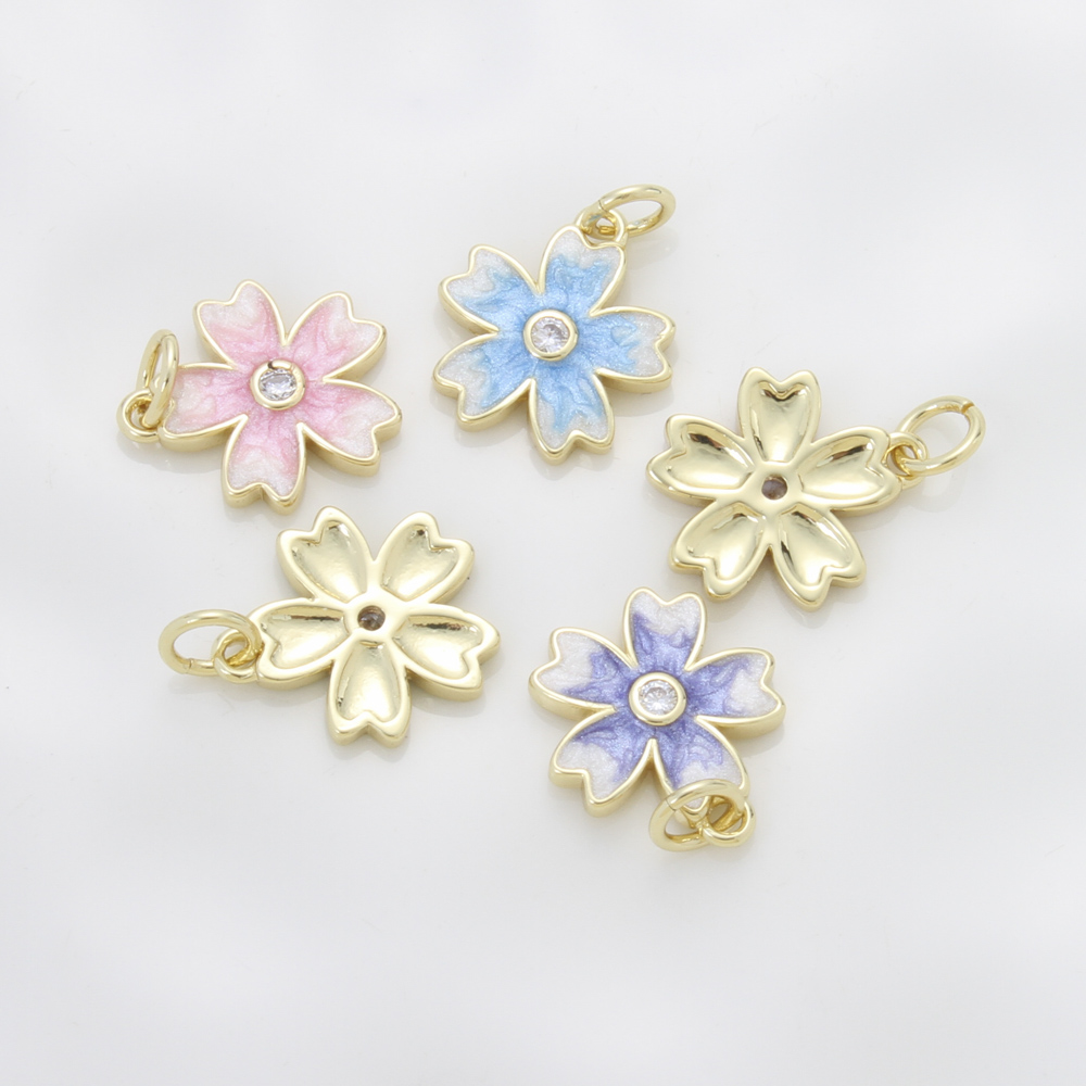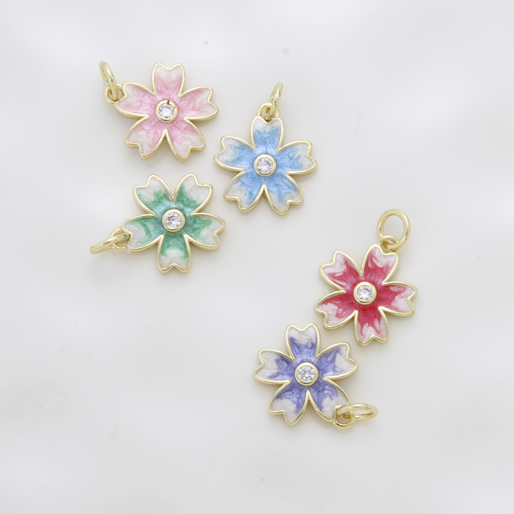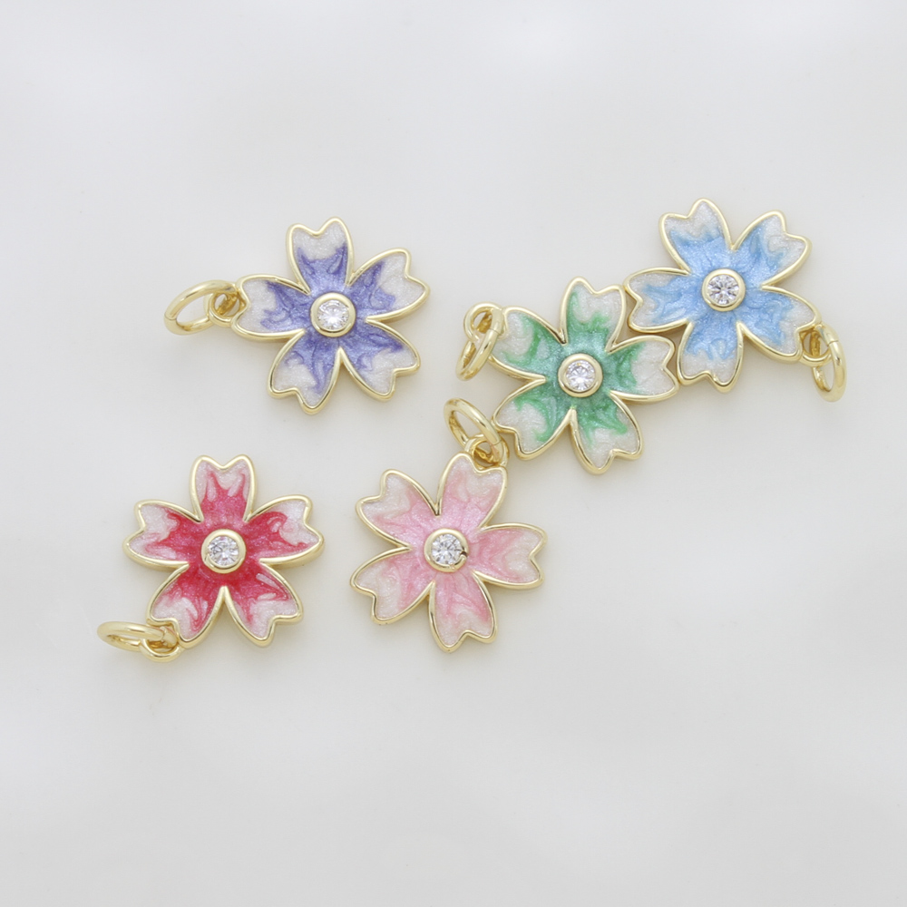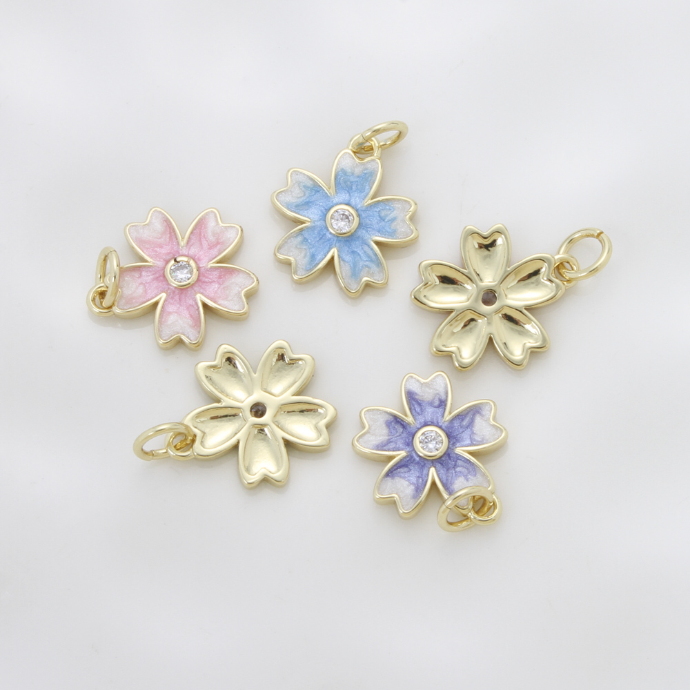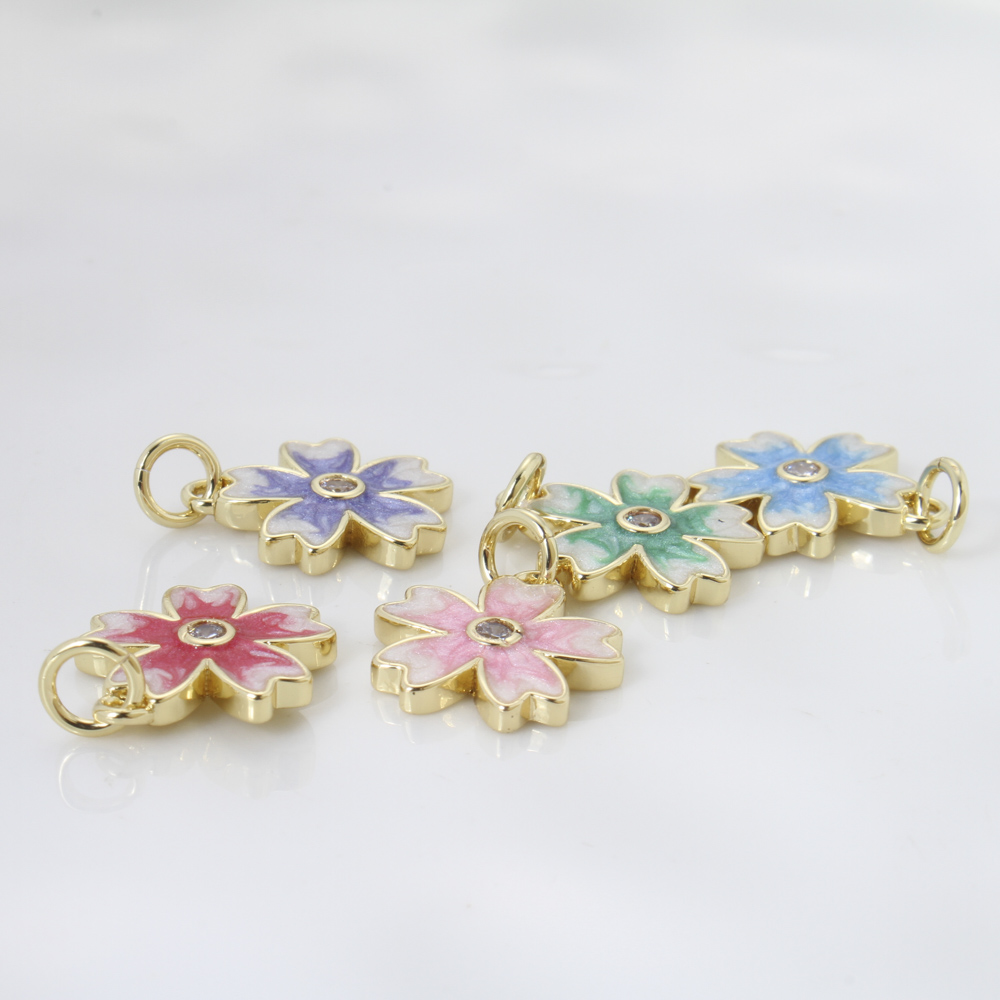 Cubique Pendentif en laiton zircon pavent, fleur, Placage, DIY & pavé de micro zircon & émail, plus de couleurs à choisir, protéger l'environnement, sans nickel, plomb et cadmium, 14x12.60x2mm, Vendu par PC