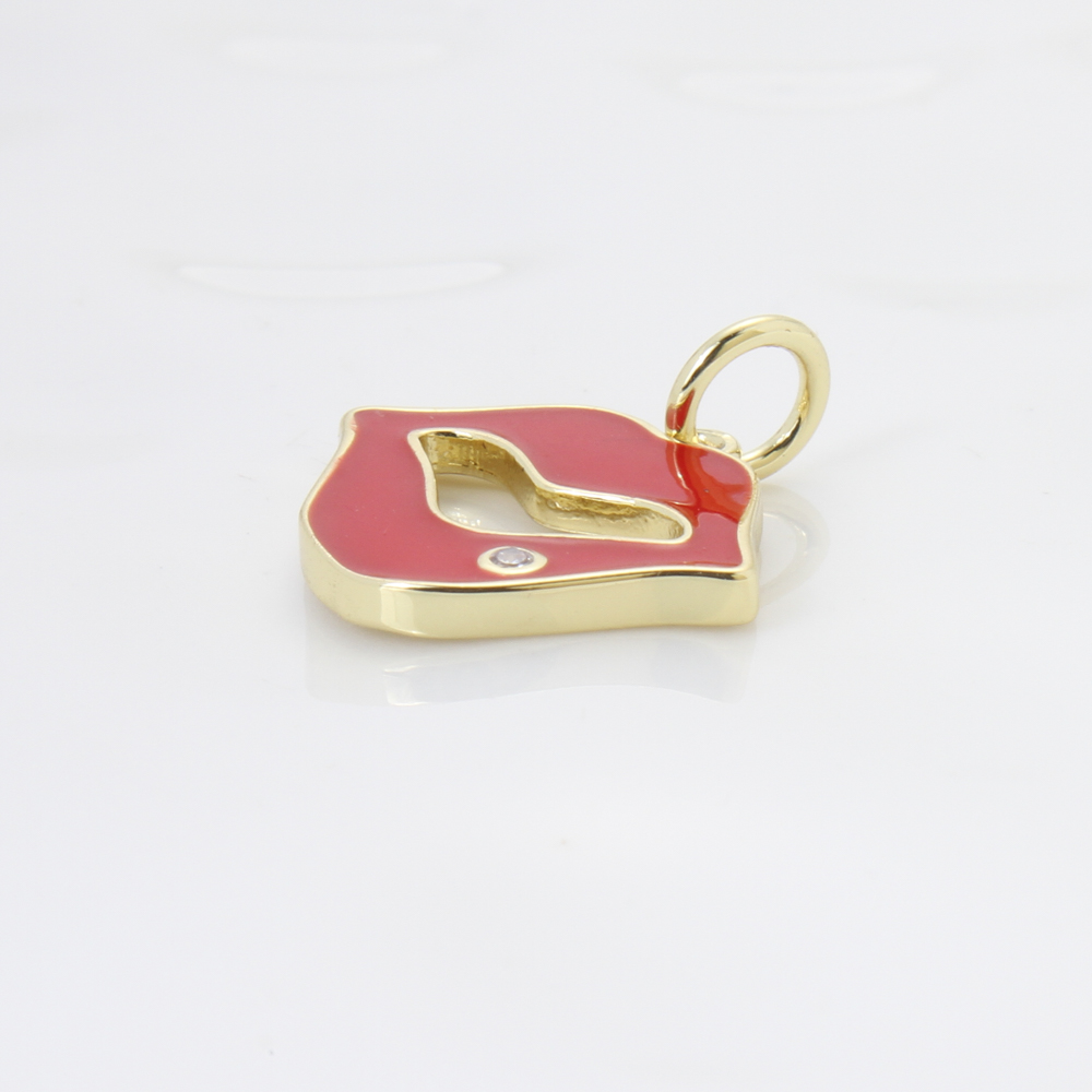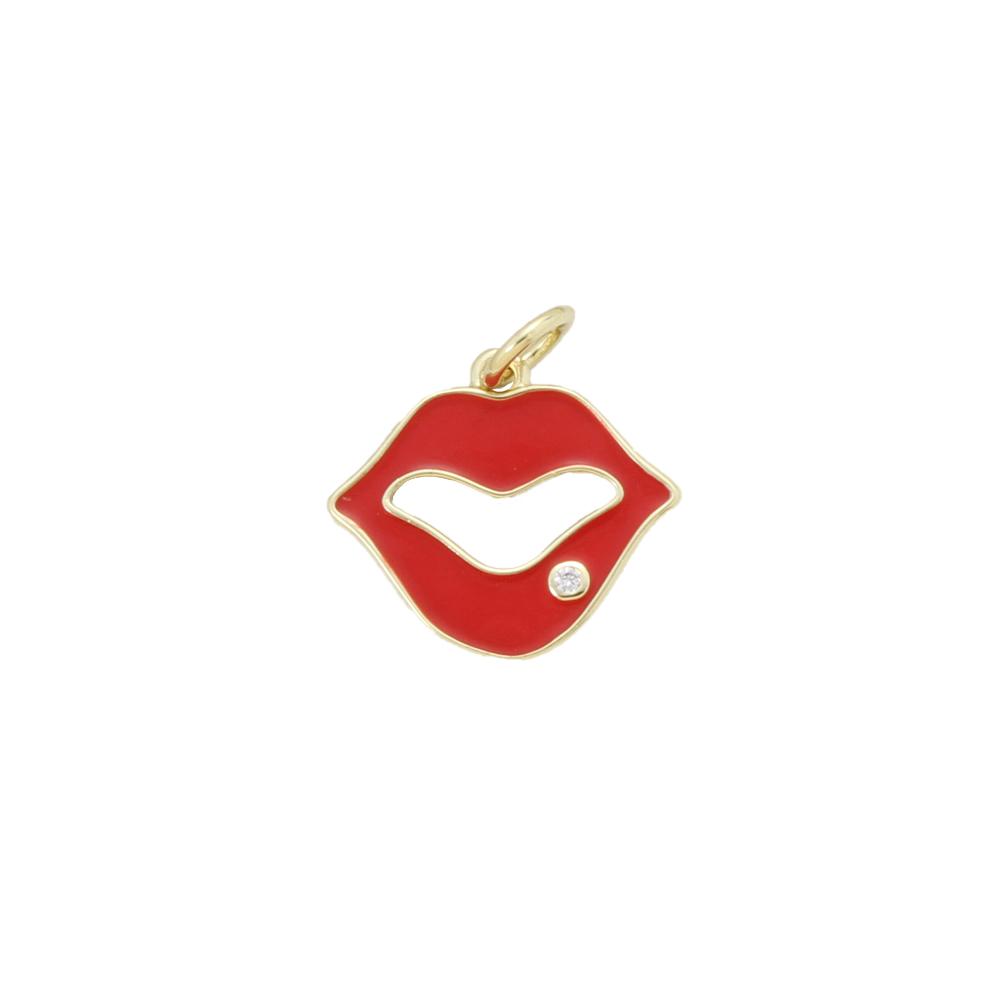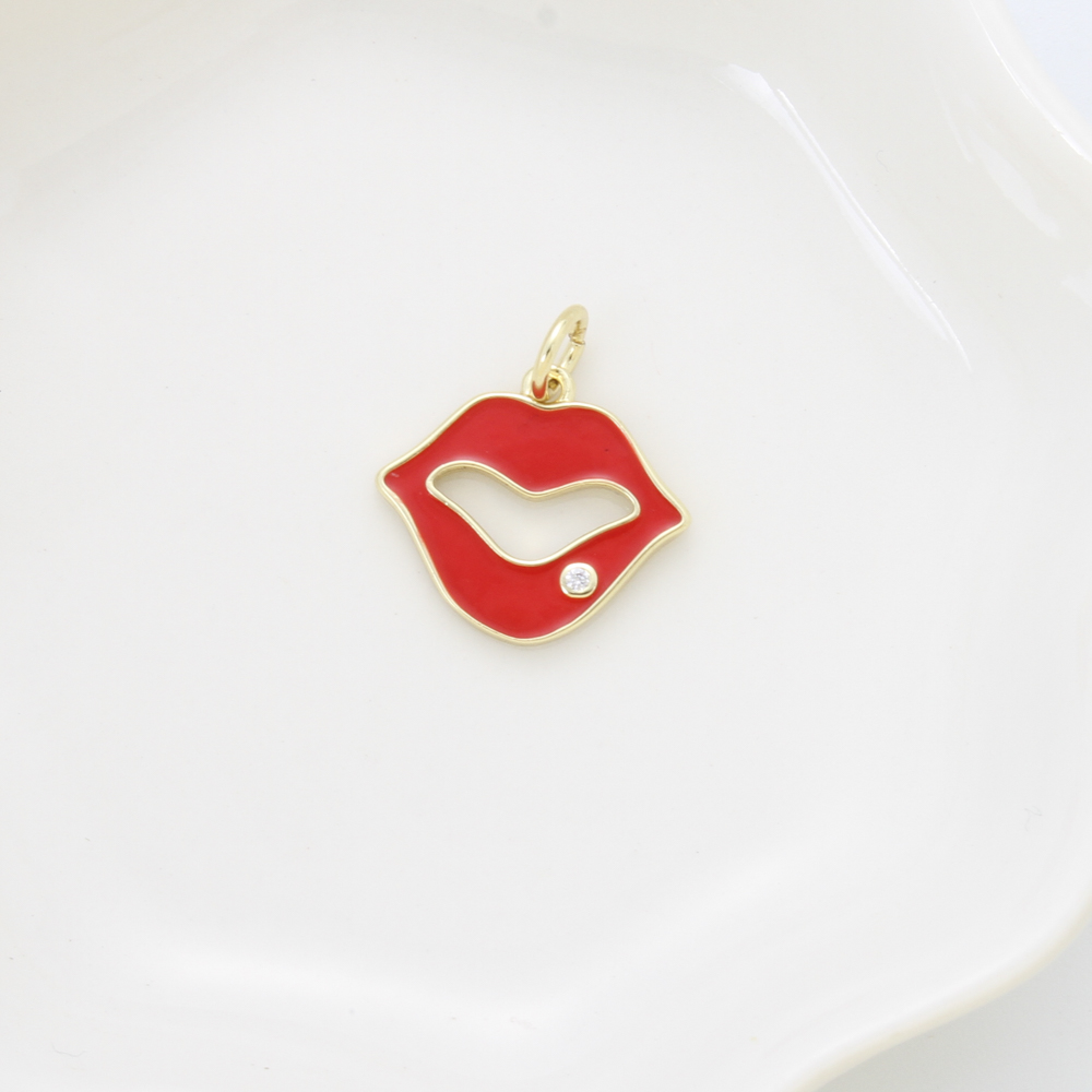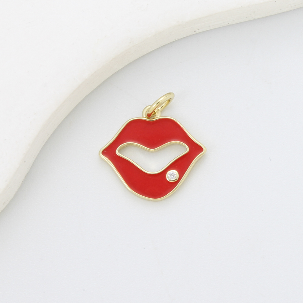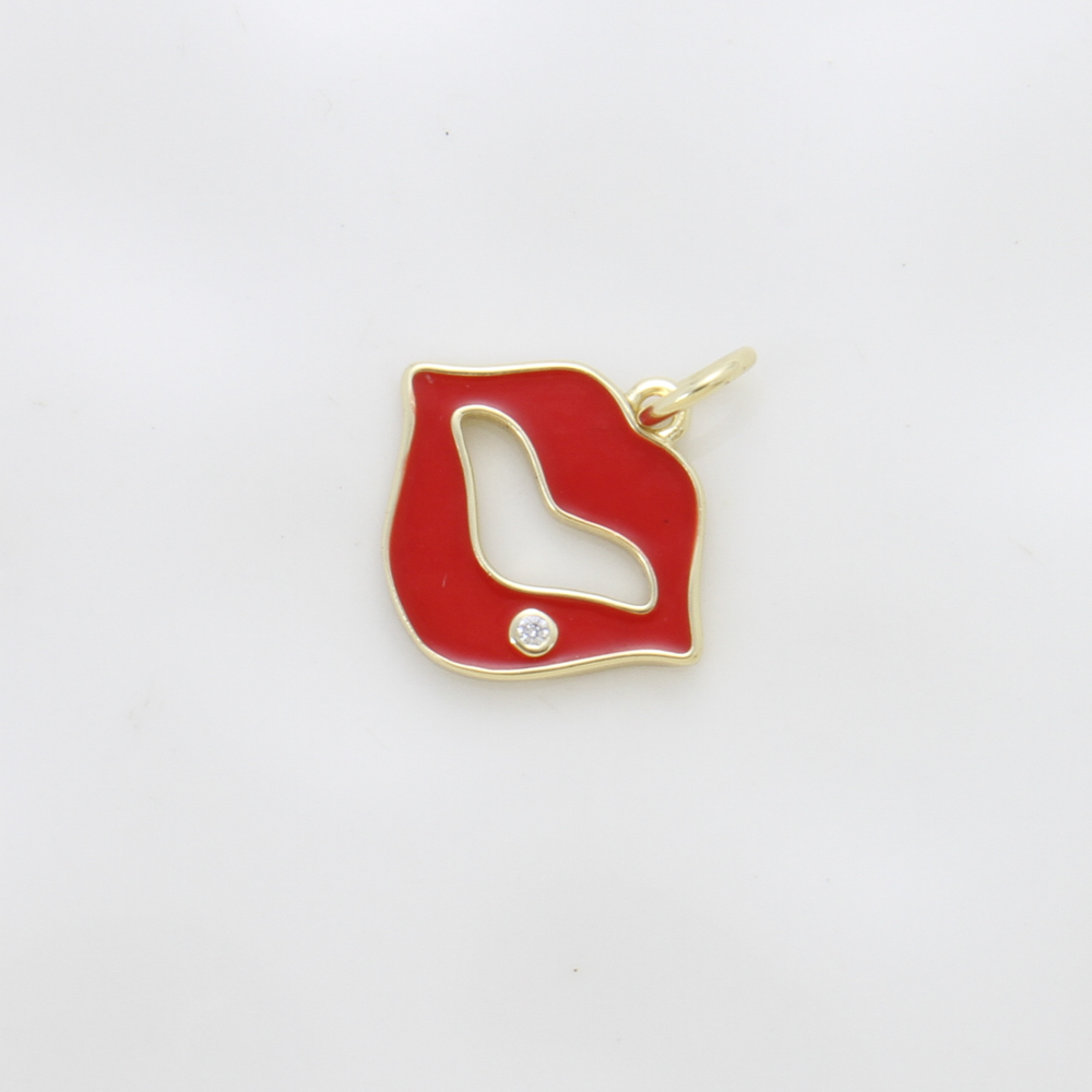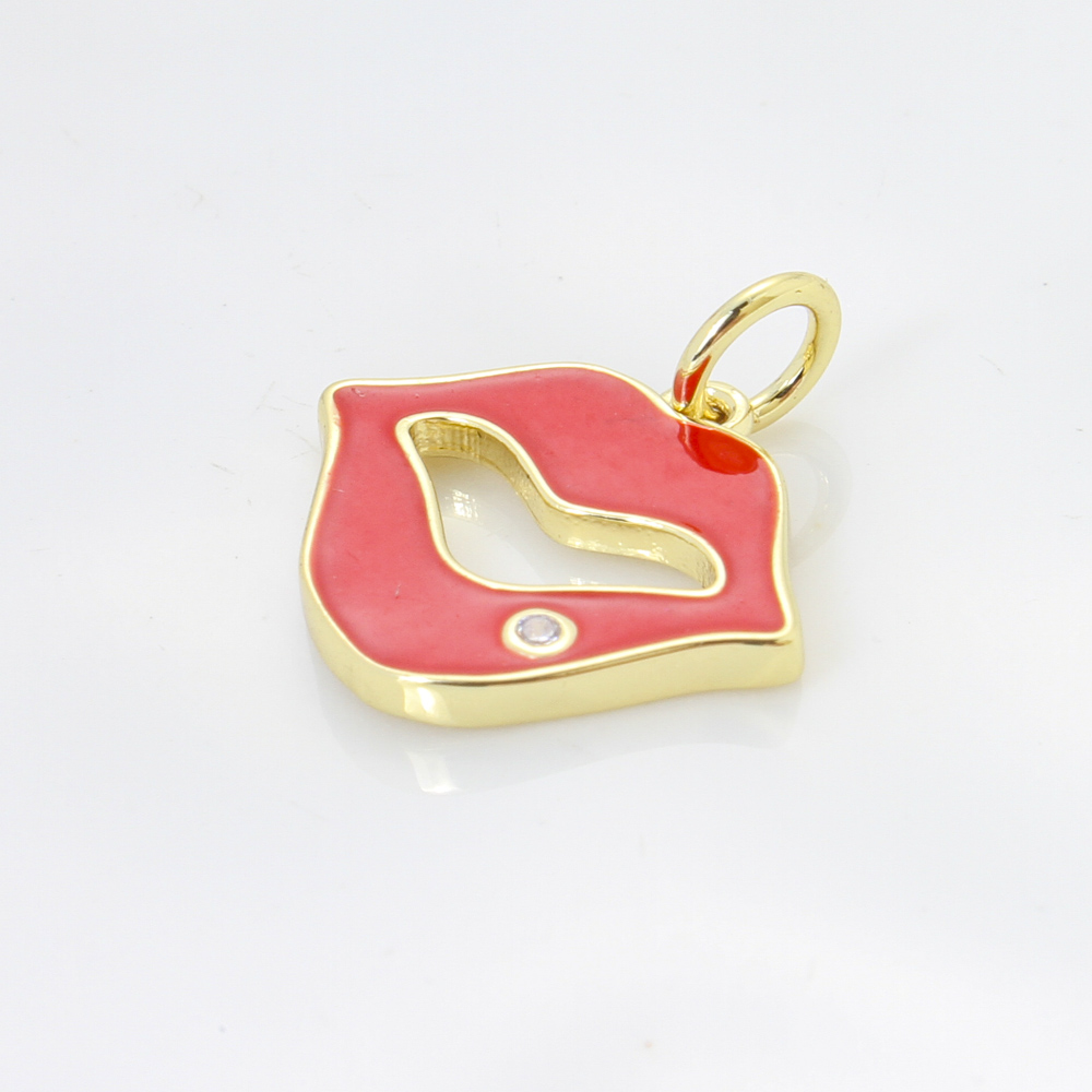 Cubique Pendentif en laiton zircon pavent, lèvre, Placage, DIY & pavé de micro zircon & émail, rouge, protéger l'environnement, sans nickel, plomb et cadmium, 13.30x15x1.60mm, Vendu par PC