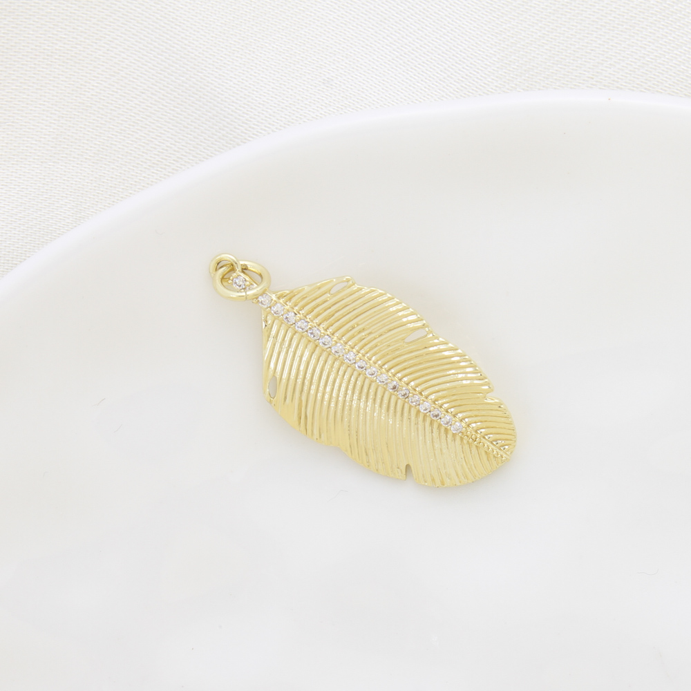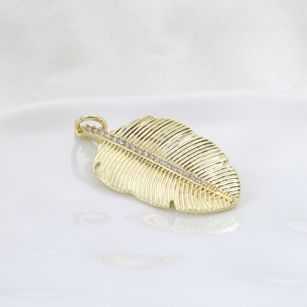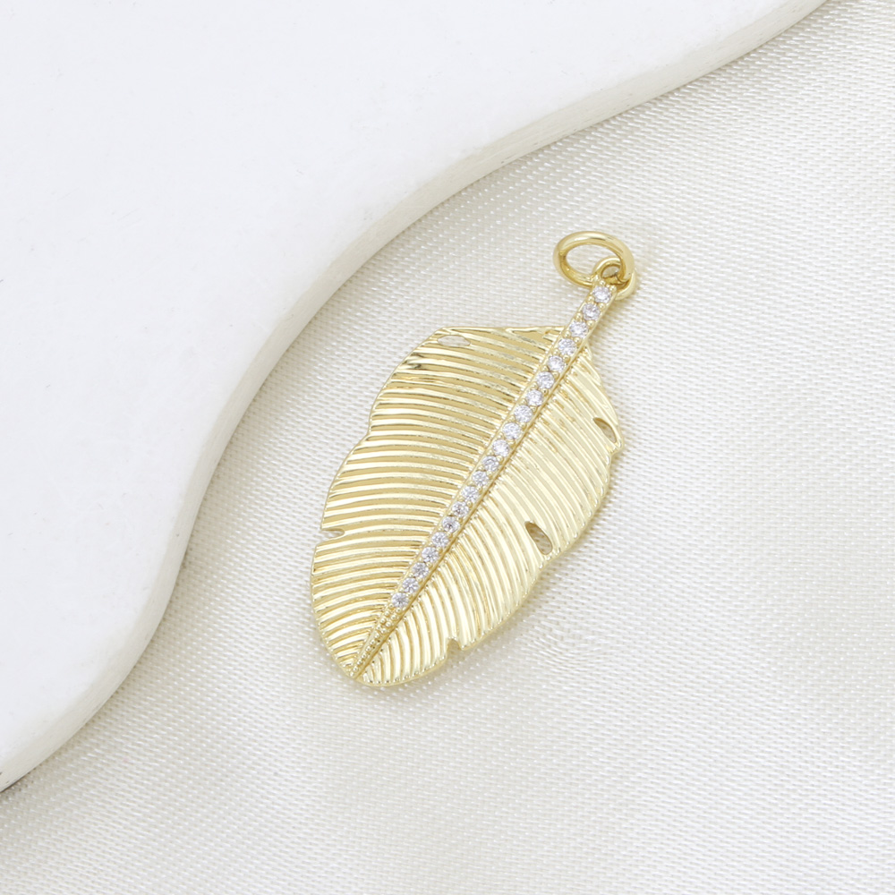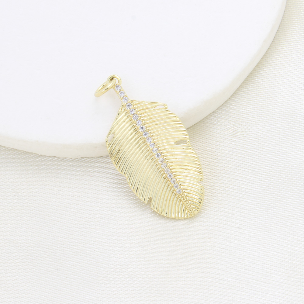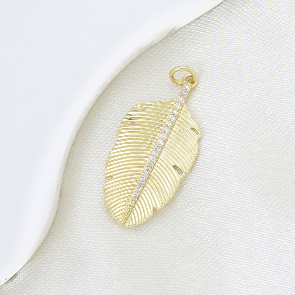Cubique Pendentif en laiton zircon pavent, feuille, Placage, DIY & pavé de micro zircon, doré, protéger l'environnement, sans nickel, plomb et cadmium, 30.70x15x2.20mm, Vendu par PC