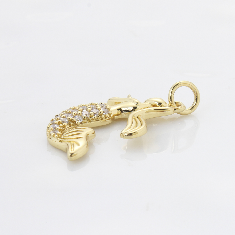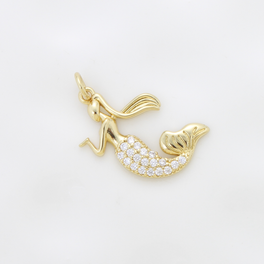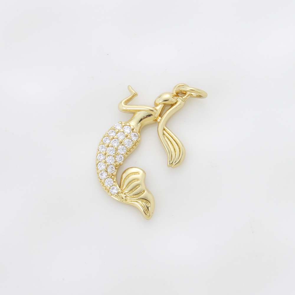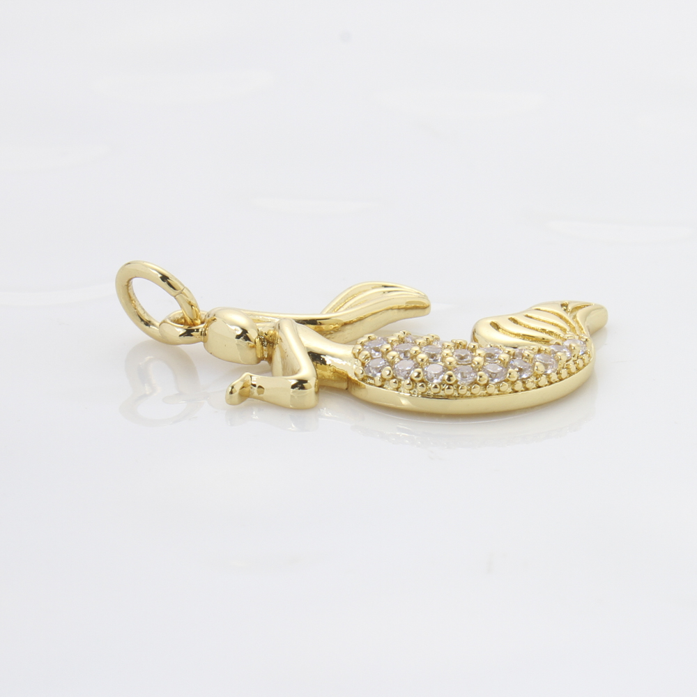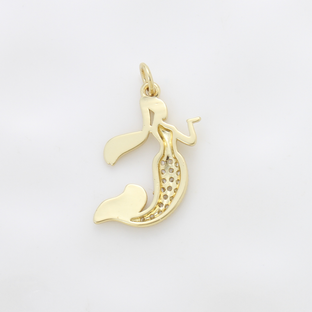Cubique Pendentif en laiton zircon pavent, sirène, Placage, DIY & pavé de micro zircon, doré, protéger l'environnement, sans nickel, plomb et cadmium, 22.30x13x2.50mm, Vendu par PC