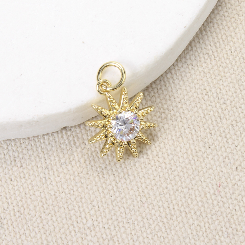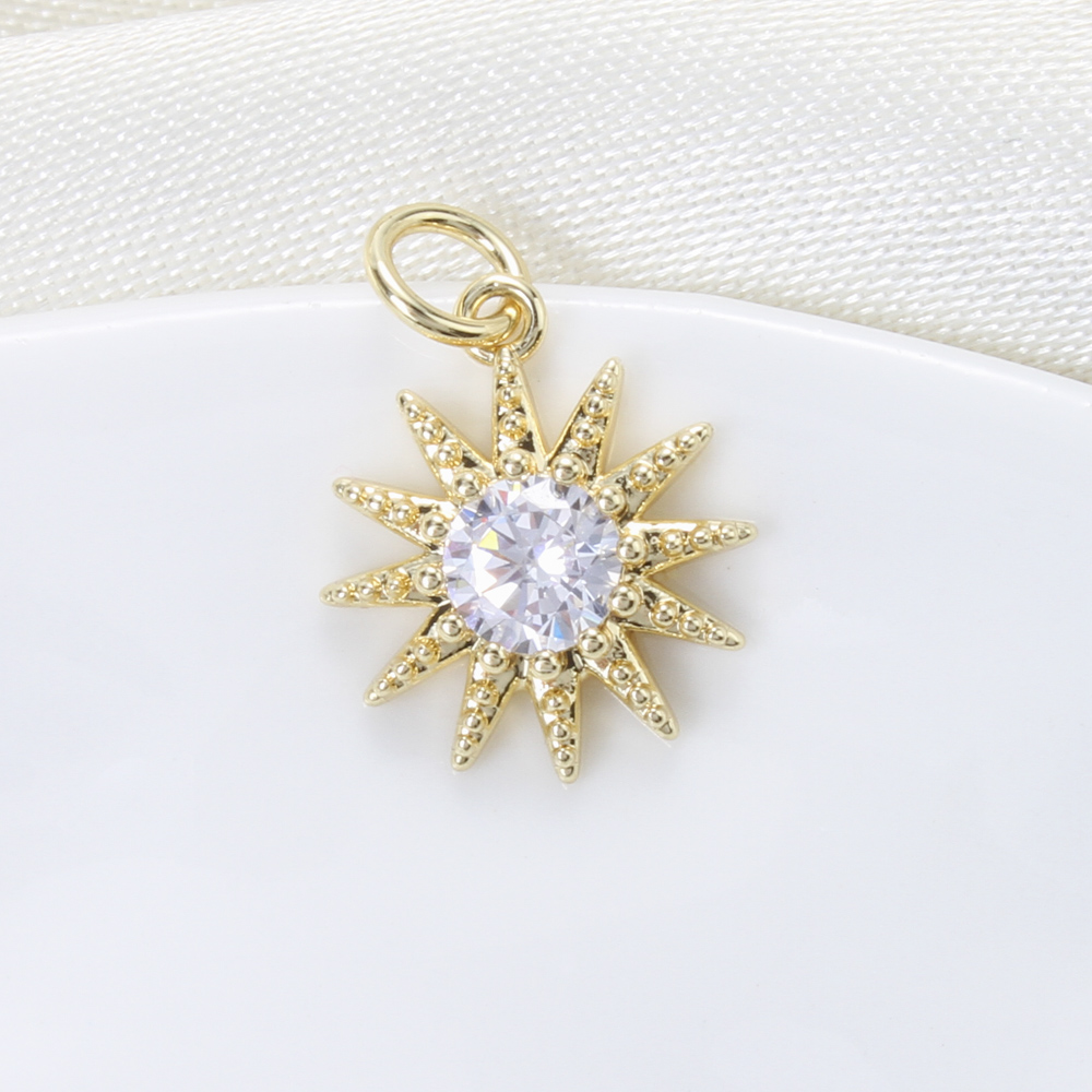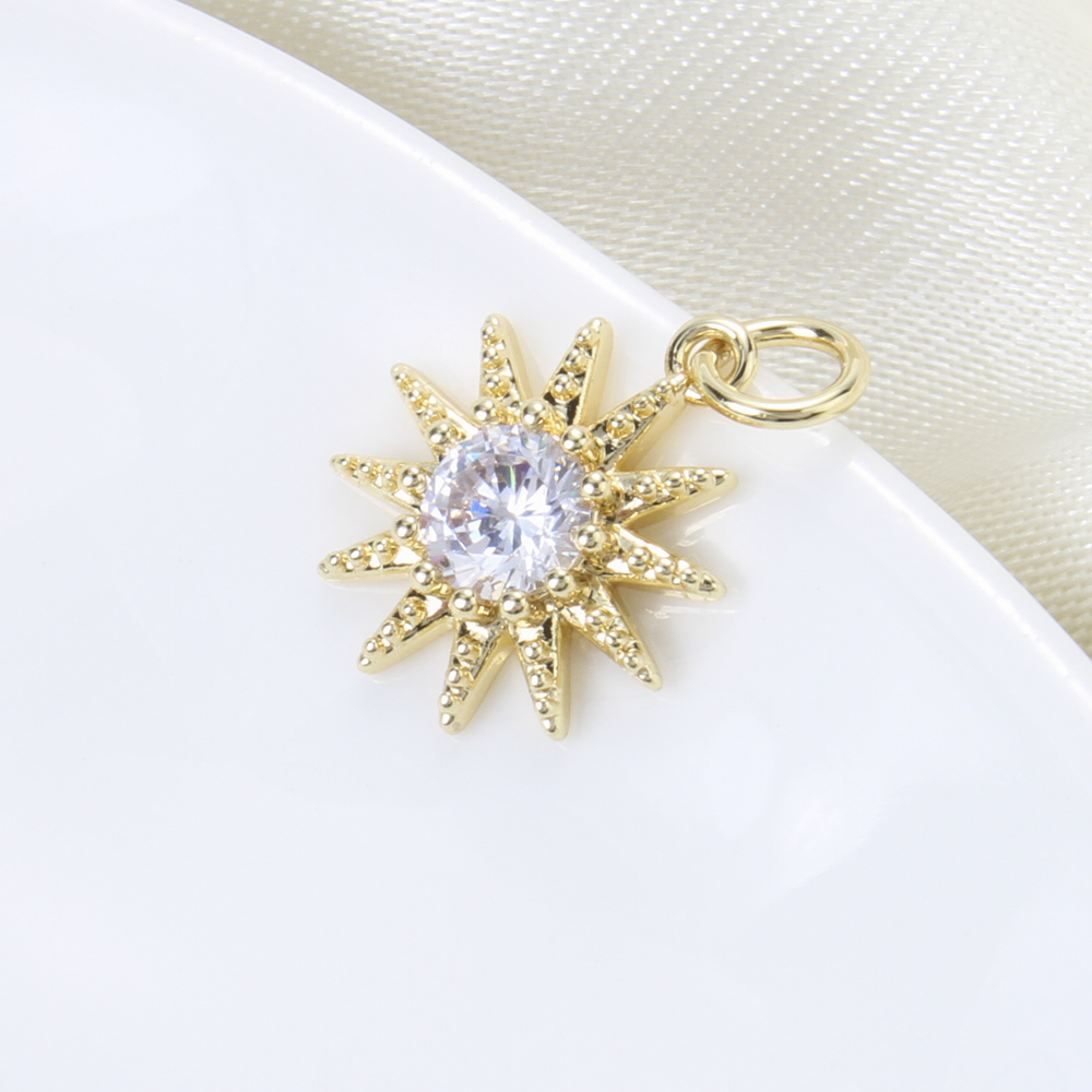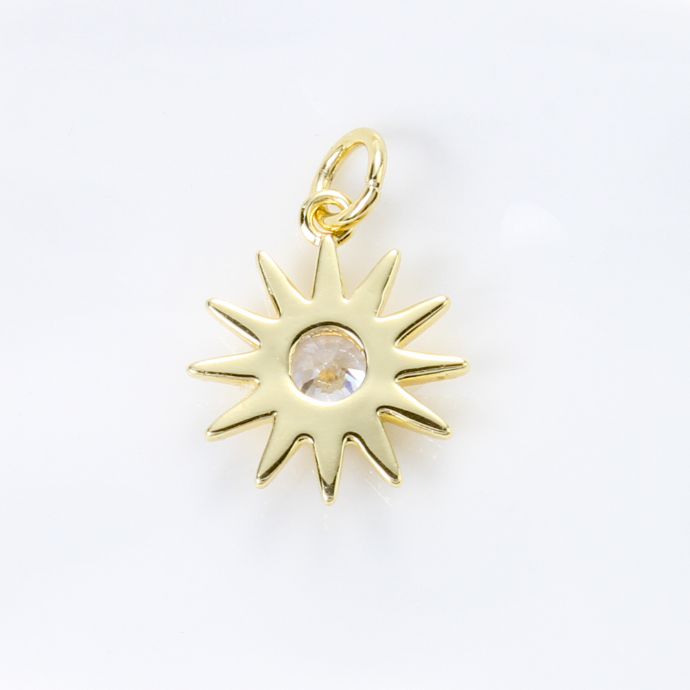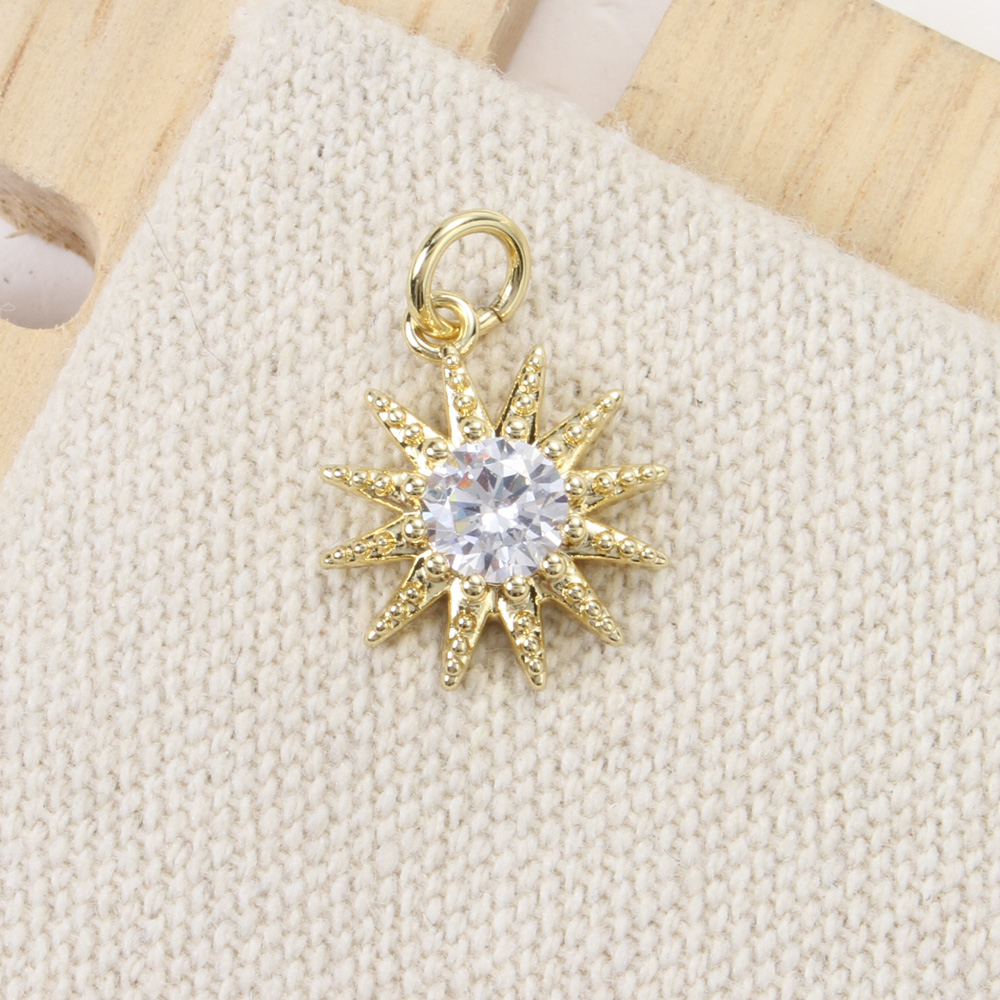 Cubique Pendentif en laiton zircon pavent, soleil, Placage, DIY & pavé de micro zircon, Or, protéger l'environnement, sans nickel, plomb et cadmium, 14.40x12.50x3.70mm, Vendu par PC
