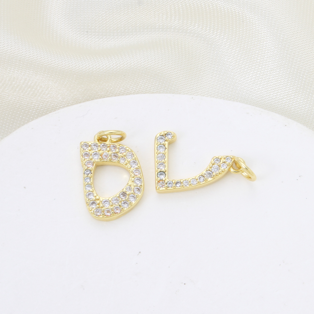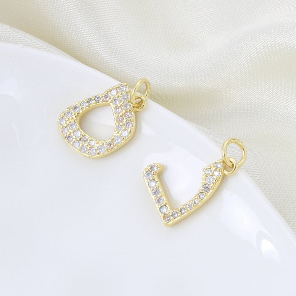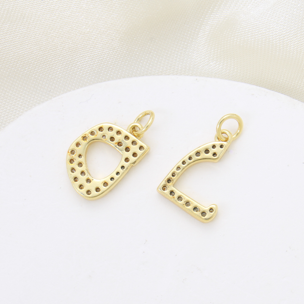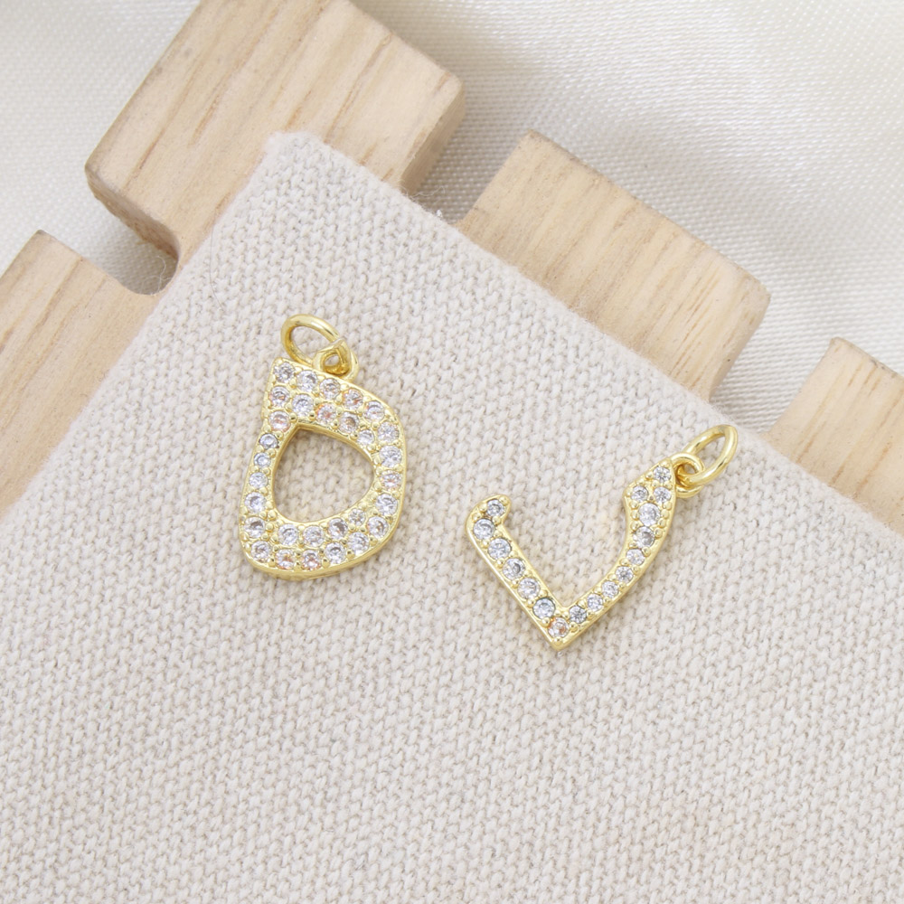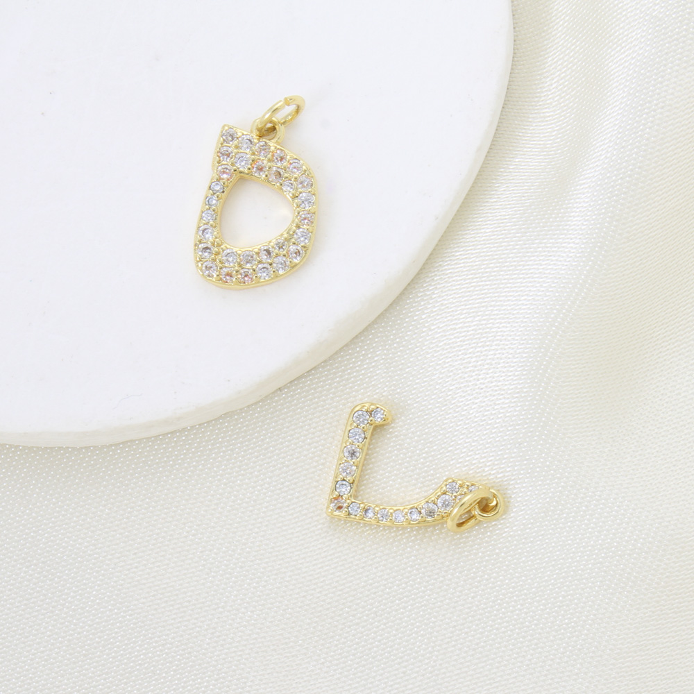 Cubique Pendentif en laiton zircon pavent, Lettre d’alphabet, Placage, DIY & pavé de micro zircon, Or, protéger l'environnement, sans nickel, plomb et cadmium, 16.30x10.80x2.30mm, Vendu par PC