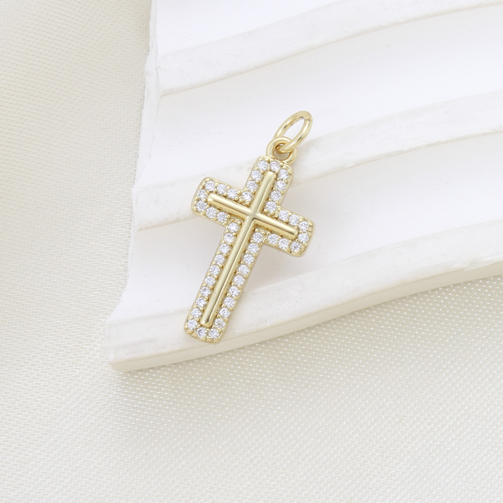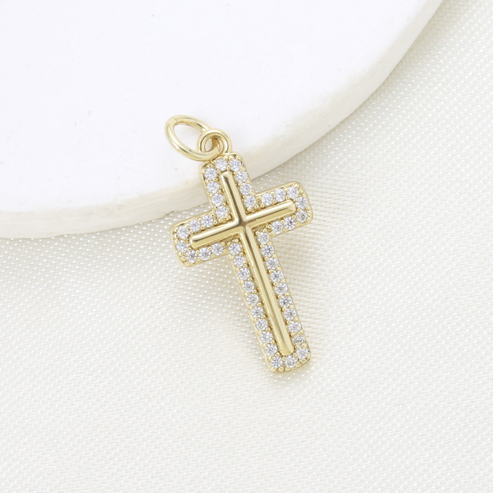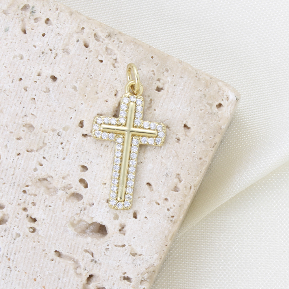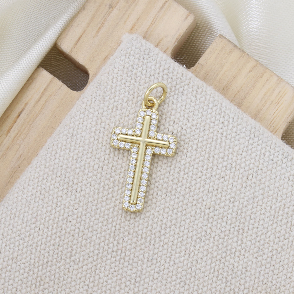 Cubique Pendentif en laiton zircon pavent, croix, Placage, DIY & pavé de micro zircon, Or, protéger l'environnement, sans nickel, plomb et cadmium, 29x11.90x2.10mm, Vendu par PC