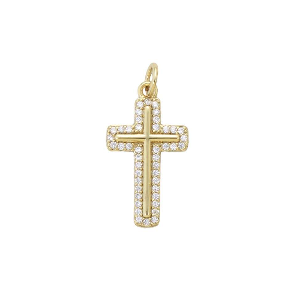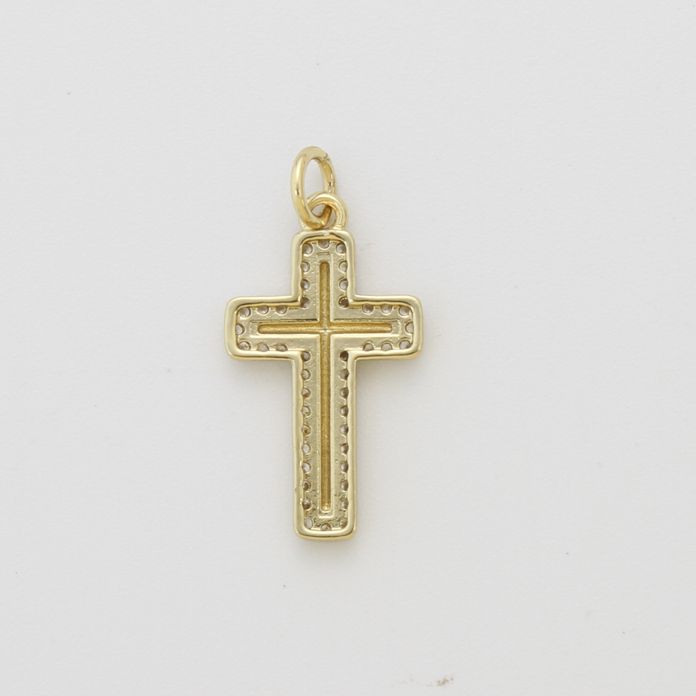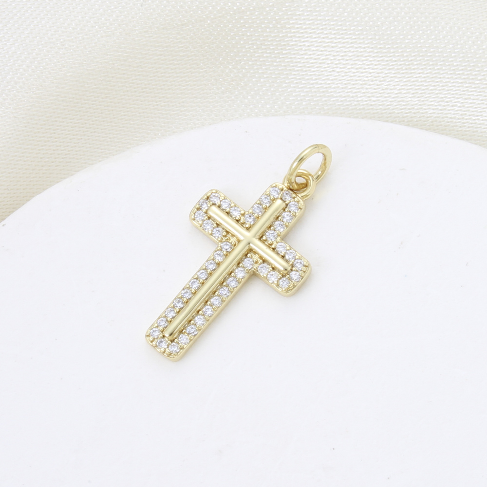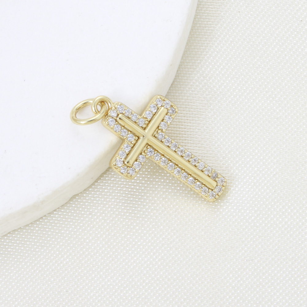 Cubique Pendentif en laiton zircon pavent, croix, Placage, DIY & pavé de micro zircon, Or, protéger l'environnement, sans nickel, plomb et cadmium, 29x11.90x2.10mm, Vendu par PC