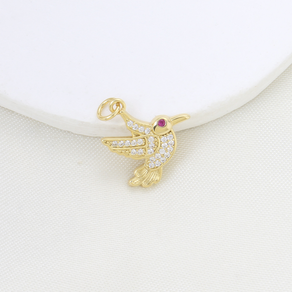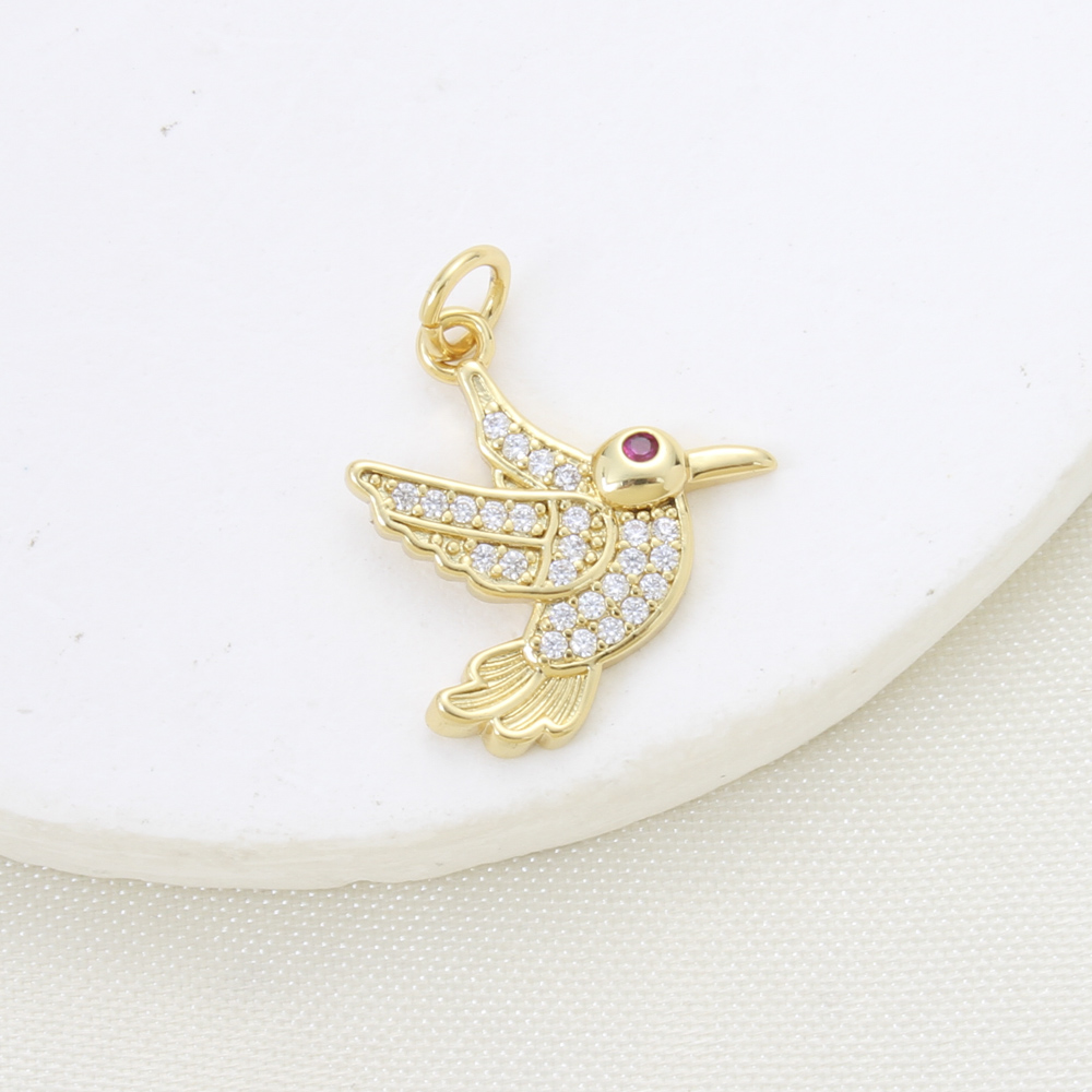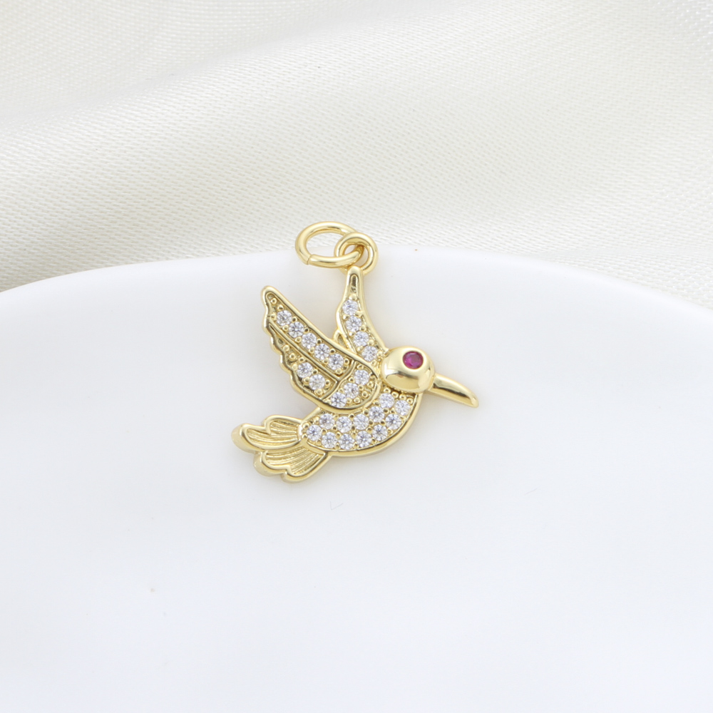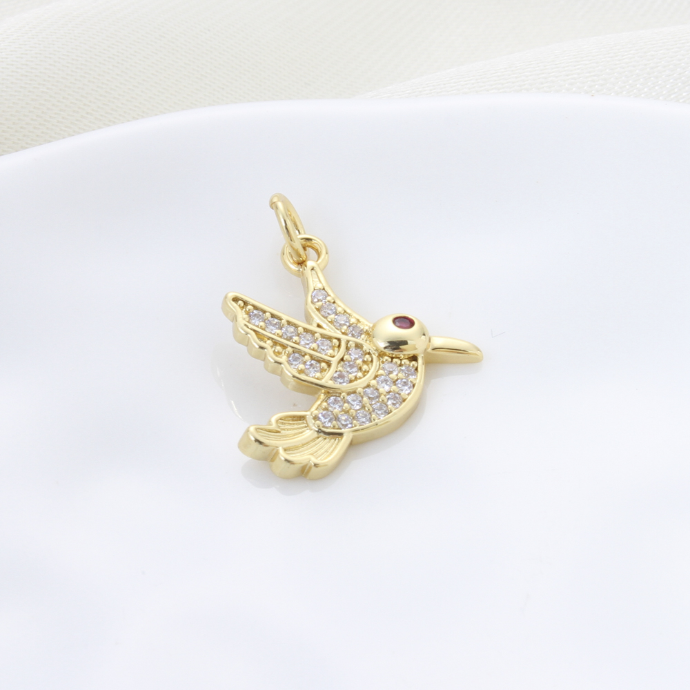 Cubique Pendentif en laiton zircon pavent, oiseau, Placage, DIY & pavé de micro zircon, Or, protéger l'environnement, sans nickel, plomb et cadmium, 18.30x17.10x2.50mm, Vendu par PC
