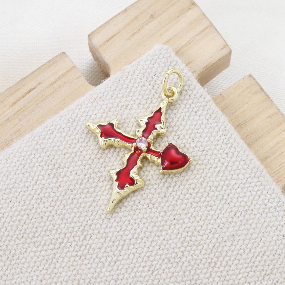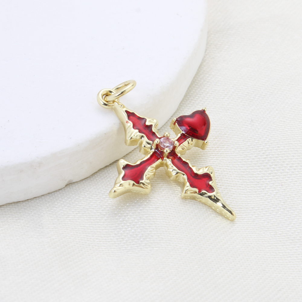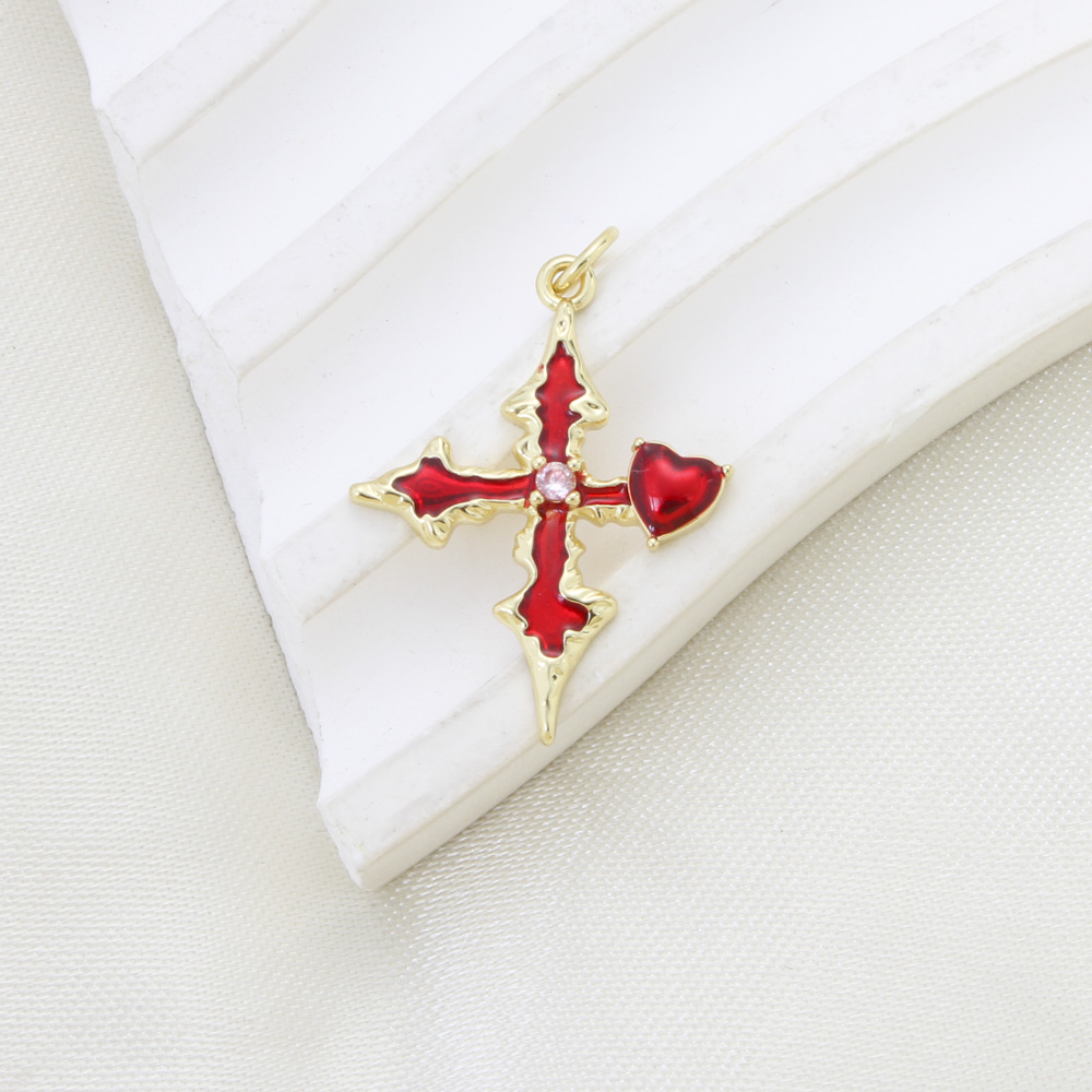 Cubique Pendentif en laiton zircon pavent, croix, Placage, DIY & pavé de micro zircon & émail, plus de couleurs à choisir, protéger l'environnement, sans nickel, plomb et cadmium, 25.40x19.70x3mm, Vendu par PC