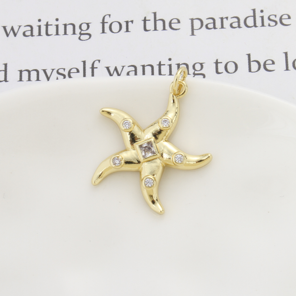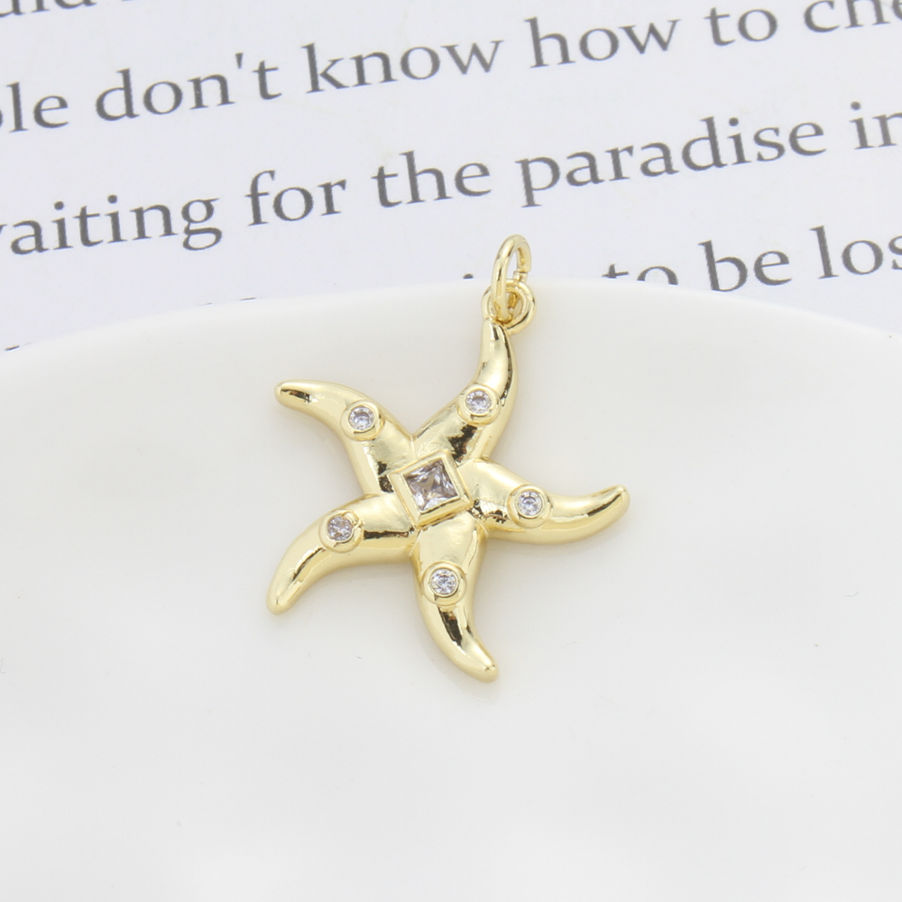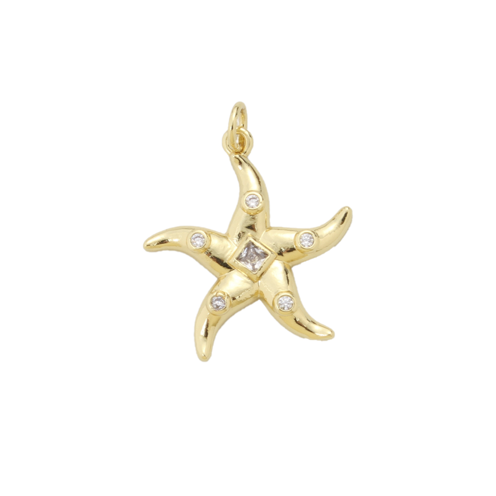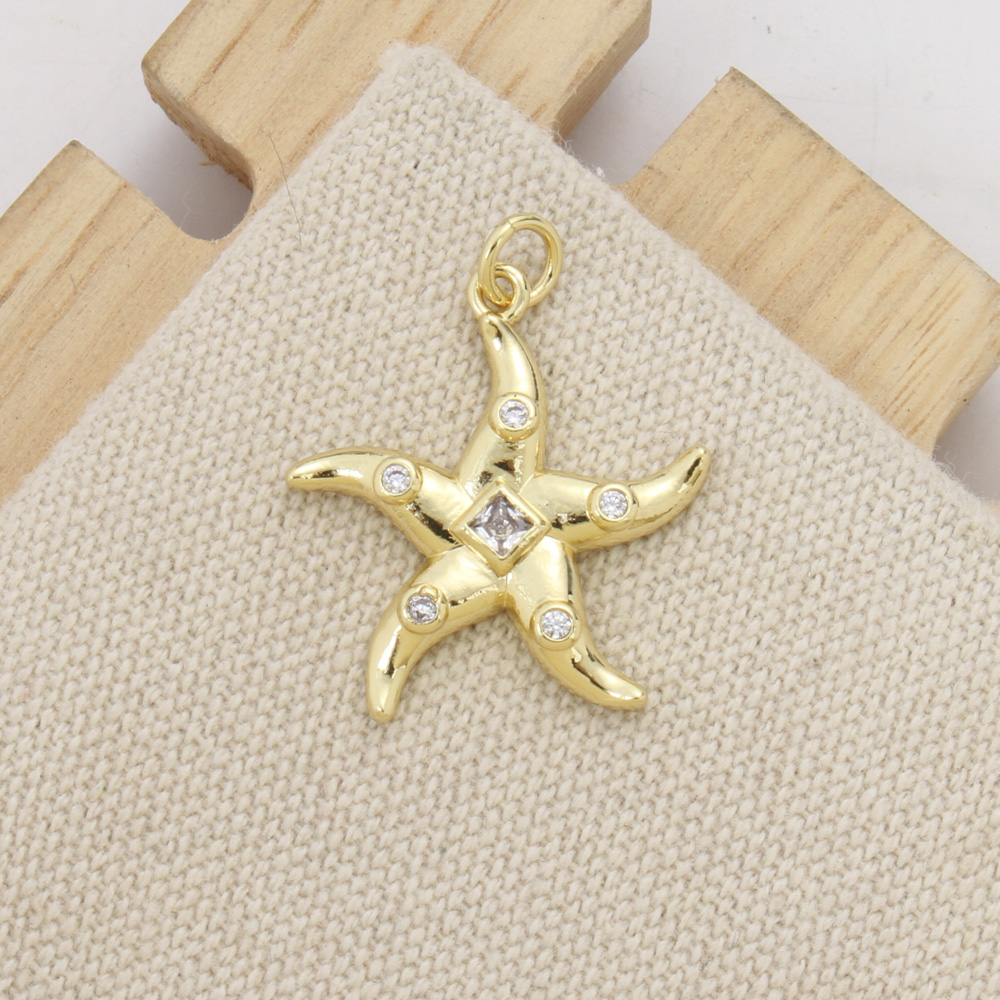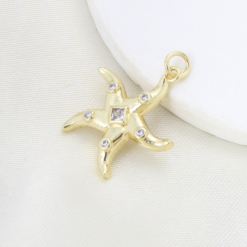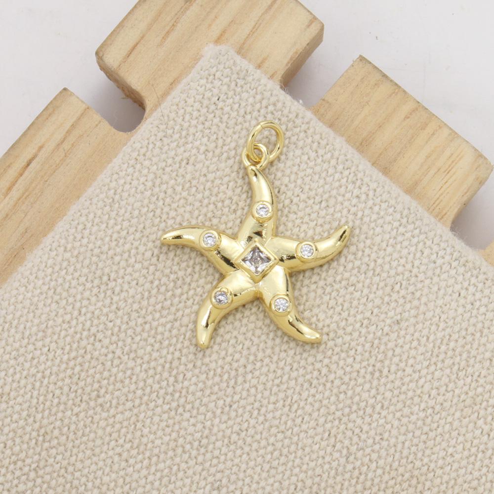 Cubique Pendentif en laiton zircon pavent, étoile de mer, Placage, DIY & pavé de micro zircon, plus de couleurs à choisir, protéger l'environnement, sans nickel, plomb et cadmium, 22.60x20x3mm, Vendu par PC