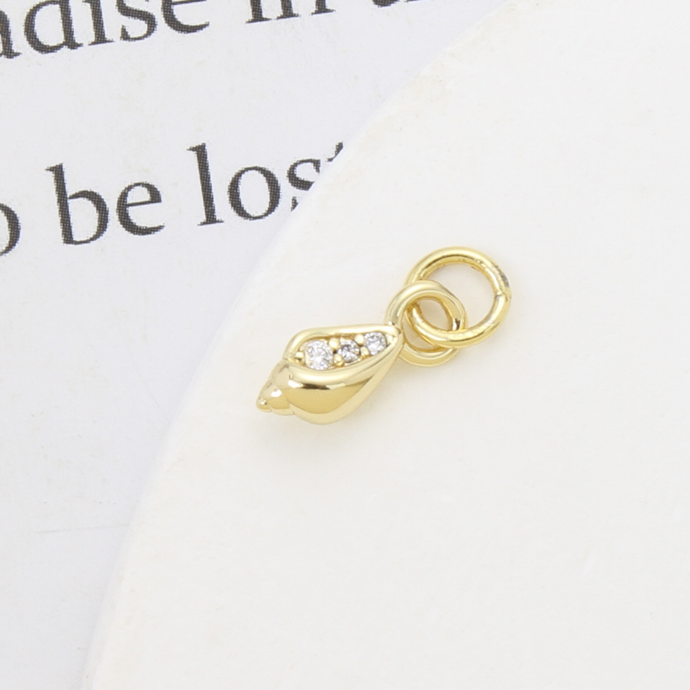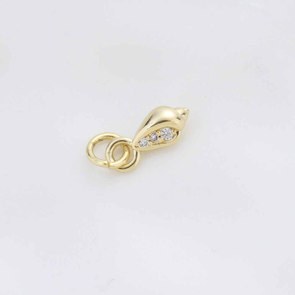 Cubique Pendentif en laiton zircon pavent, conque, Placage, DIY & pavé de micro zircon, doré, protéger l'environnement, sans nickel, plomb et cadmium, 10.70x4.40x3.40mm, Vendu par PC