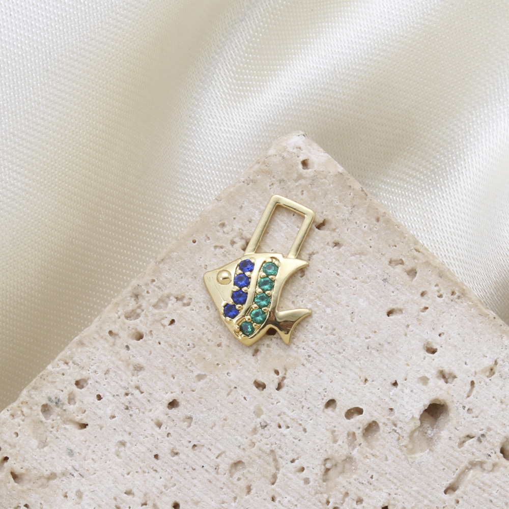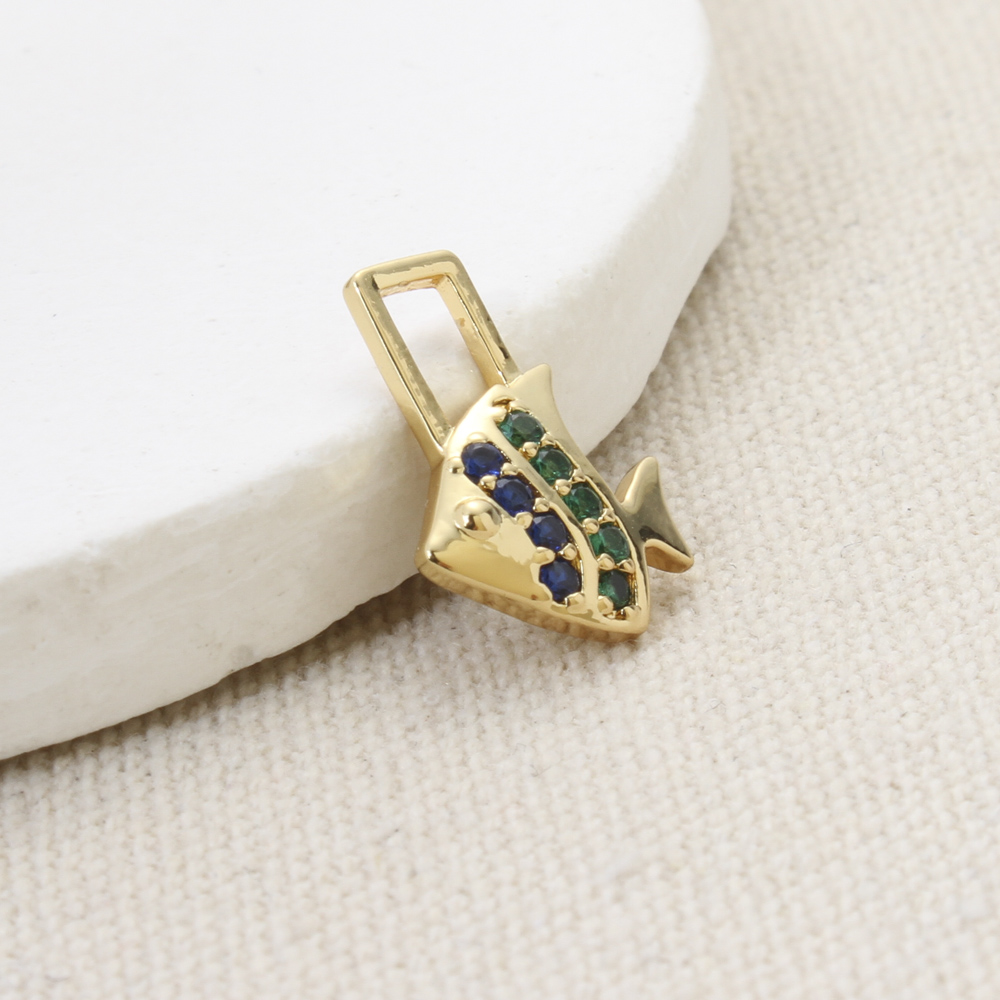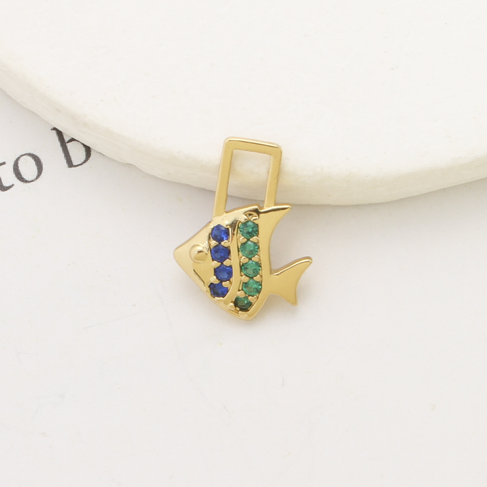 Cubique Pendentif en laiton zircon pavent, poisson, Placage, DIY & pavé de micro zircon, plus de couleurs à choisir, protéger l'environnement, sans nickel, plomb et cadmium, 15x11x2mm, Vendu par PC