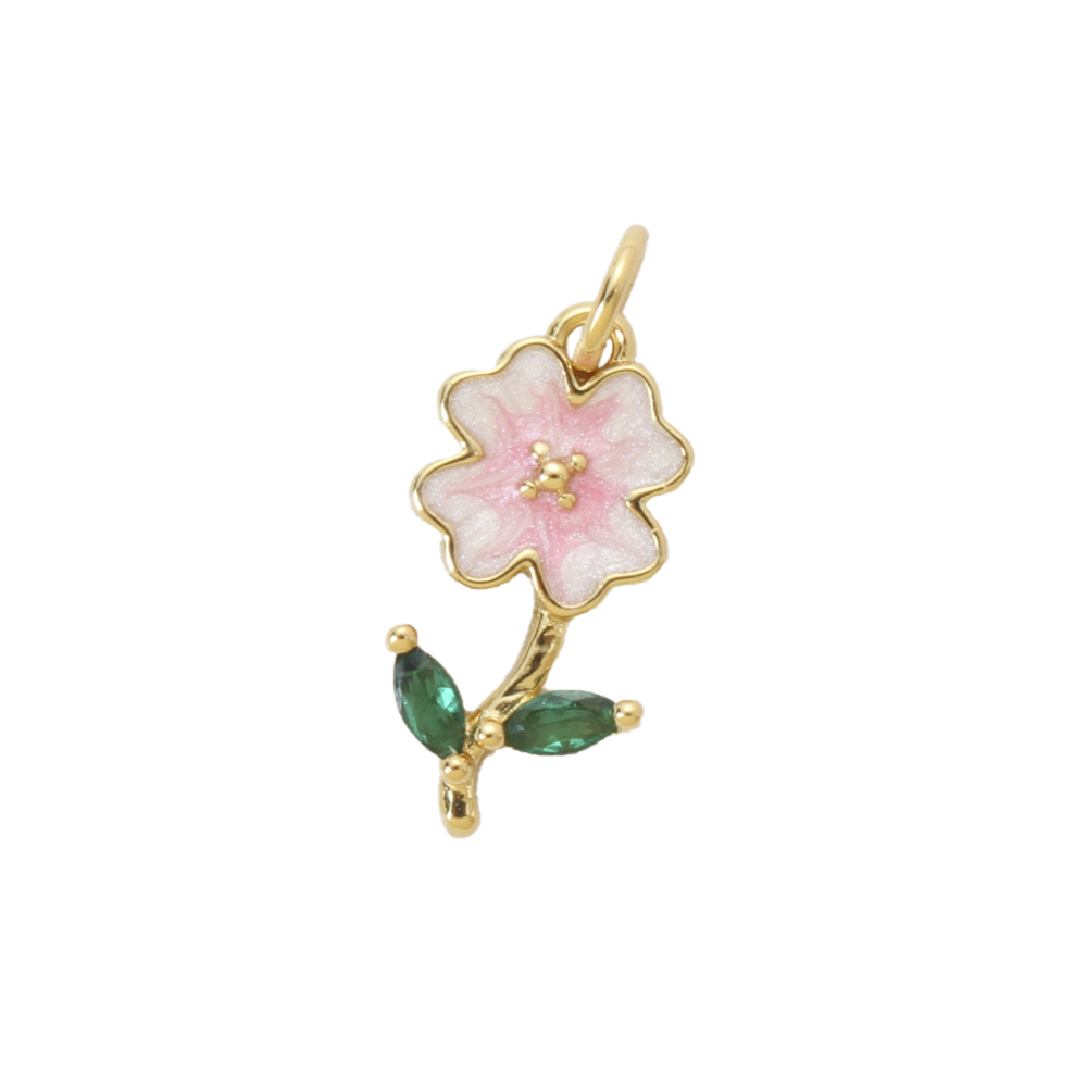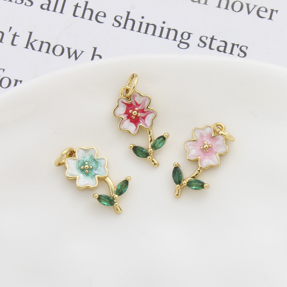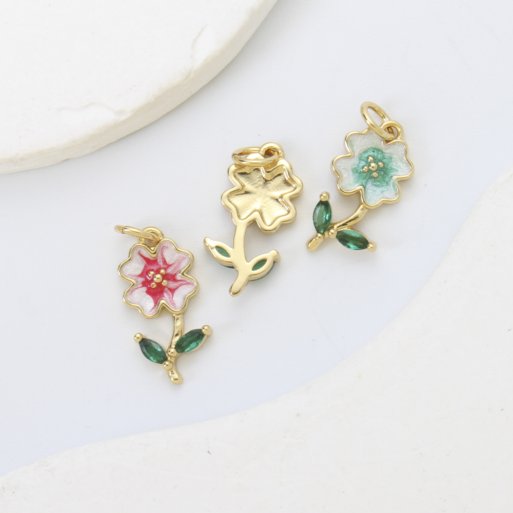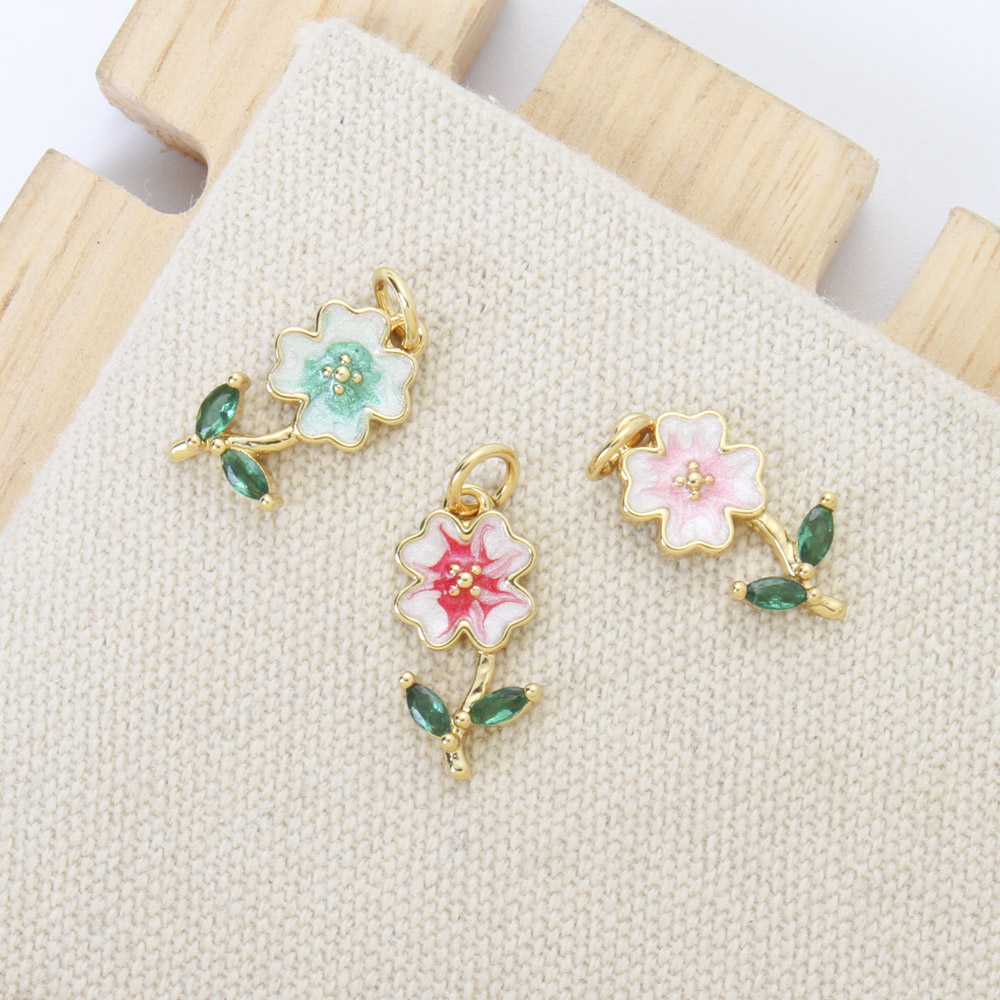 Cubique Pendentif en laiton zircon pavent, fleur, Placage, DIY & pavé de micro zircon & émail, plus de couleurs à choisir, 17x8.50x2.70mm, Vendu par PC