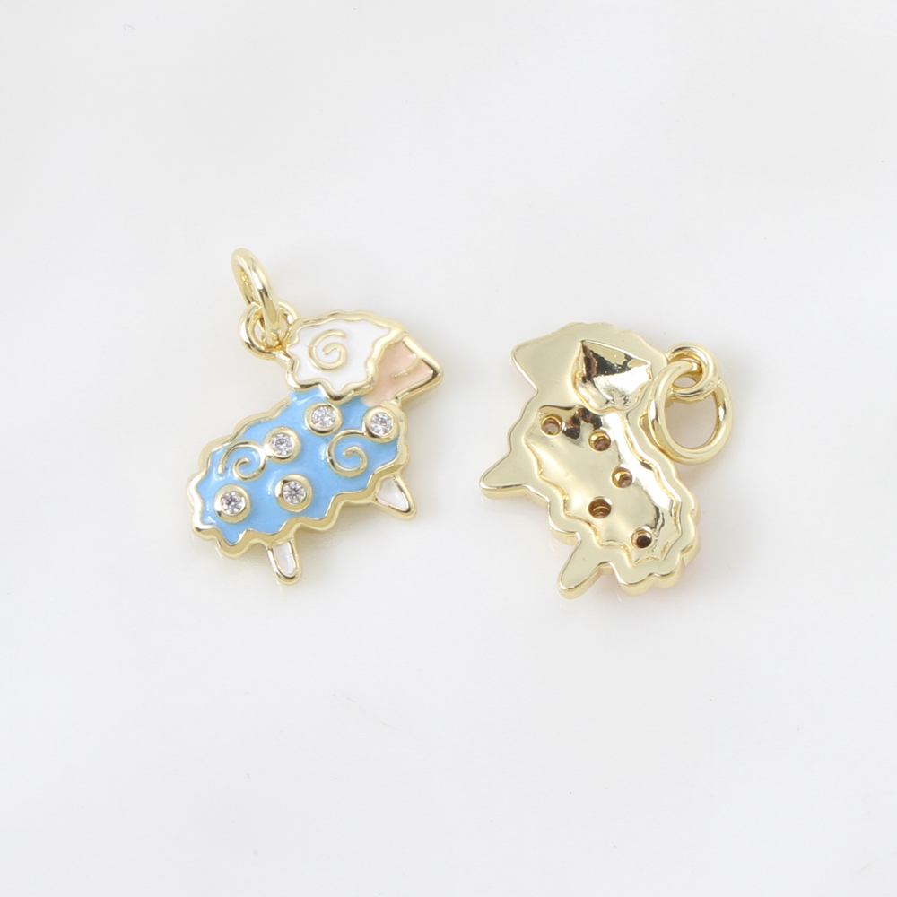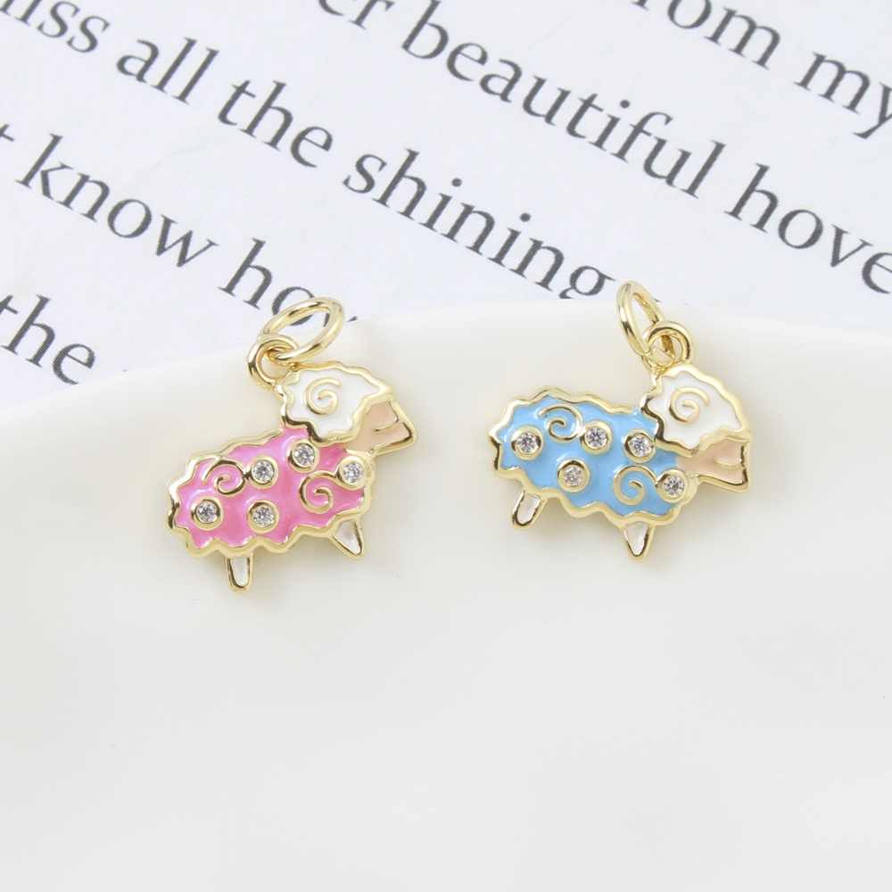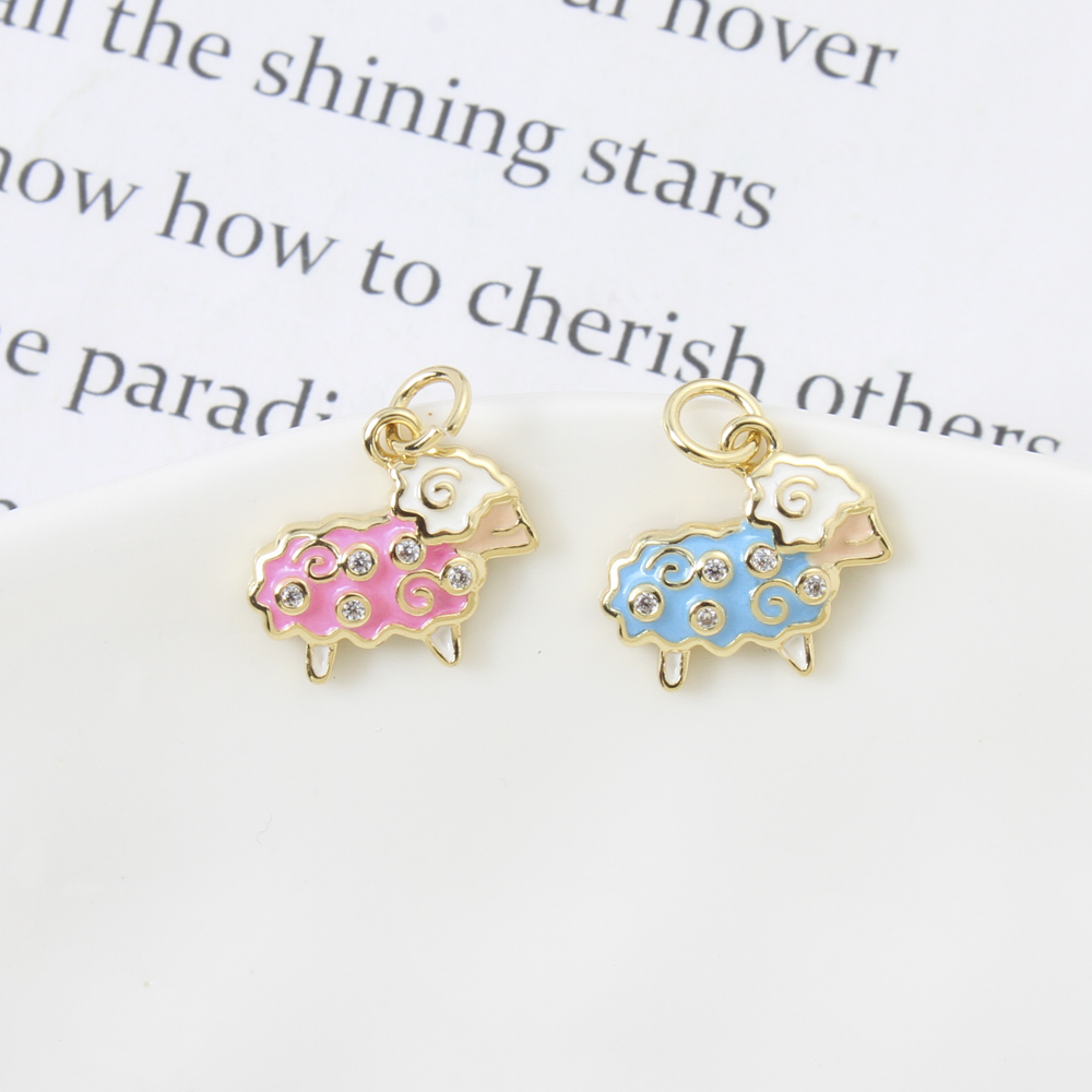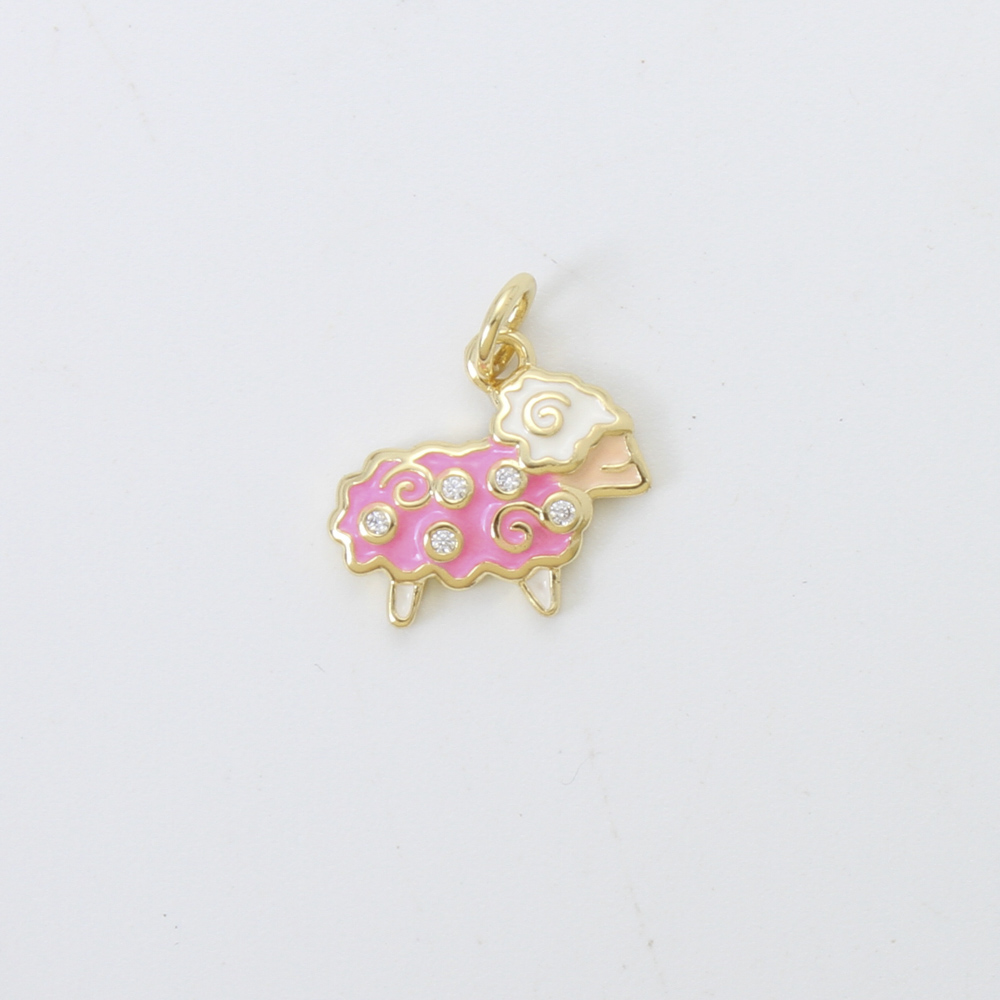 Cubique Pendentif en laiton zircon pavent, mouton, Placage, DIY & pavé de micro zircon & émail, plus de couleurs à choisir, 12.70x14x2.40mm, Vendu par PC