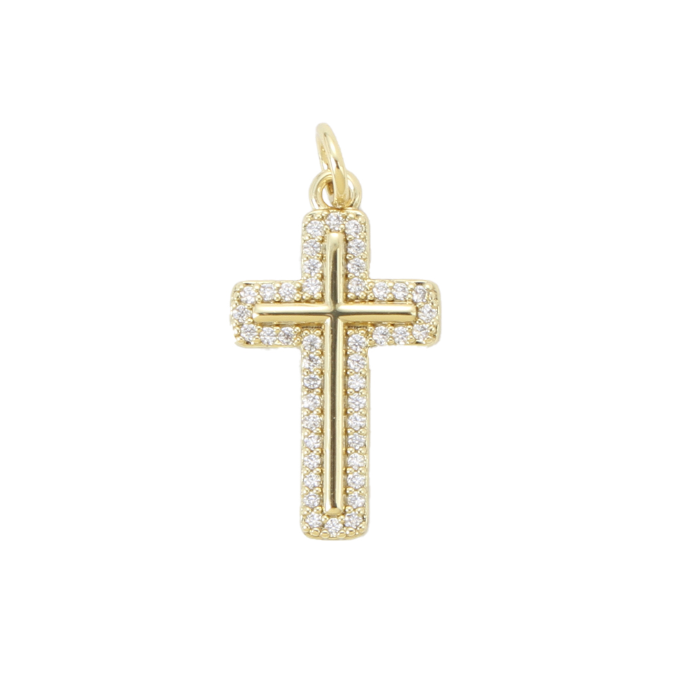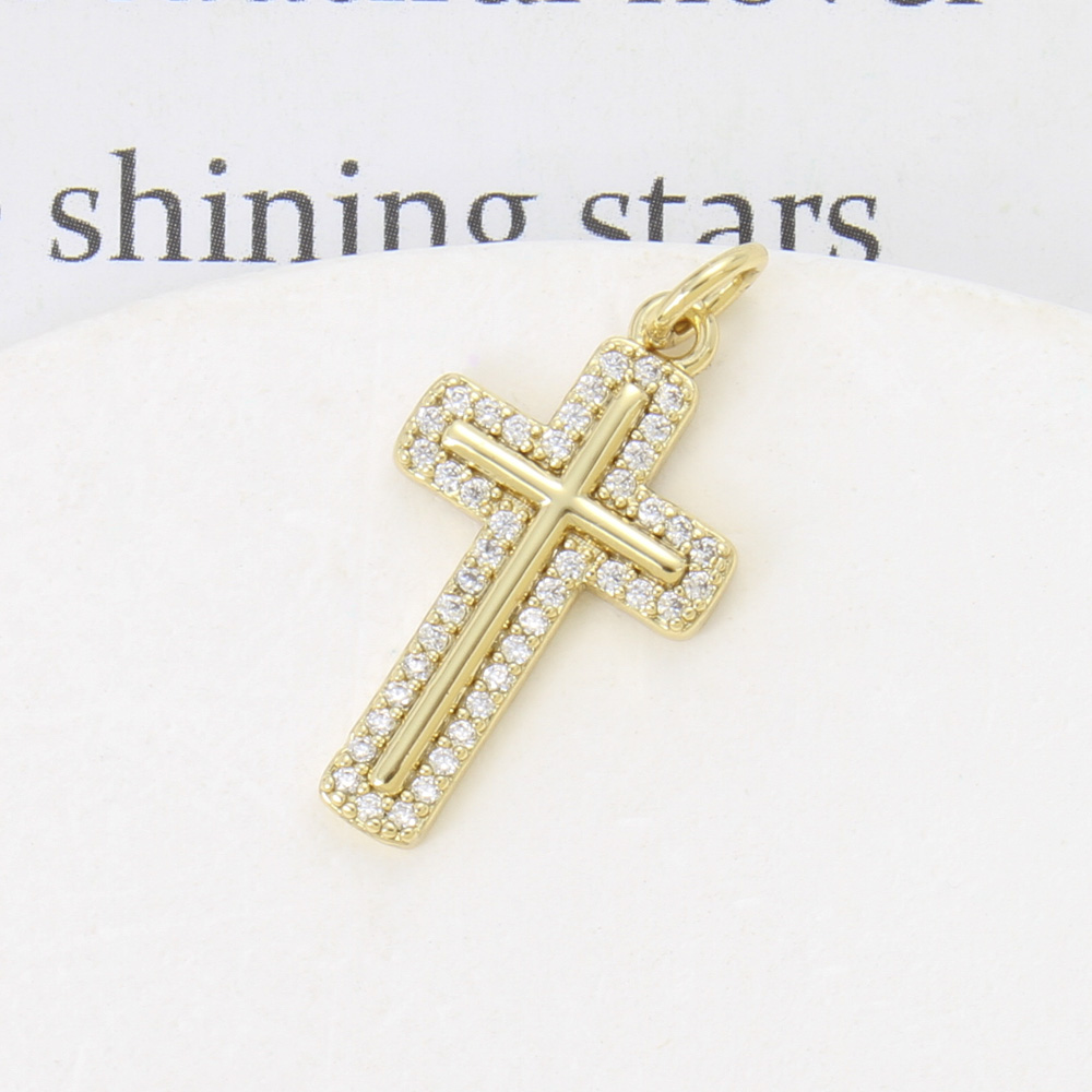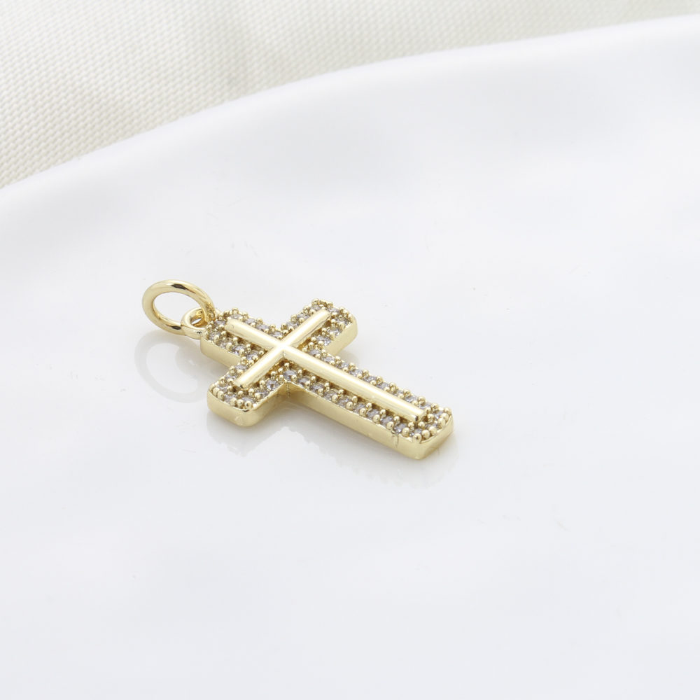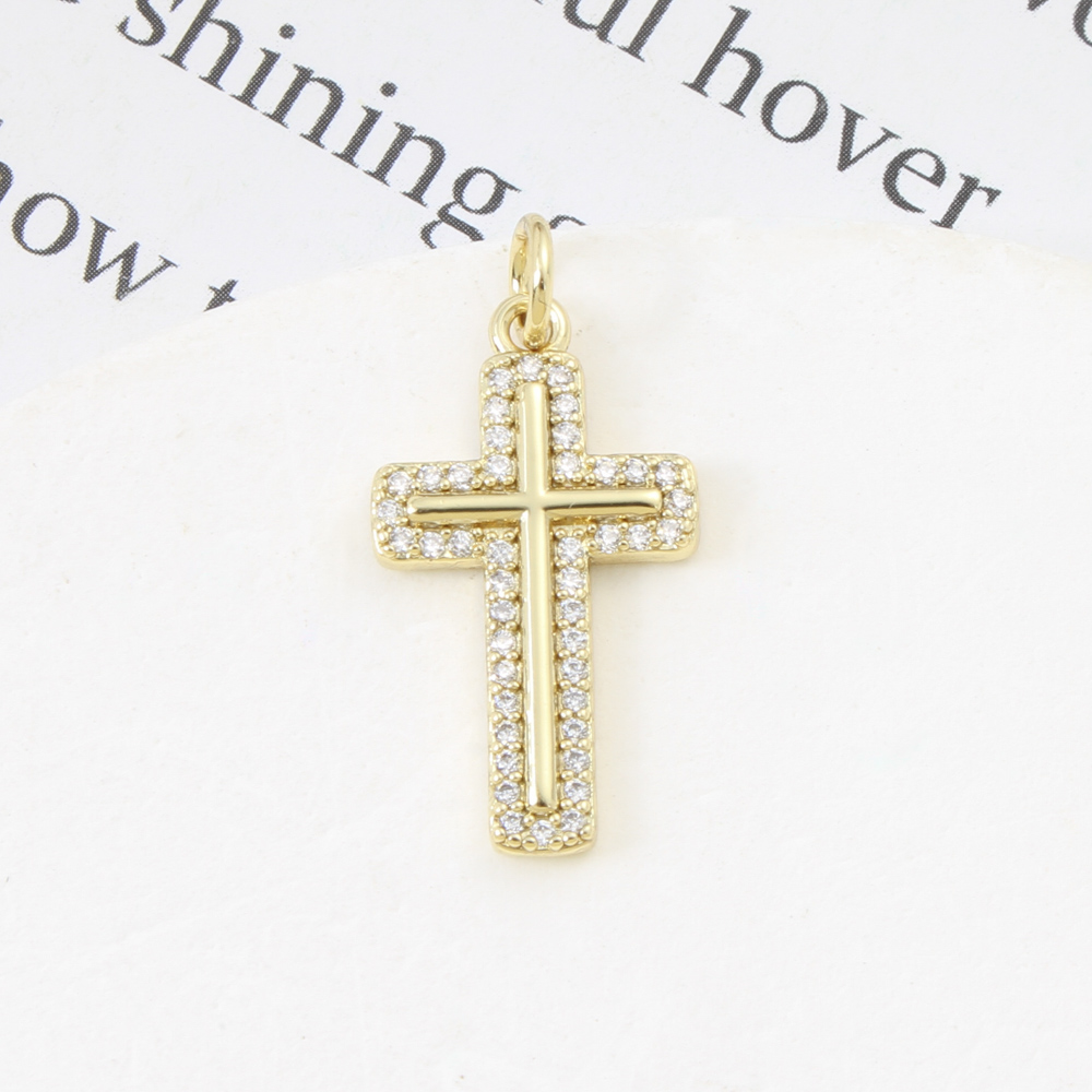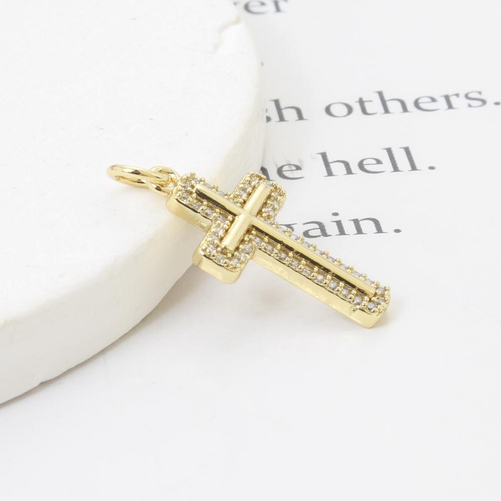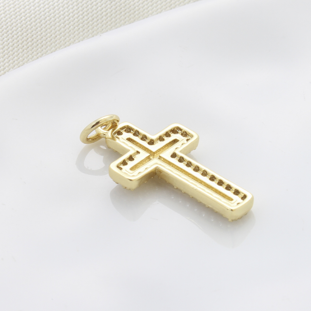 Cubique Pendentif en laiton zircon pavent, croix, Placage, DIY & pavé de micro zircon, doré, 21x12x2.20mm, Vendu par PC