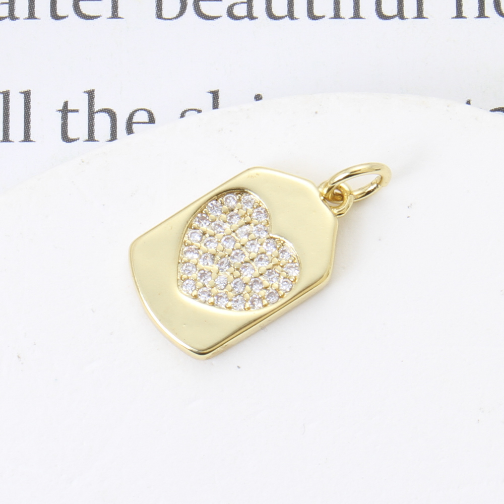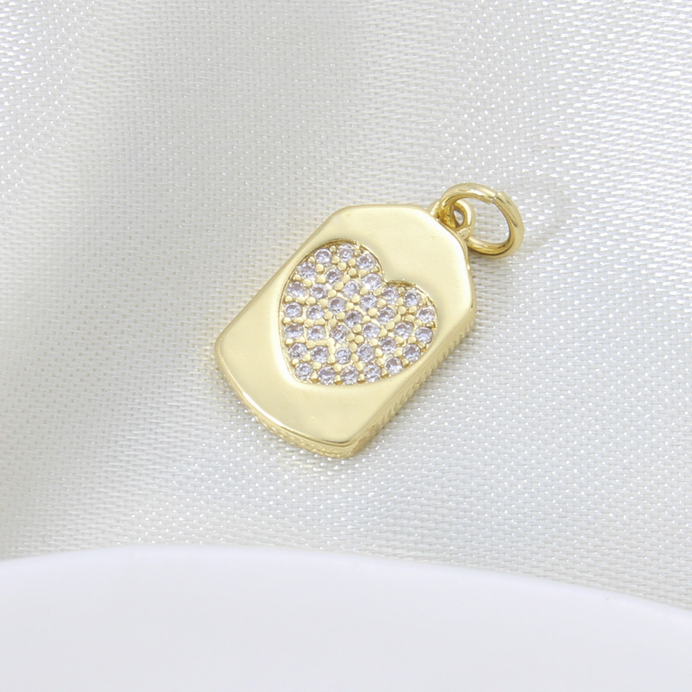 Cubique Pendentif en laiton zircon pavent, coeur, Placage de couleur d'or, DIY & pavé de micro zircon & émail, plus de couleurs à choisir, 9x9x2mm, Vendu par PC