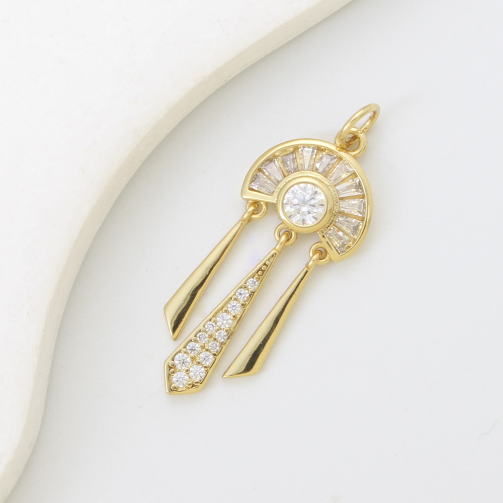 Cubique Pendentif en laiton zircon pavent, Attrapeur de rêves, Placage, DIY & pavé de micro zircon, doré, 28x11.80x3.40mm, Vendu par PC