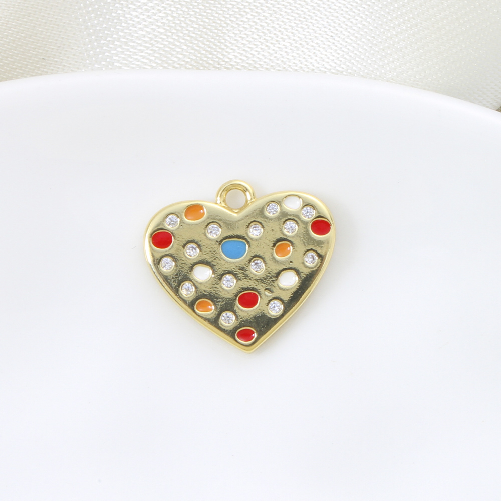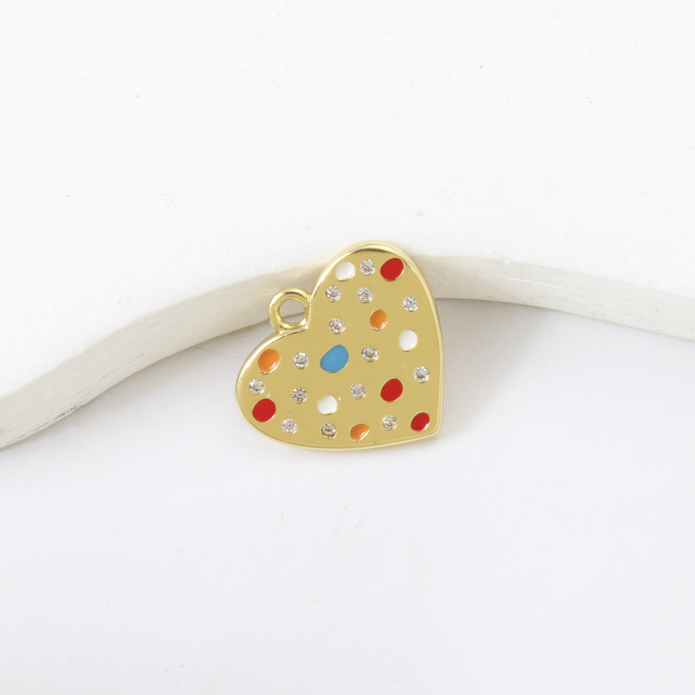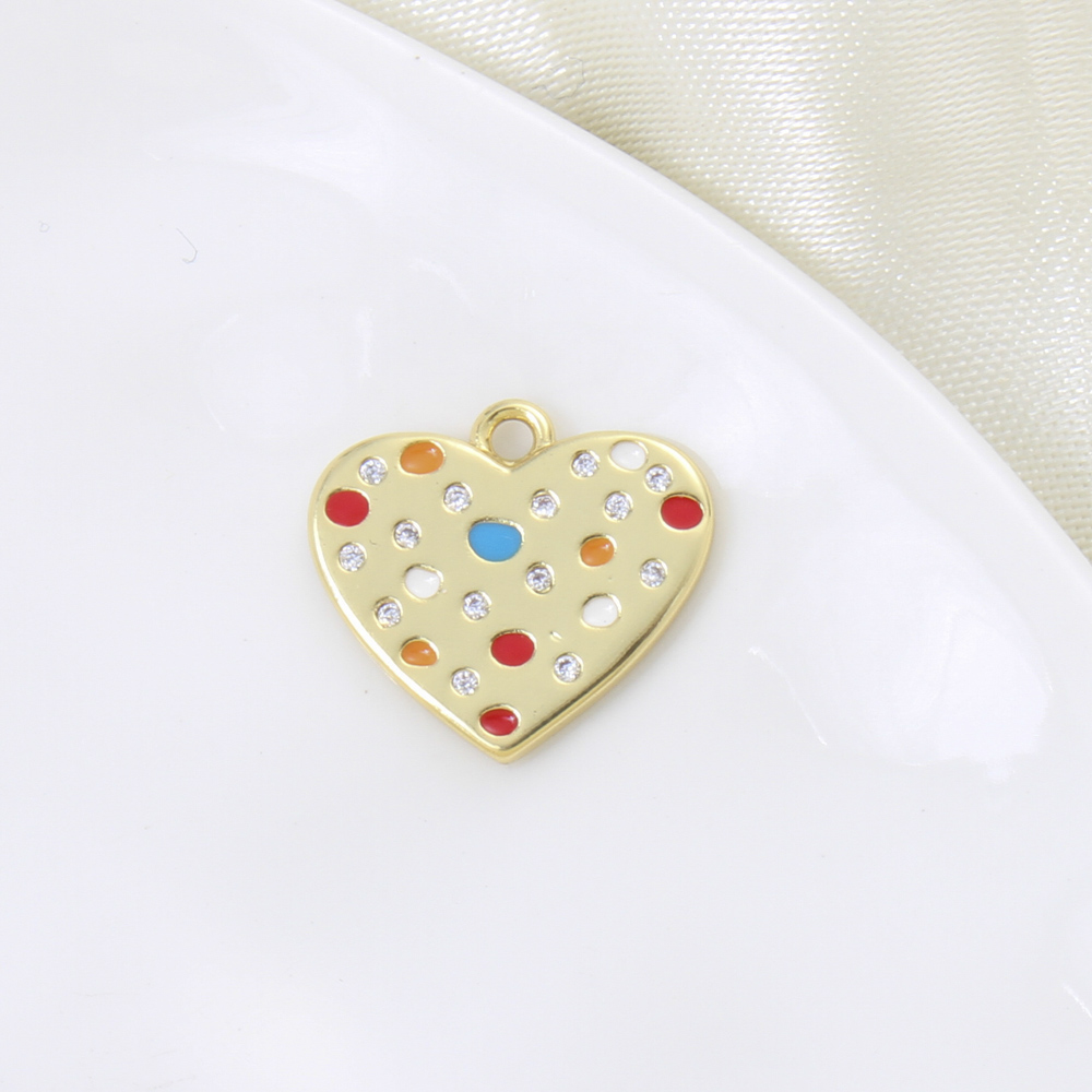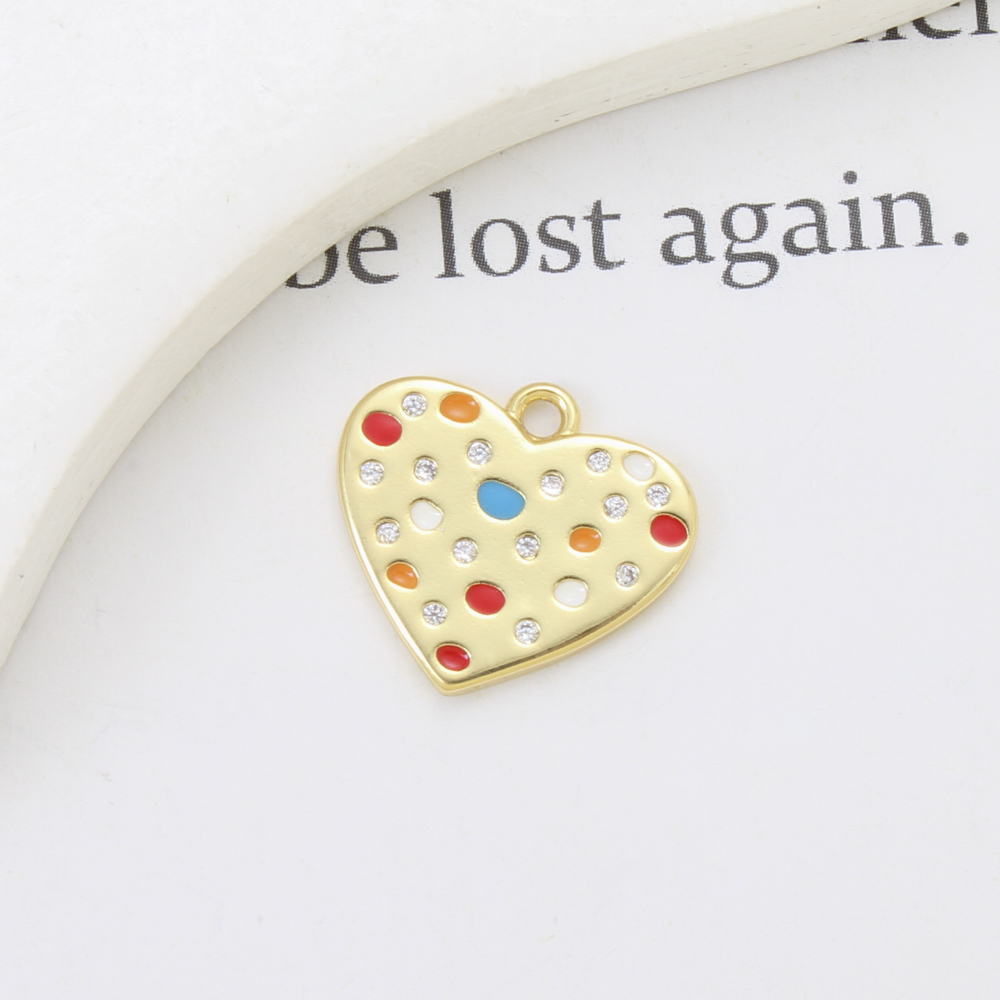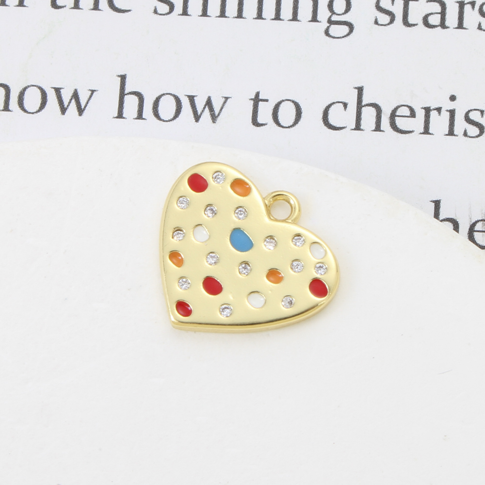 Cubique Pendentif en laiton zircon pavent, coeur, Placage de couleur d'or, DIY & pavé de micro zircon & émail, plus de couleurs à choisir, 9x9x2mm, Vendu par PC