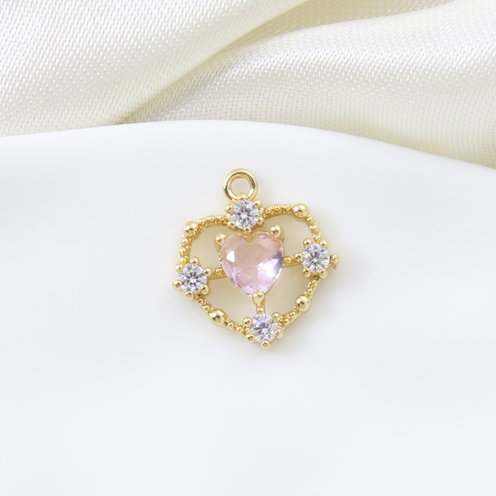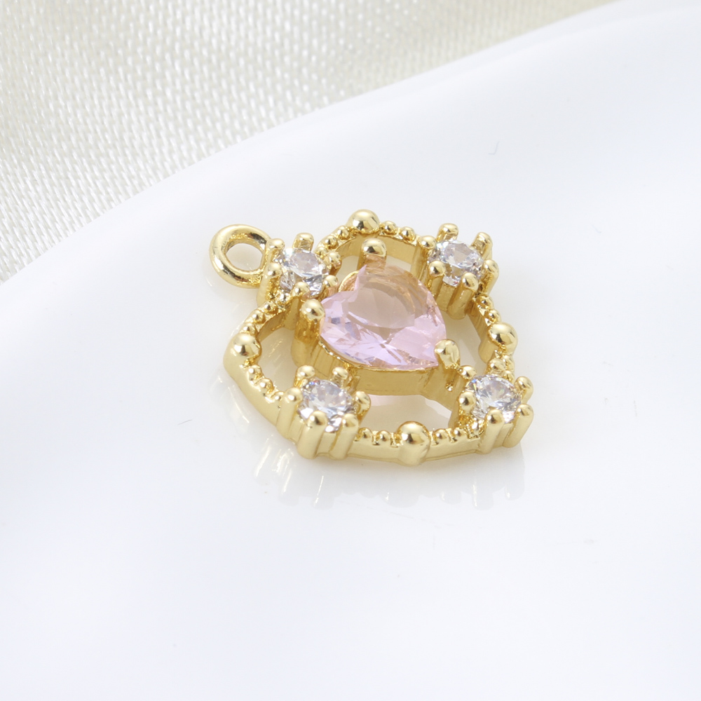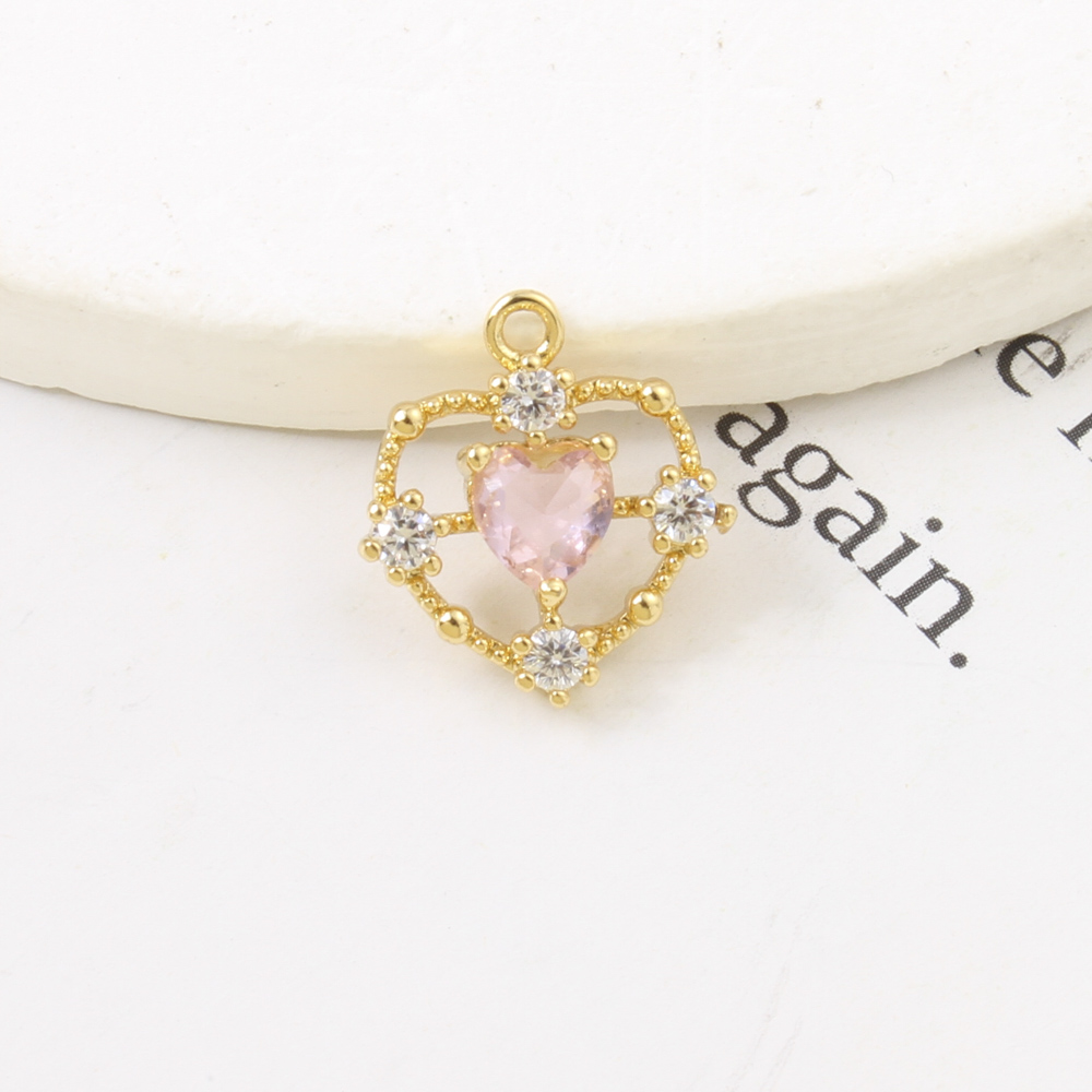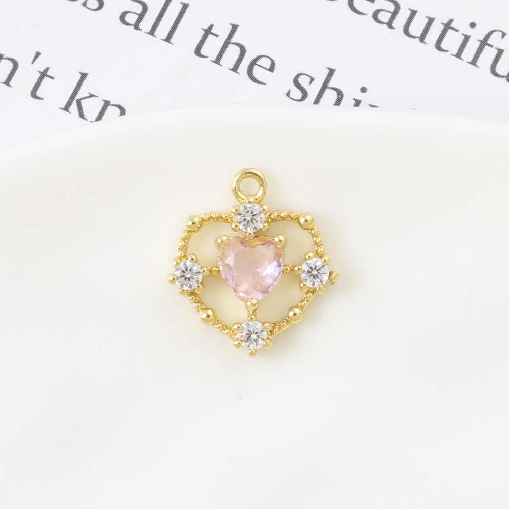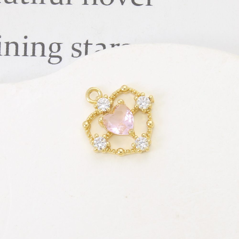 Cubique Pendentif en laiton zircon pavent, coeur, Placage de couleur d'or, DIY & pavé de micro zircon & émail, plus de couleurs à choisir, 9x9x2mm, Vendu par PC