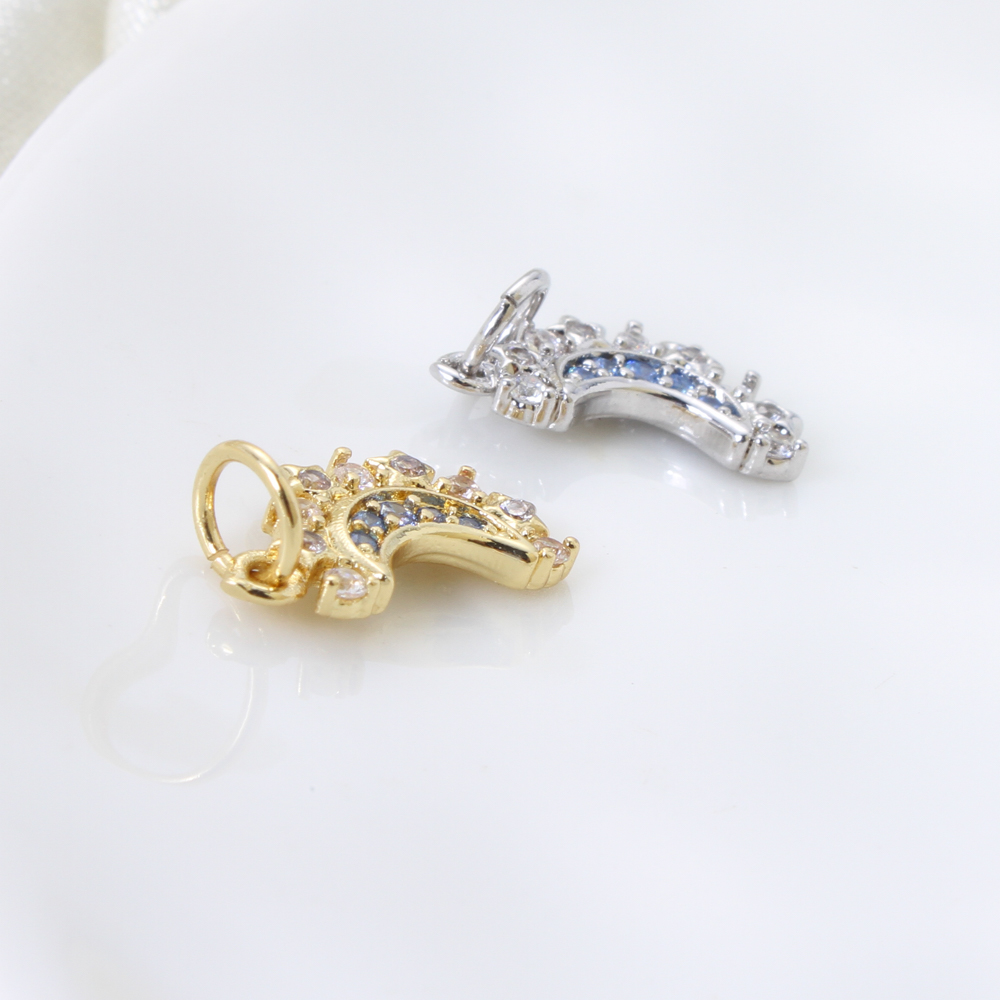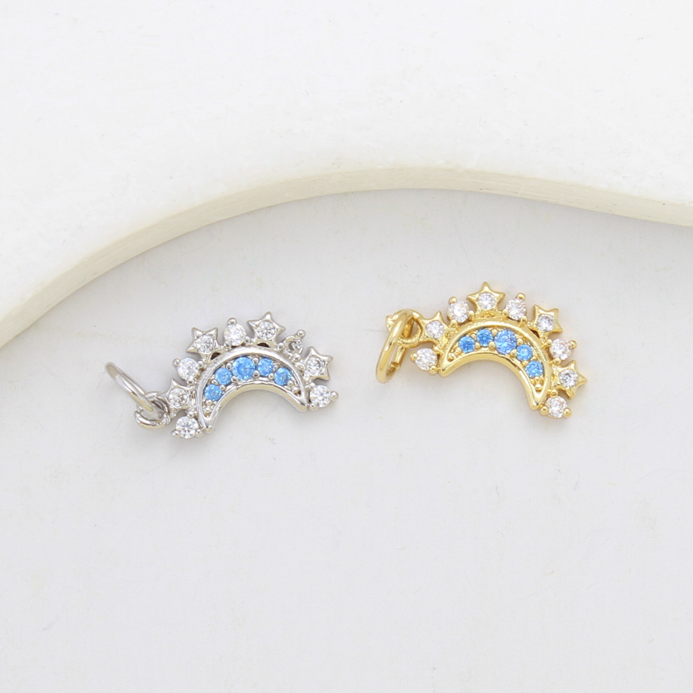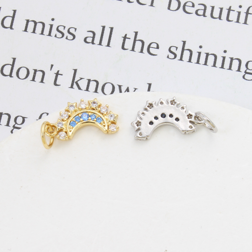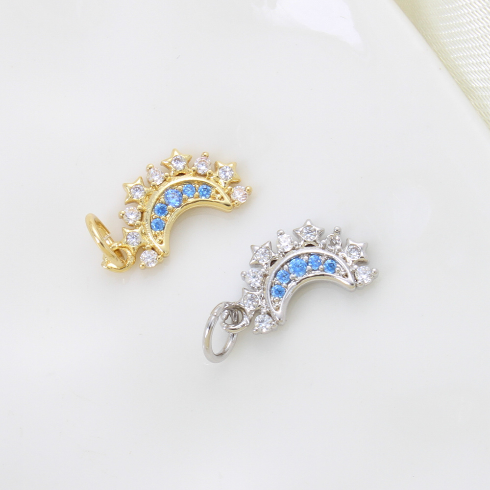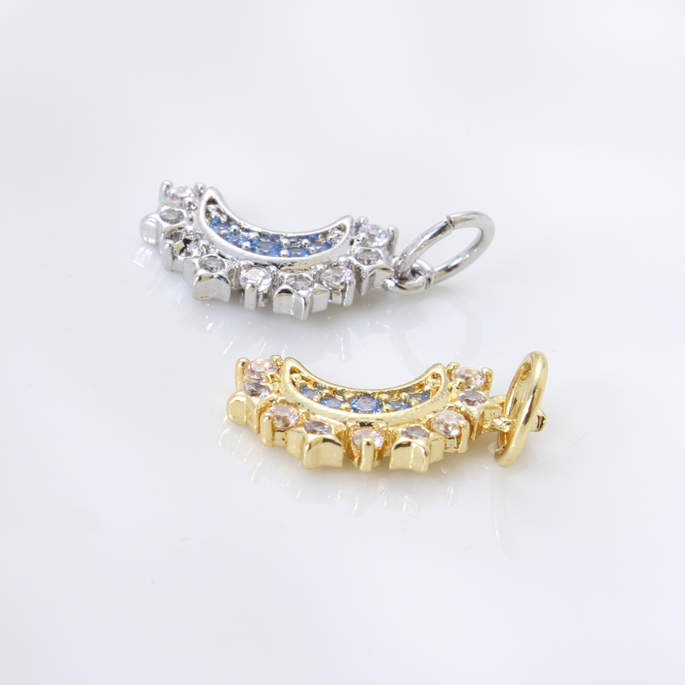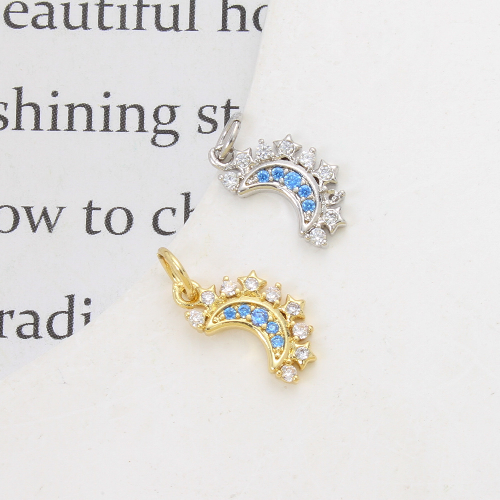 Cubique Pendentif en laiton zircon pavent, Lune et Etoile, Placage, DIY & pavé de micro zircon, plus de couleurs à choisir, 13.50x7x1.60mm, Vendu par PC