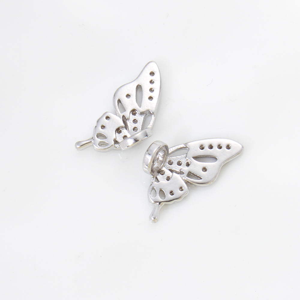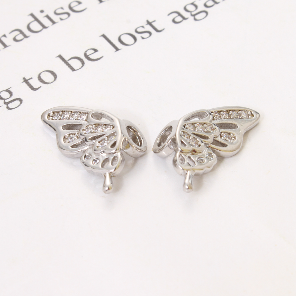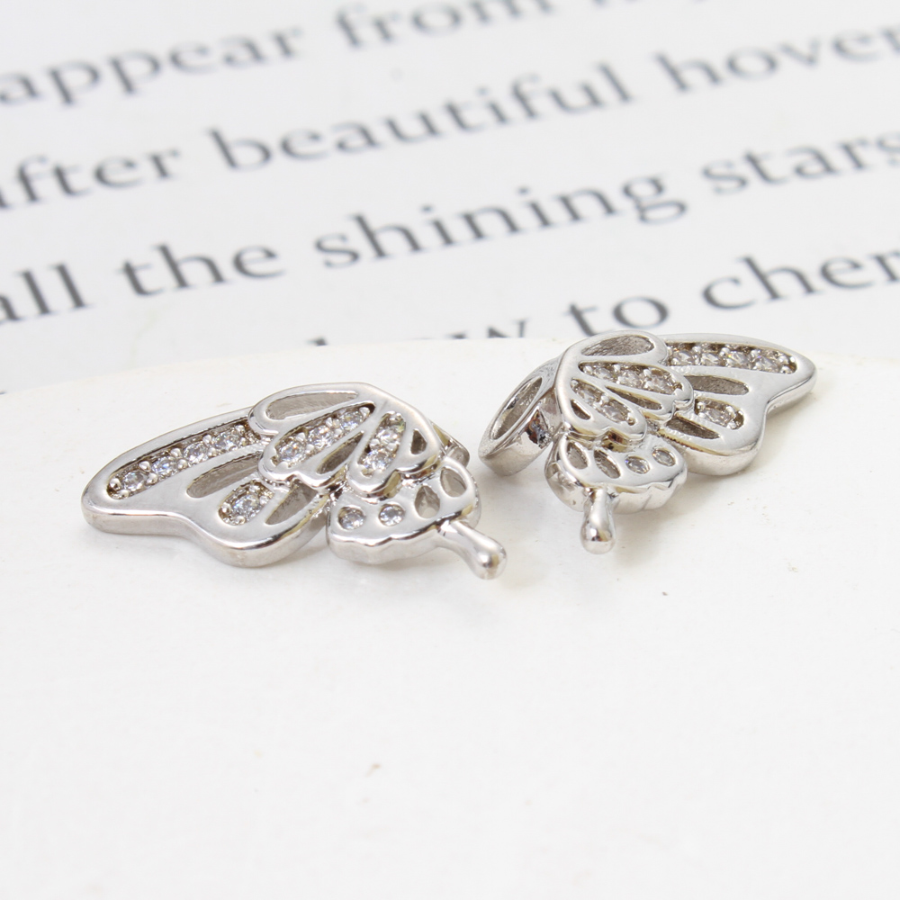 Cubique Pendentif en laiton zircon pavent, papillon, Placage, DIY & pavé de micro zircon, argent, protéger l'environnement, sans nickel, plomb et cadmium, 9x16.60x2mm, Vendu par PC