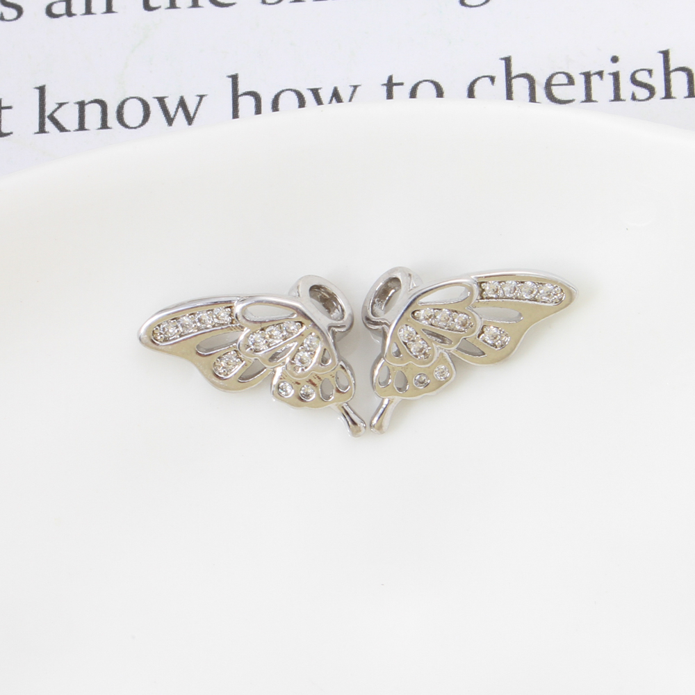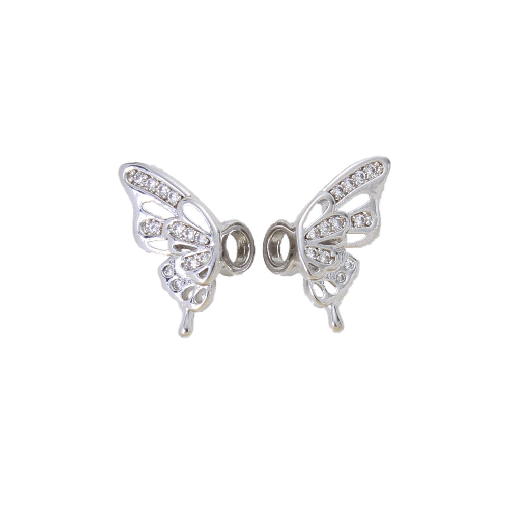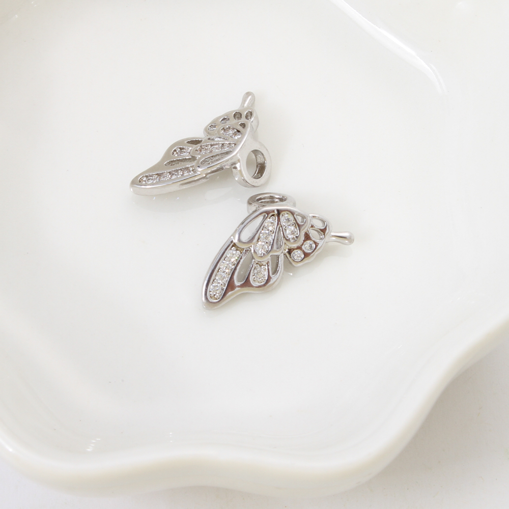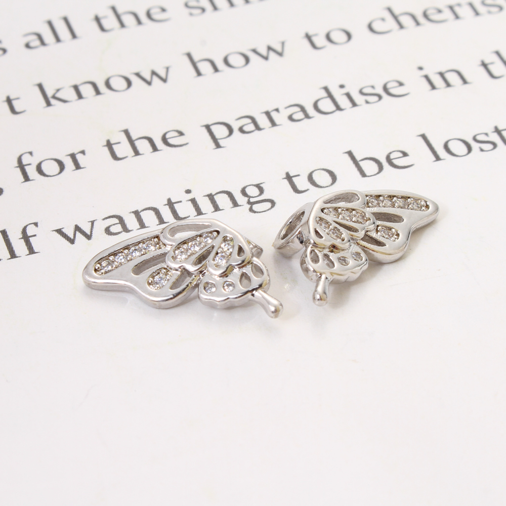 Cubique Pendentif en laiton zircon pavent, papillon, Placage, DIY & pavé de micro zircon, argent, protéger l'environnement, sans nickel, plomb et cadmium, 9x16.60x2mm, Vendu par PC