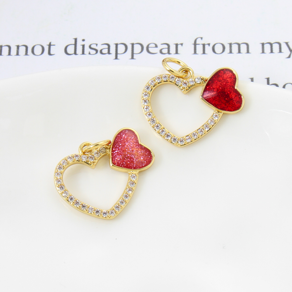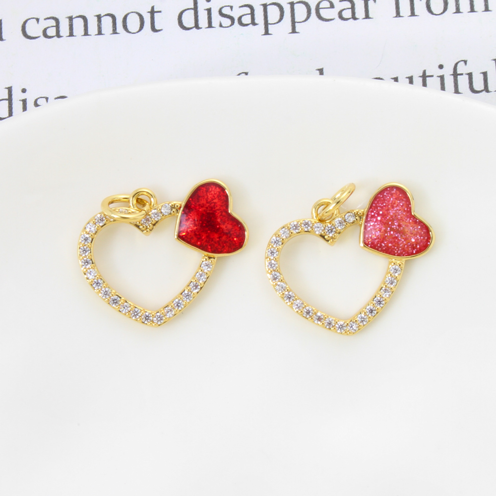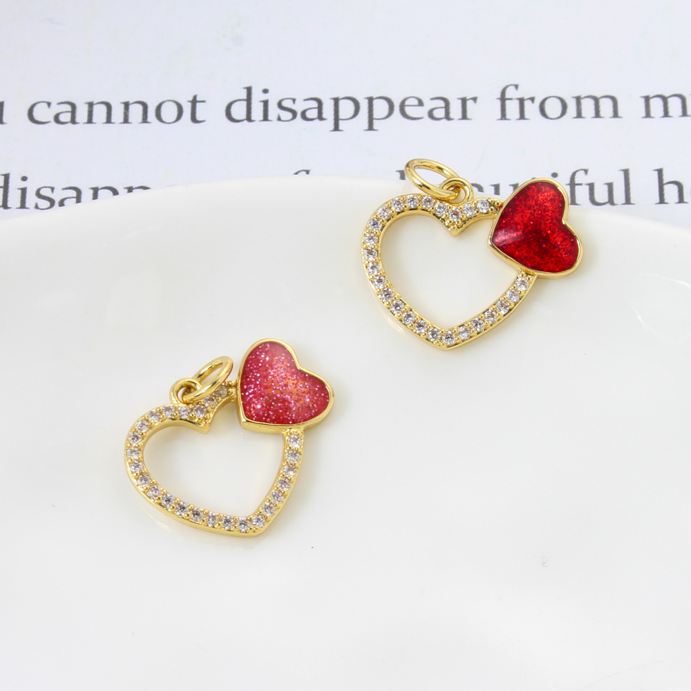 Cubique Pendentif en laiton zircon pavent, coeur, Placage de couleur d'or, DIY & pavé de micro zircon & émail, plus de couleurs à choisir, 9x9x2mm, Vendu par PC