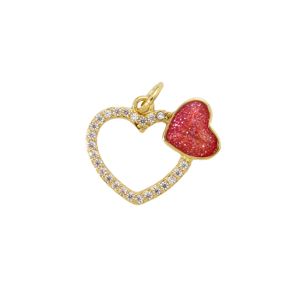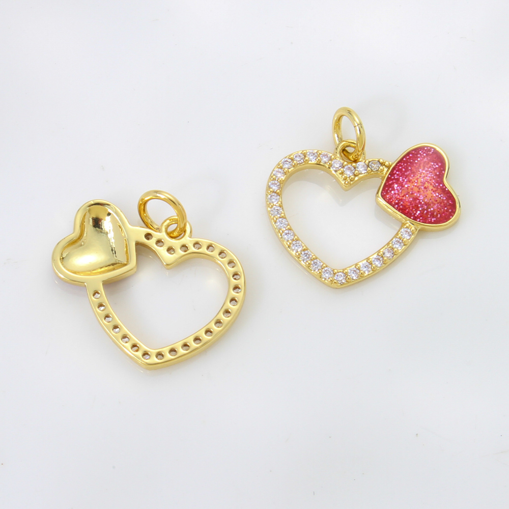 Cubique Pendentif en laiton zircon pavent, coeur, Placage, DIY & pavé de micro zircon & émail, plus de couleurs à choisir, protéger l'environnement, sans nickel, plomb et cadmium, 14.30x17.50x1.90mm, Vendu par PC