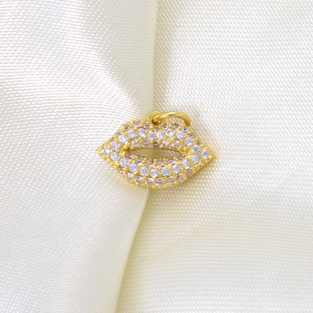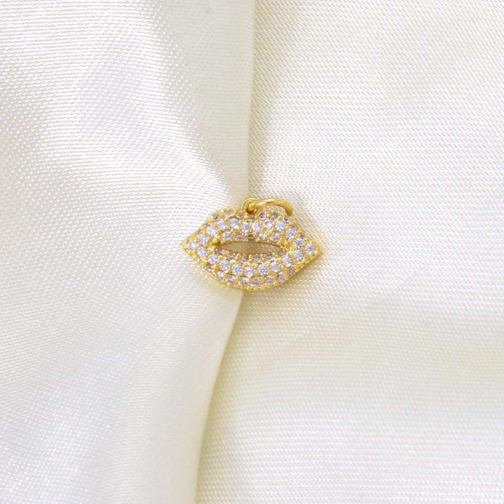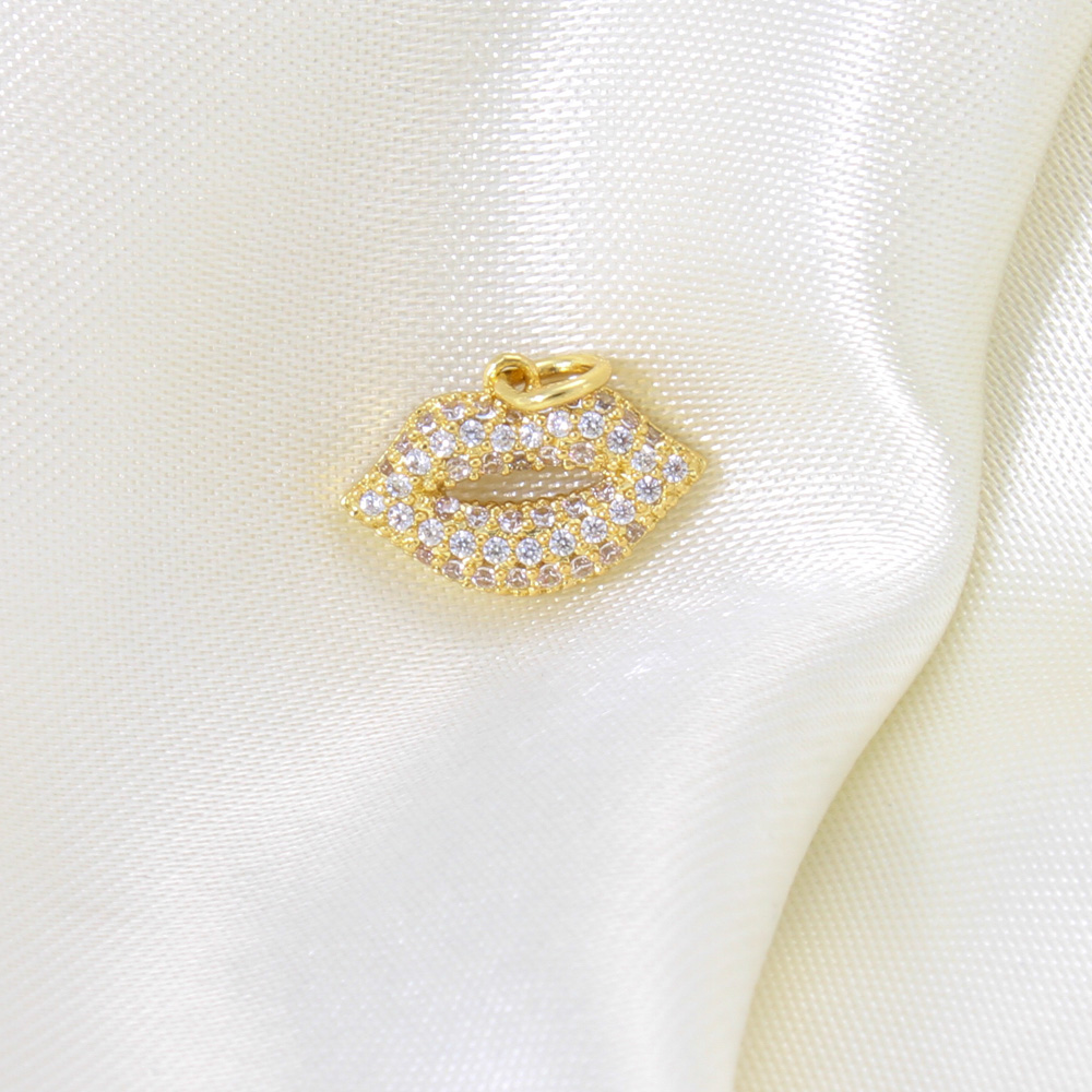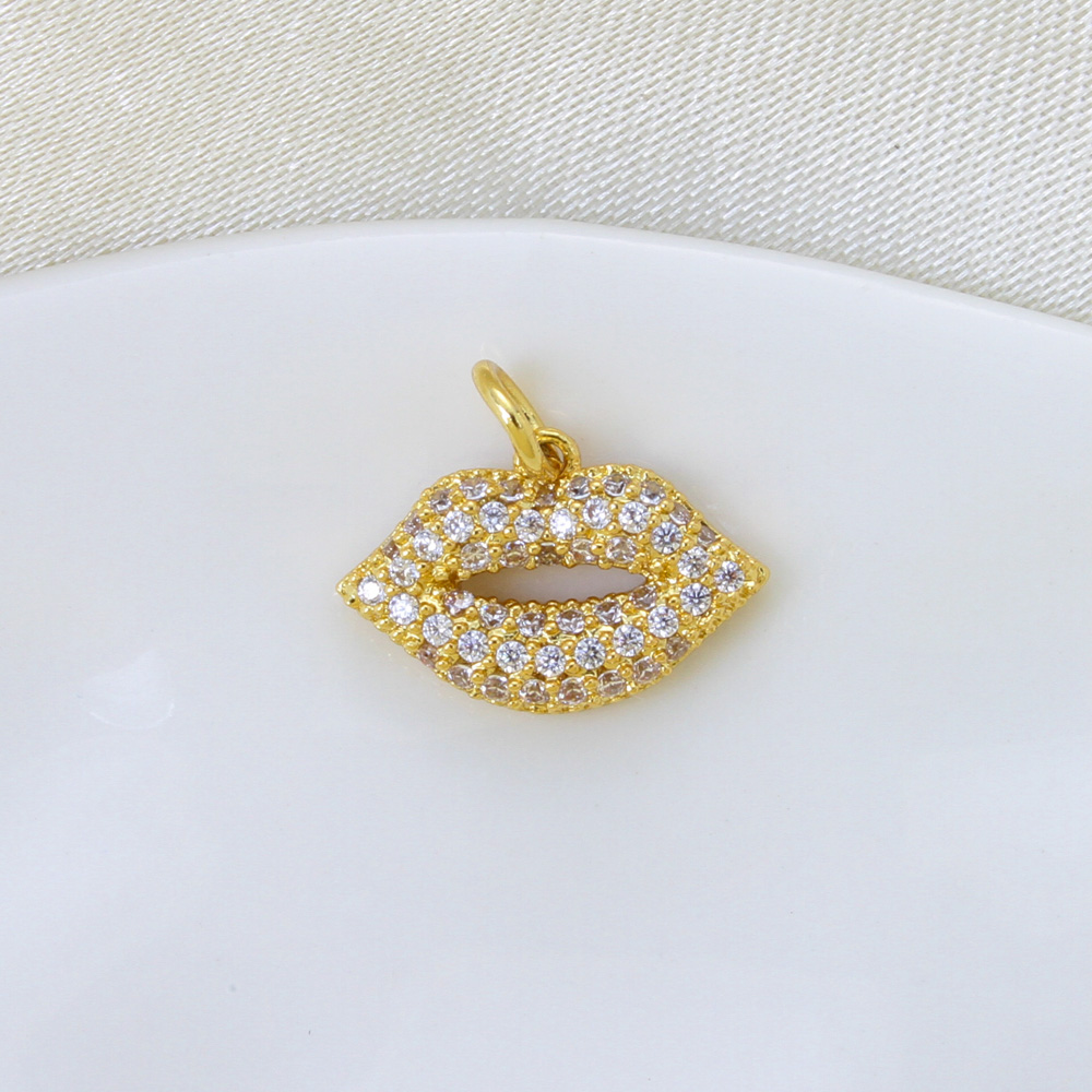 Cubique Pendentif en laiton zircon pavent, lèvre, Placage, DIY & pavé de micro zircon, doré, protéger l'environnement, sans nickel, plomb et cadmium, 10x15x3mm, Vendu par PC
