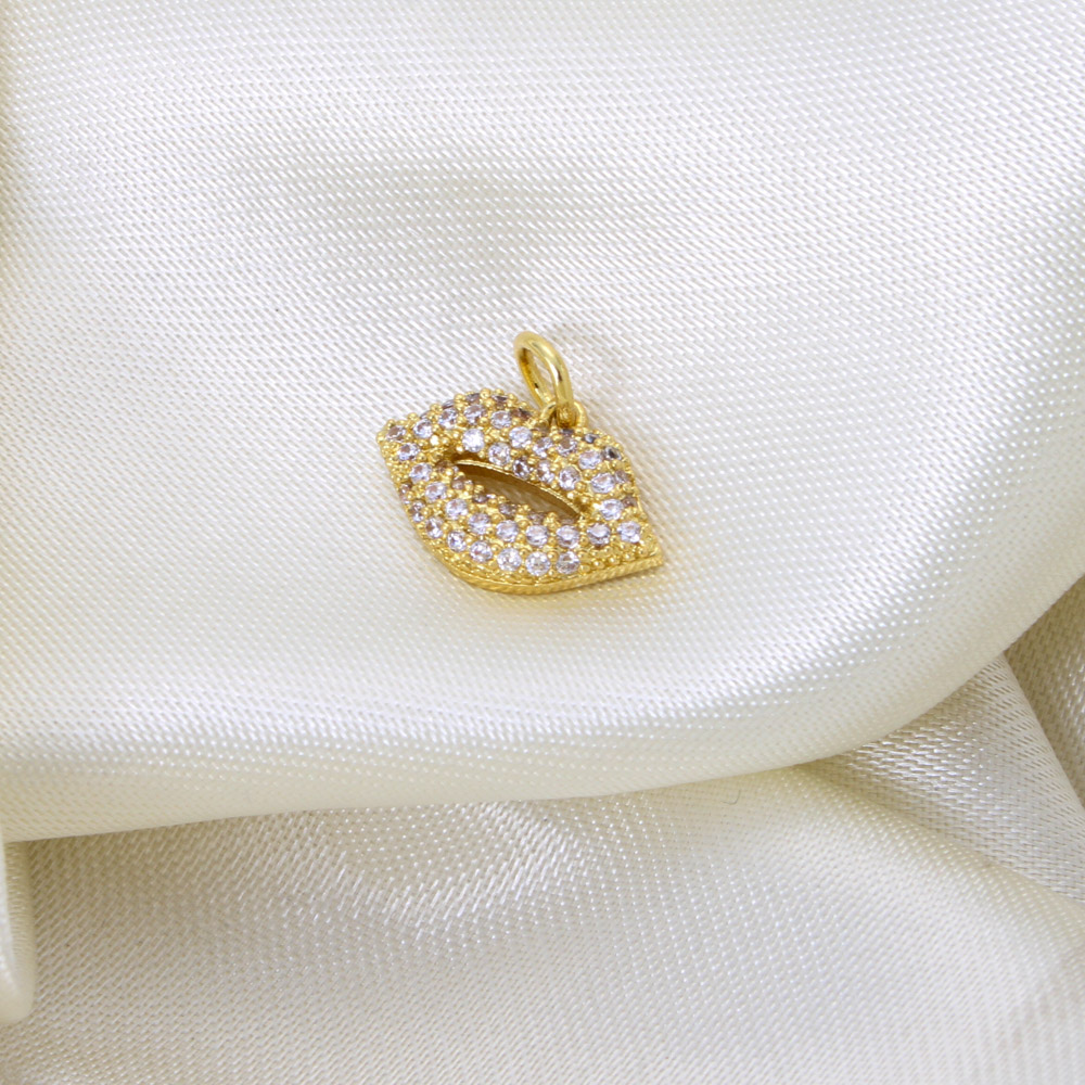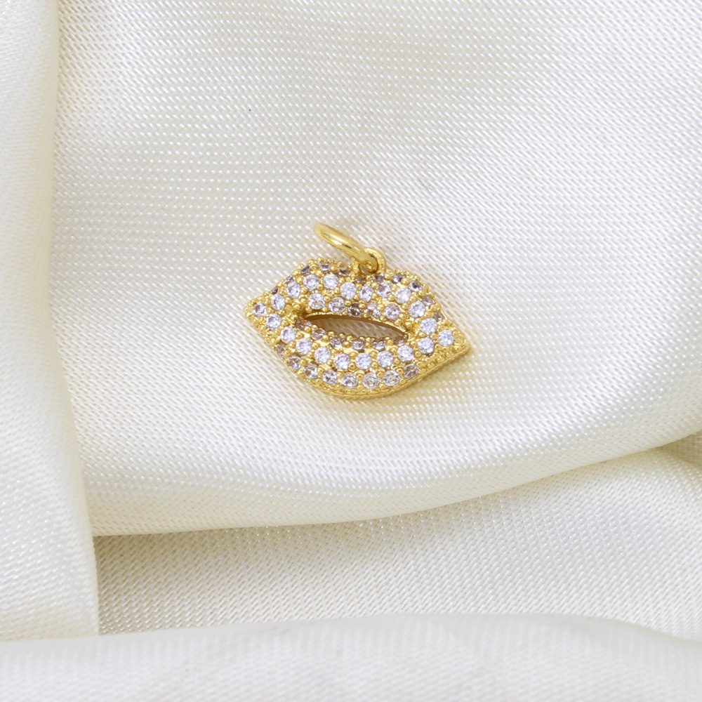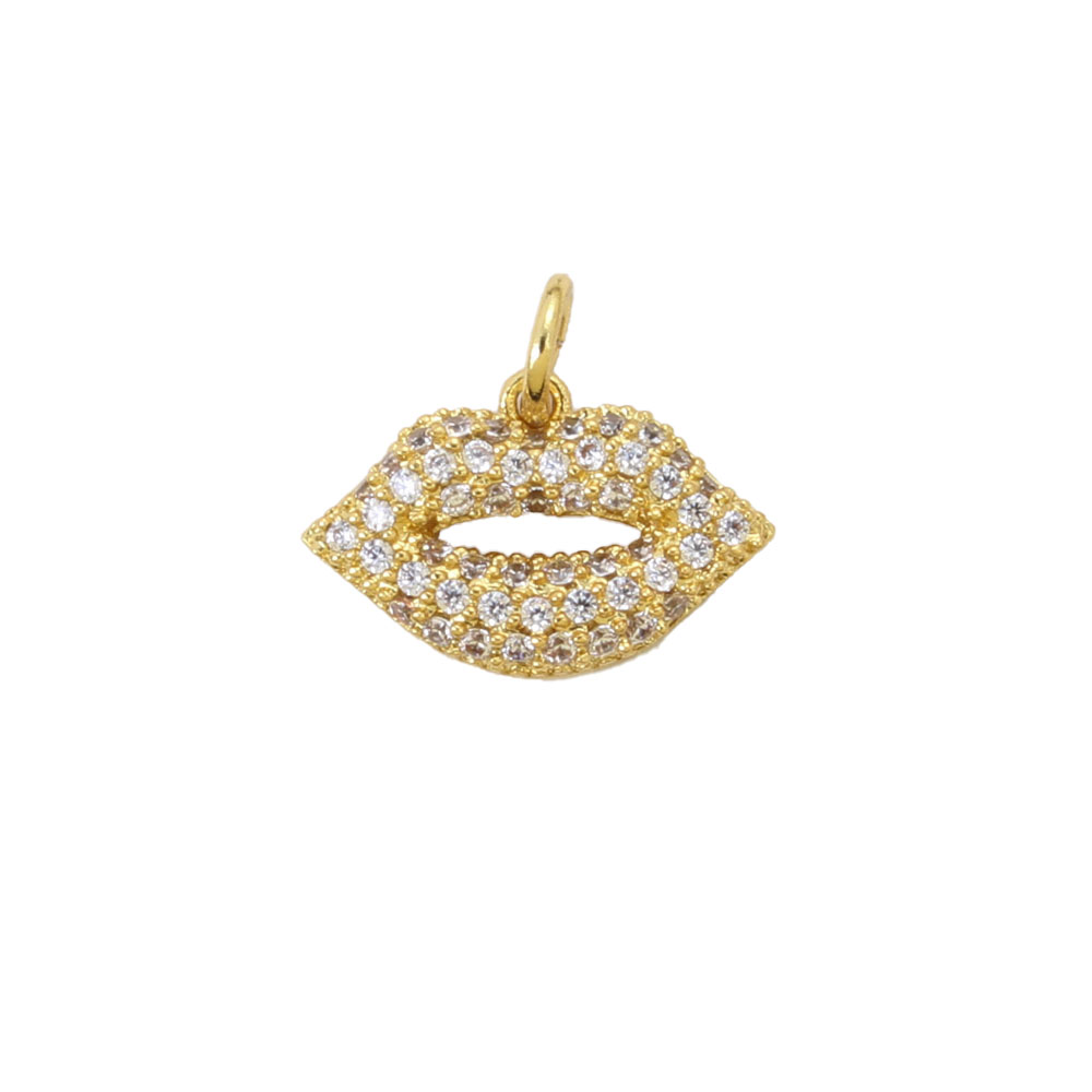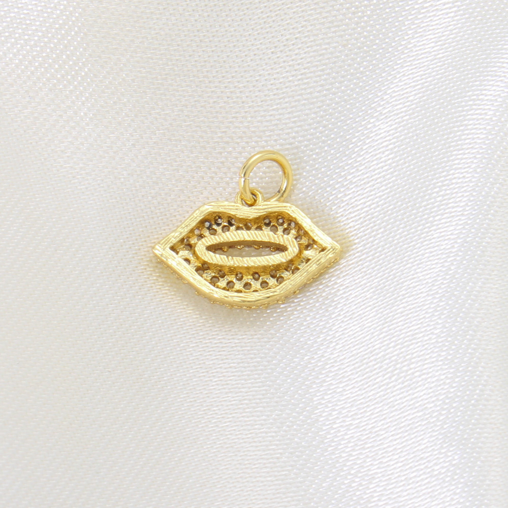 Cubique Pendentif en laiton zircon pavent, lèvre, Placage, DIY & pavé de micro zircon, doré, protéger l'environnement, sans nickel, plomb et cadmium, 10x15x3mm, Vendu par PC