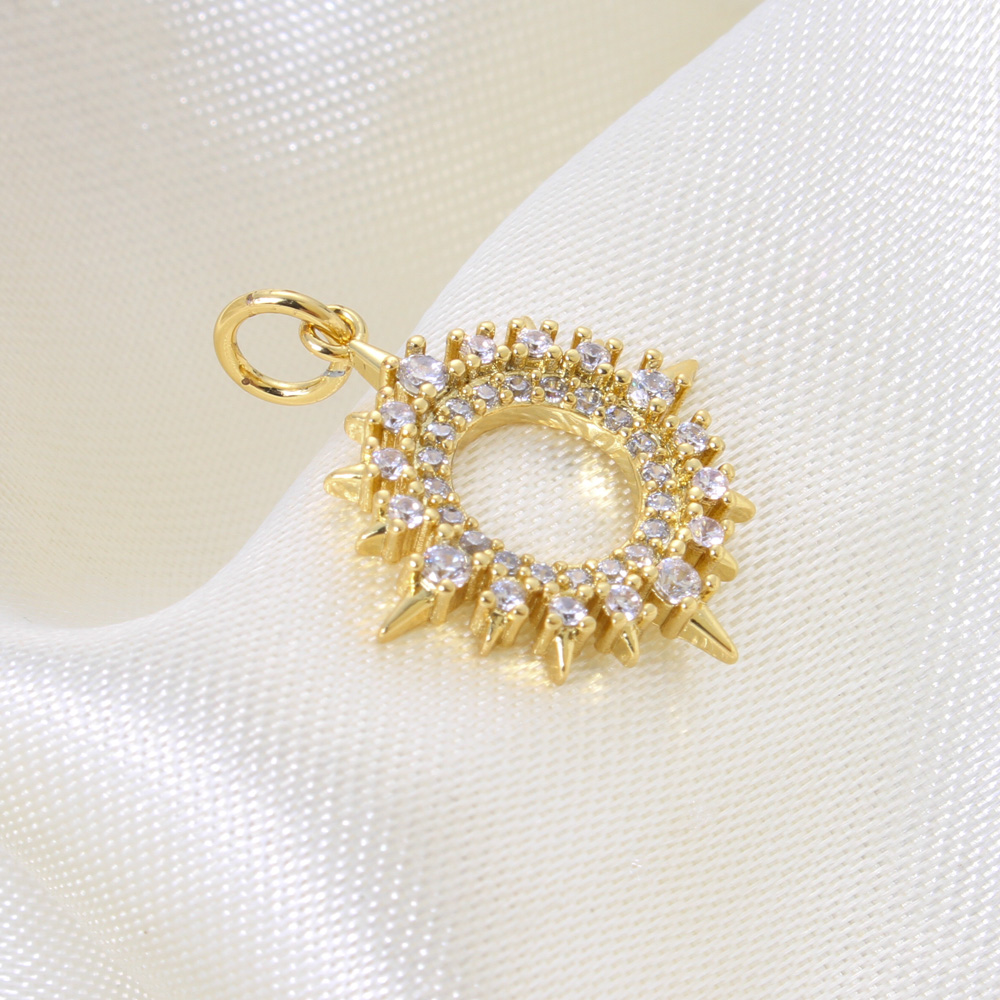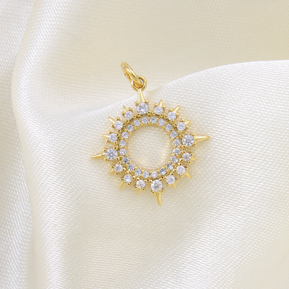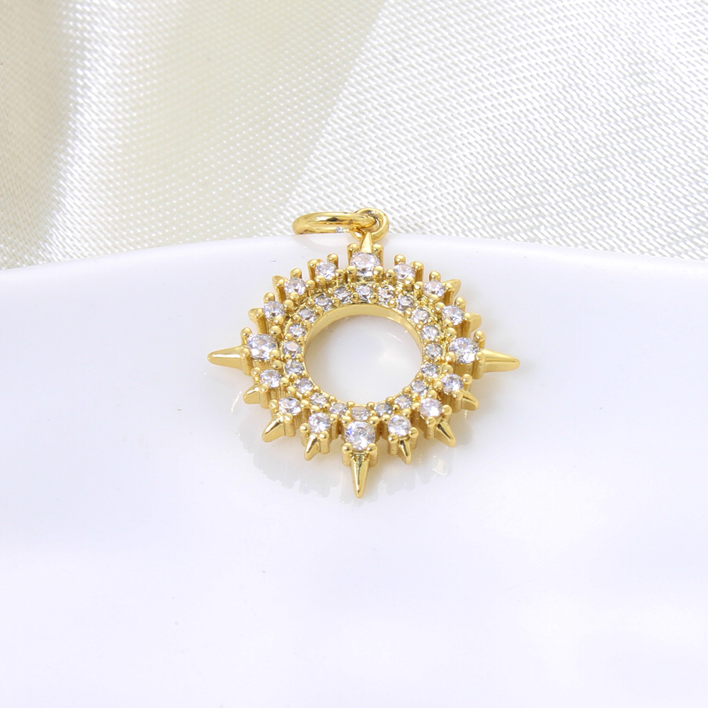 Cubique Pendentif en laiton zircon pavent, soleil, Placage, DIY & pavé de micro zircon, plus de couleurs à choisir, protéger l'environnement, sans nickel, plomb et cadmium, 19.40x17.50x2.30mm, Vendu par PC