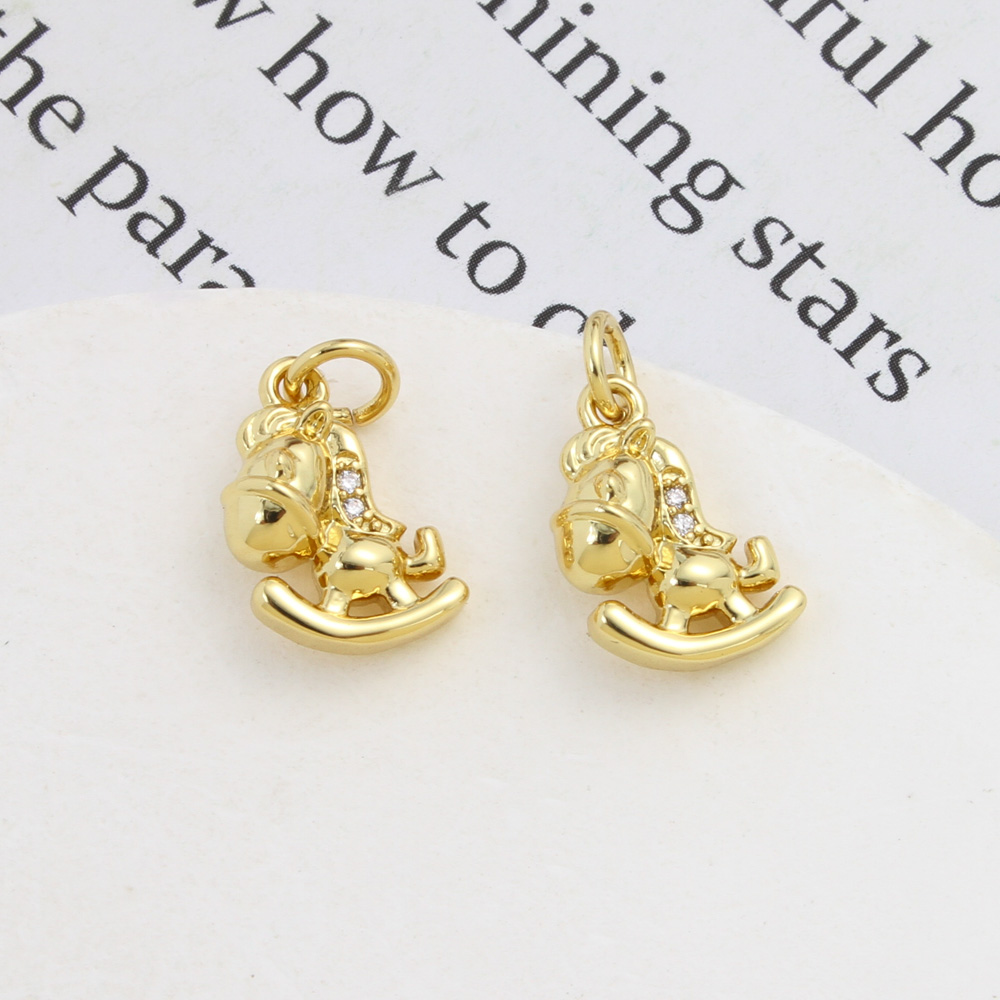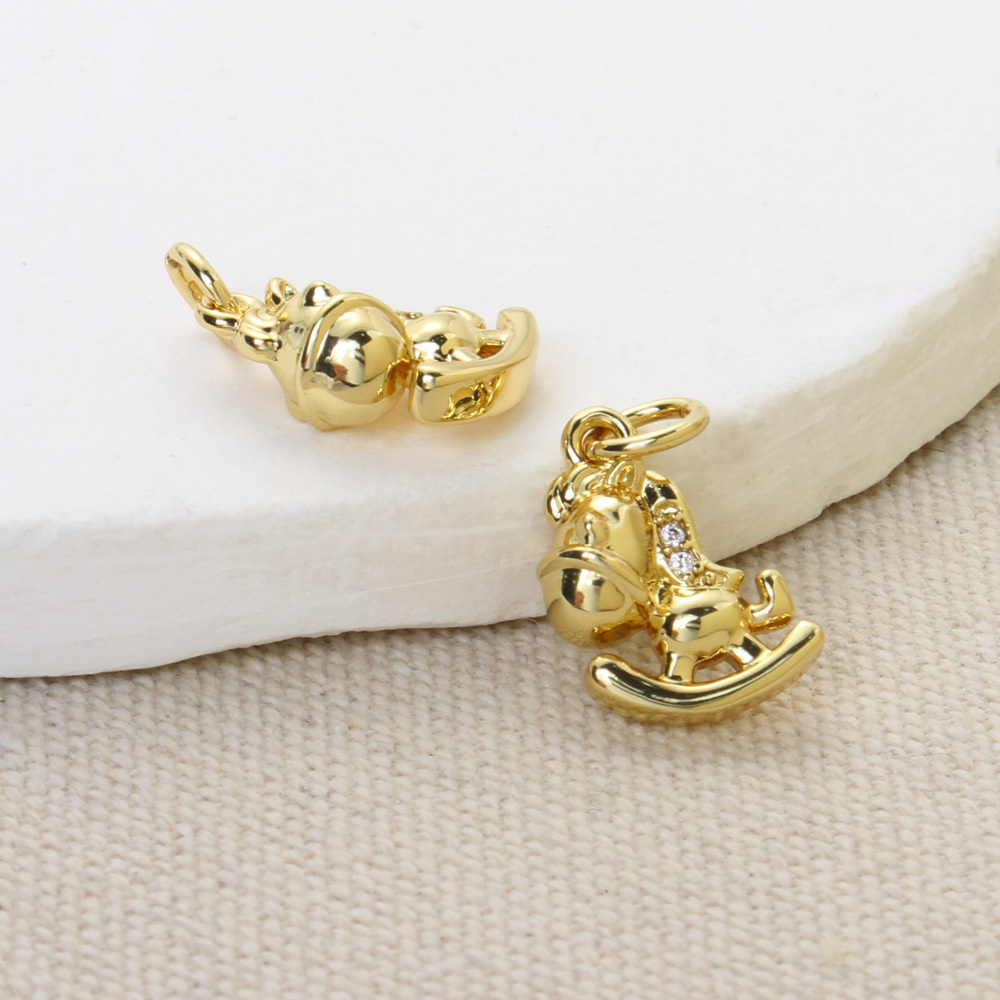 Cubique Pendentif en laiton zircon pavent, cheval, Placage, DIY & pavé de micro zircon, Or, protéger l'environnement, sans nickel, plomb et cadmium, 13.30x8.60x5.80mm, Vendu par PC