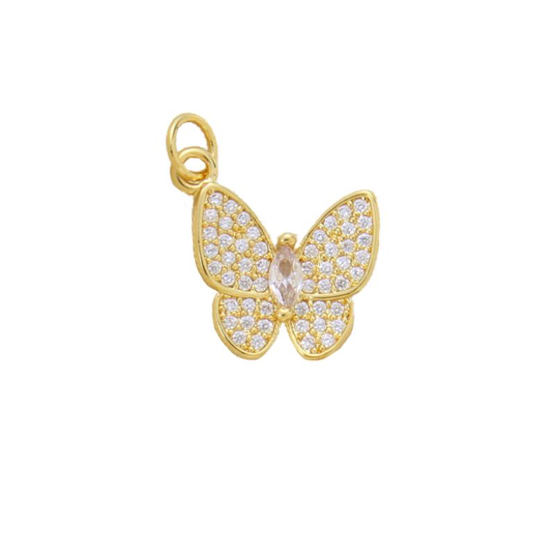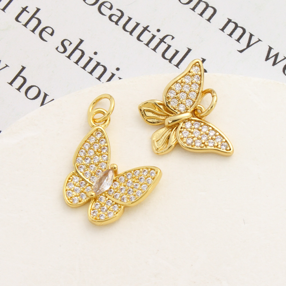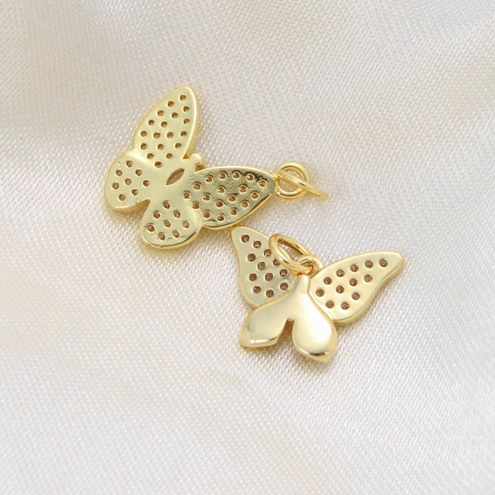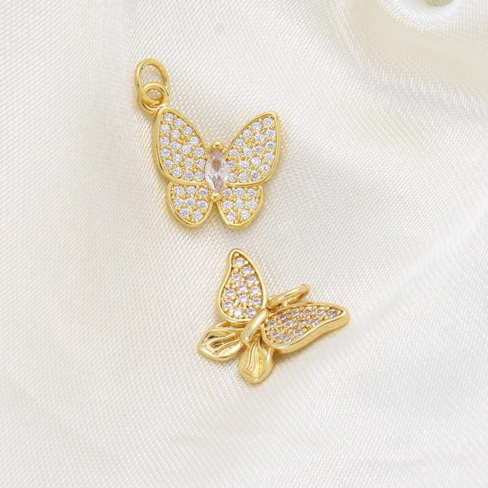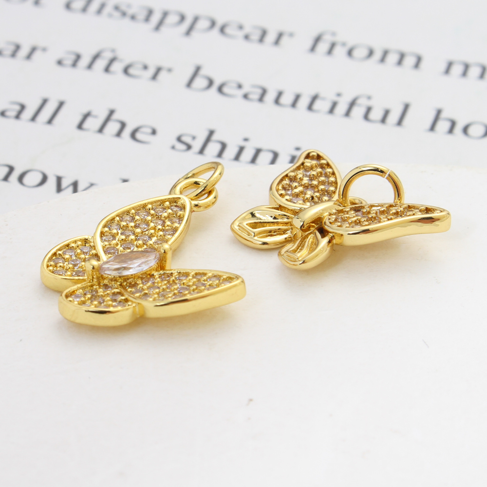 Cubique Pendentif en laiton zircon pavent, papillon, Placage, DIY & pavé de micro zircon, Or, protéger l'environnement, sans nickel, plomb et cadmium, 14x15.40x2.90mm, Vendu par PC