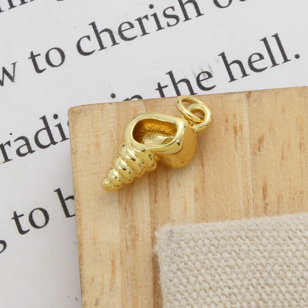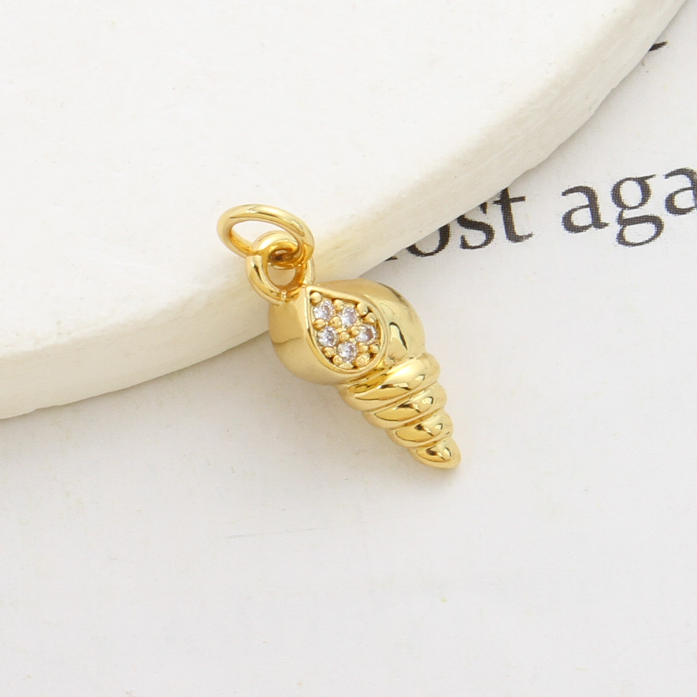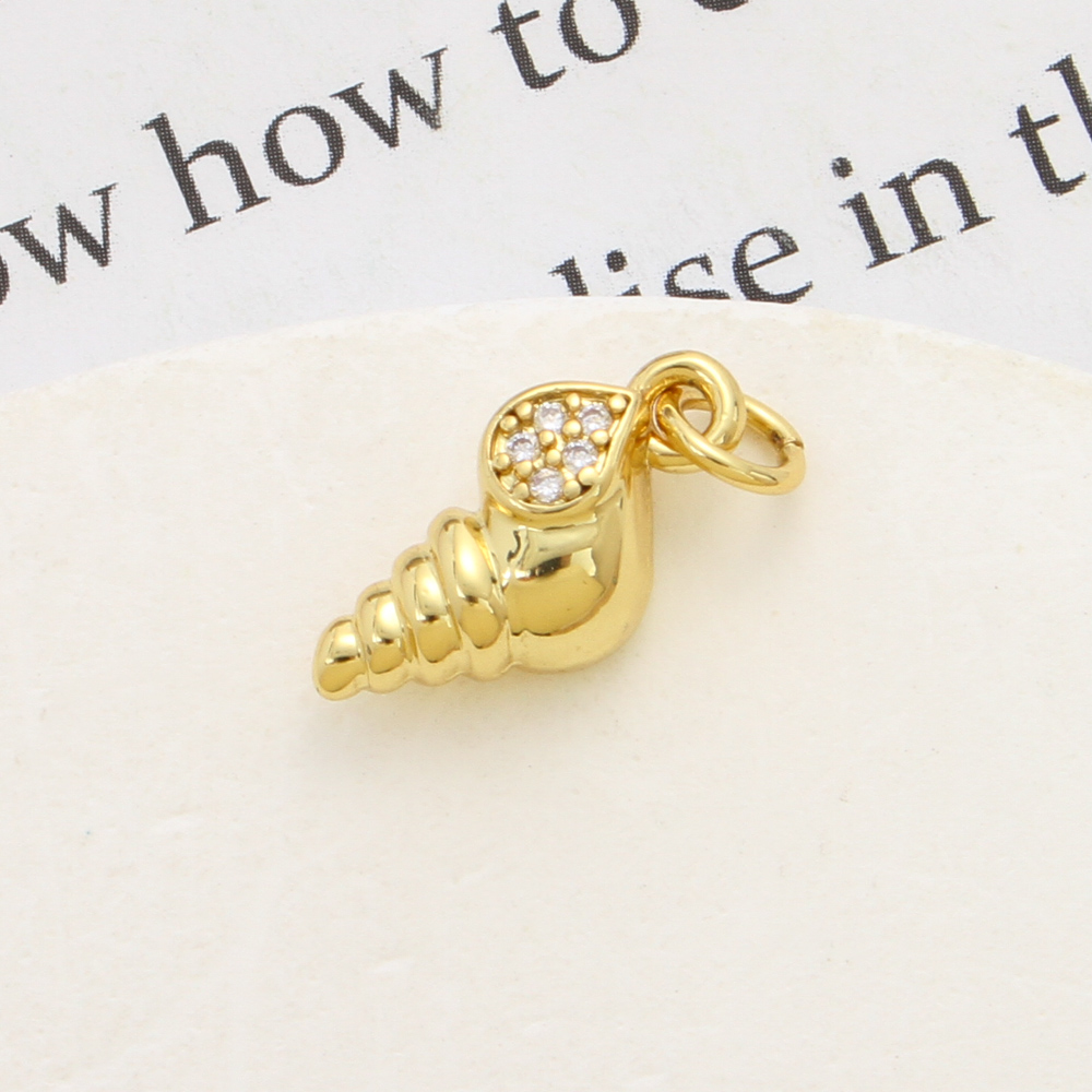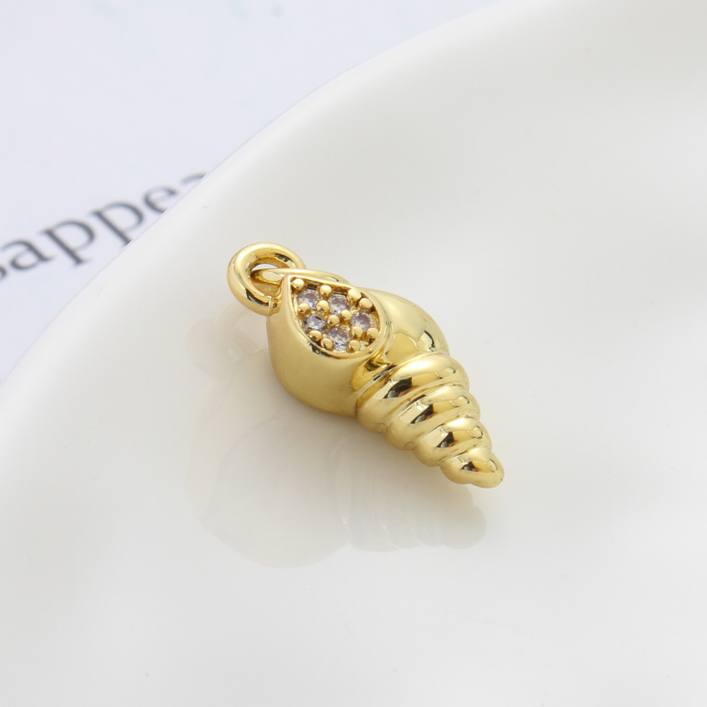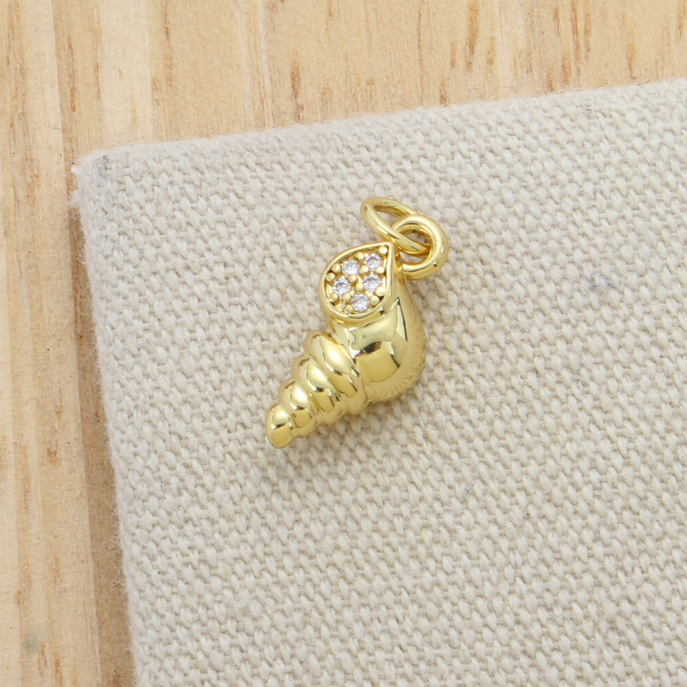 Cubique Pendentif en laiton zircon pavent, conque, Placage, DIY & pavé de micro zircon, doré, protéger l'environnement, sans nickel, plomb et cadmium, 15.40x6.50x4.80mm, Vendu par PC