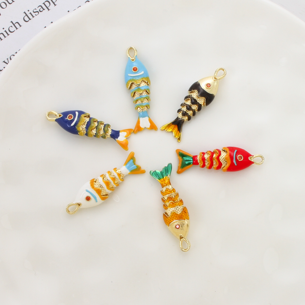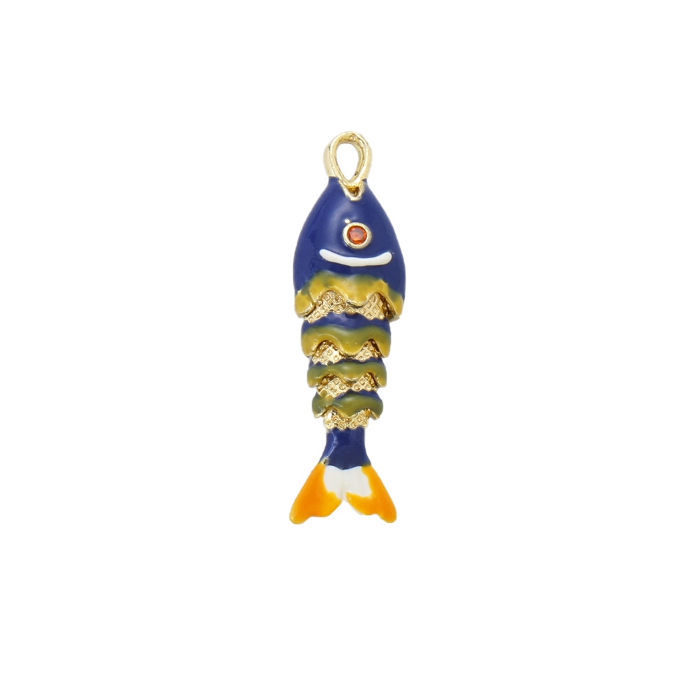 Cubique Pendentif en laiton zircon pavent, poisson, Placage, DIY & pavé de micro zircon & émail, plus de couleurs à choisir, protéger l'environnement, sans nickel, plomb et cadmium, 30.60x8.70x5.90mm, Vendu par PC