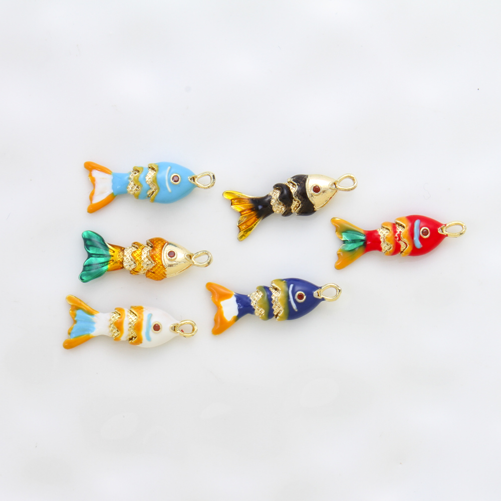 Cubique Pendentif en laiton zircon pavent, poisson, Placage, DIY & pavé de micro zircon & émail, plus de couleurs à choisir, protéger l'environnement, sans nickel, plomb et cadmium, 22x7x4.70mm, Vendu par PC